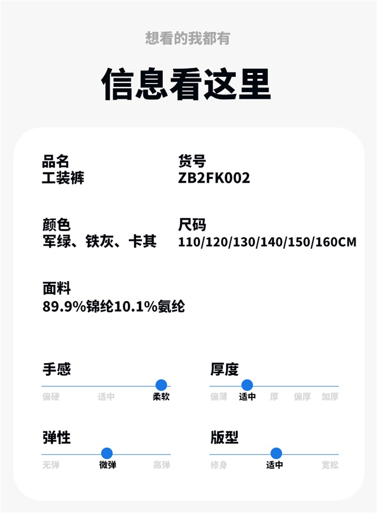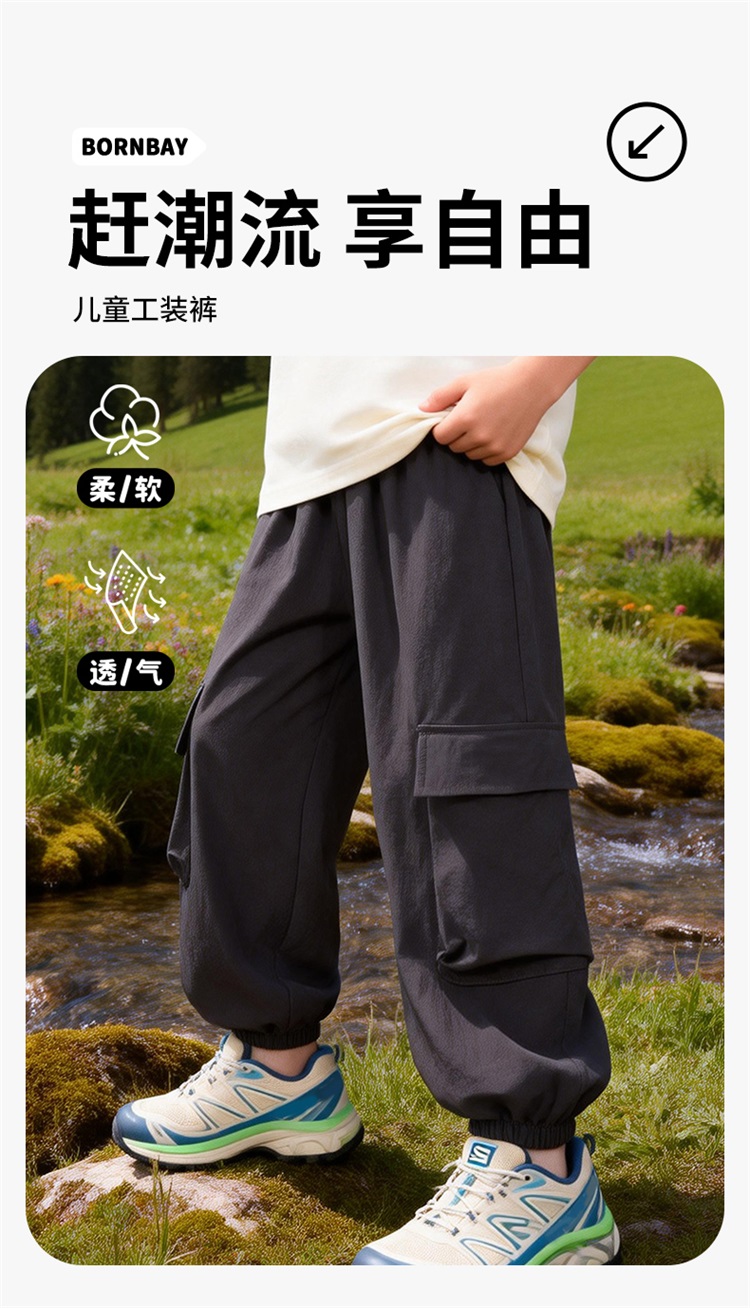 贝贝怡冰感男童裤子夏季工装裤ZB2FK002