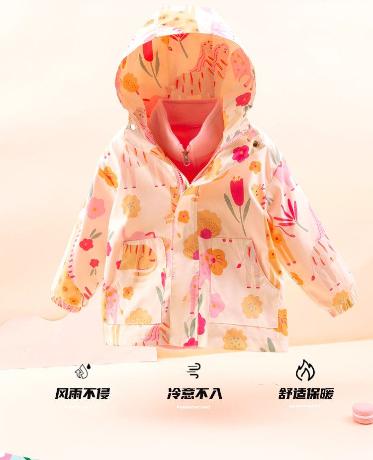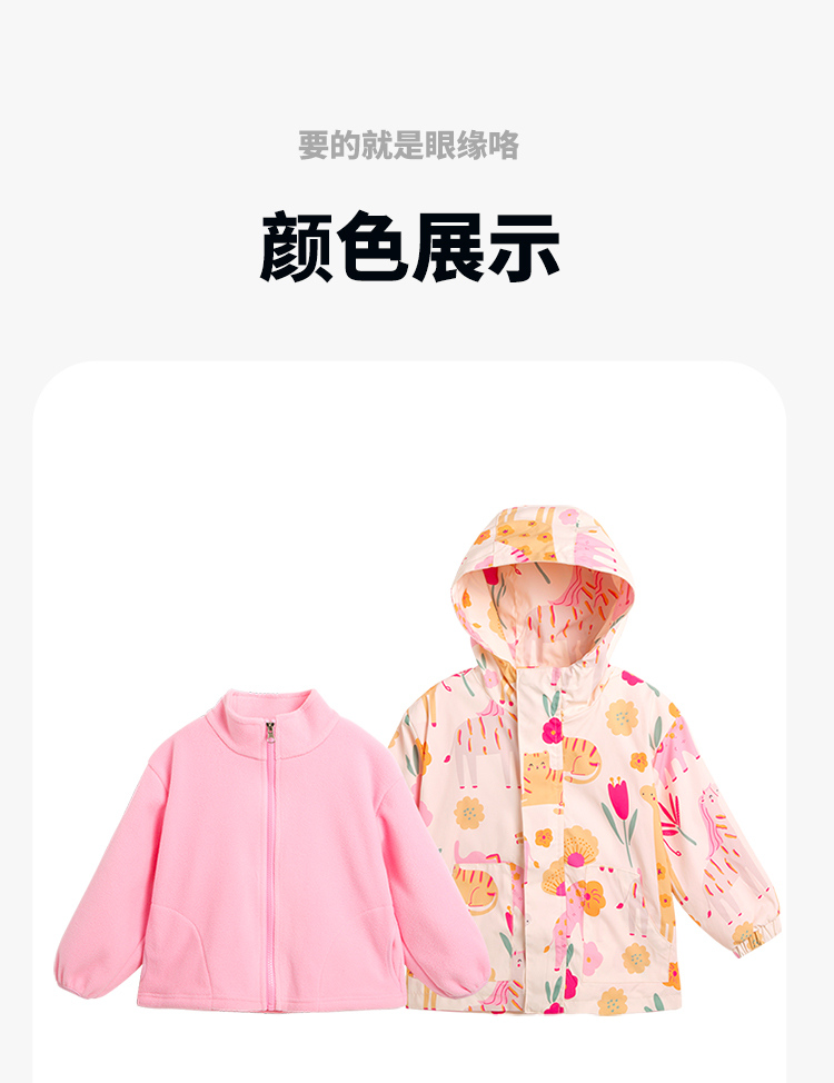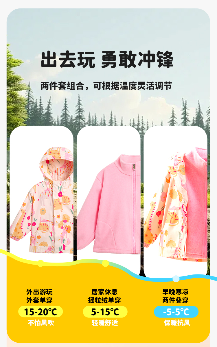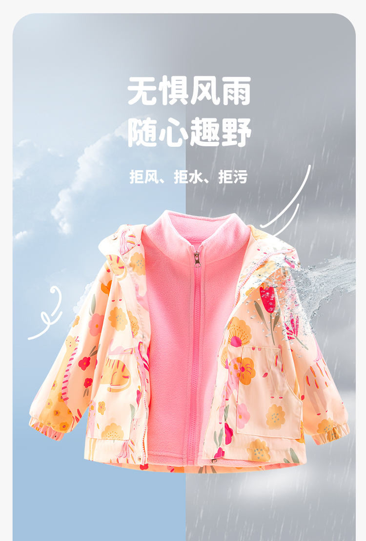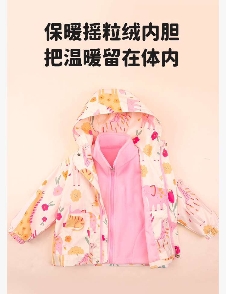 贝贝怡儿童冲锋衣内胆两件套冬装2024新款男女童三合一外套登山服ZB3DS013