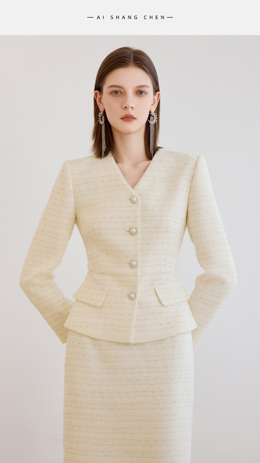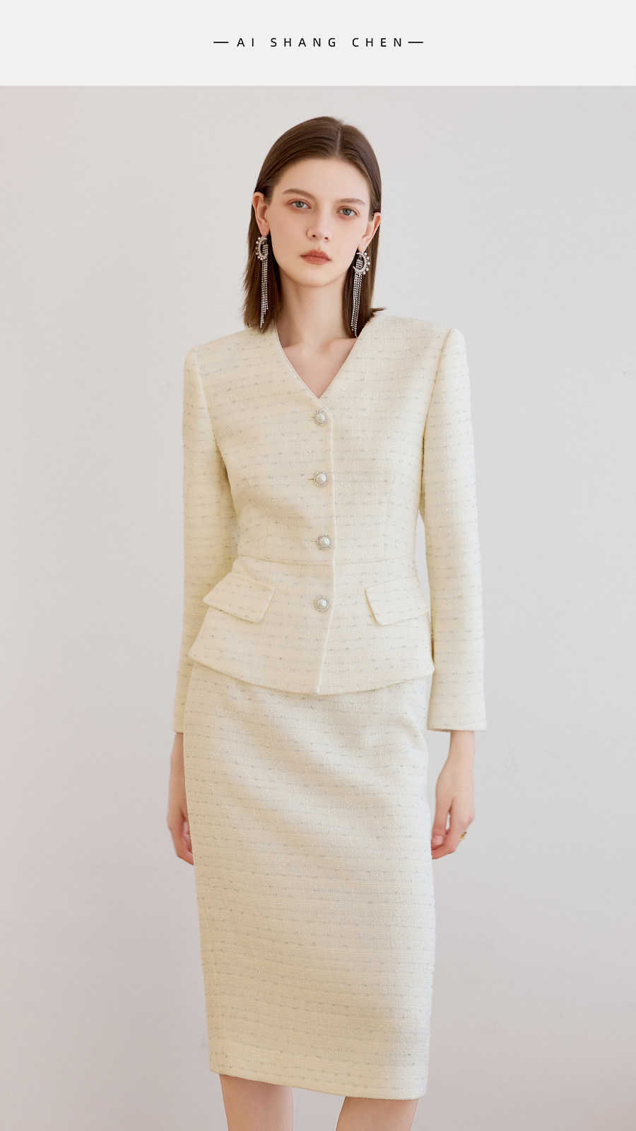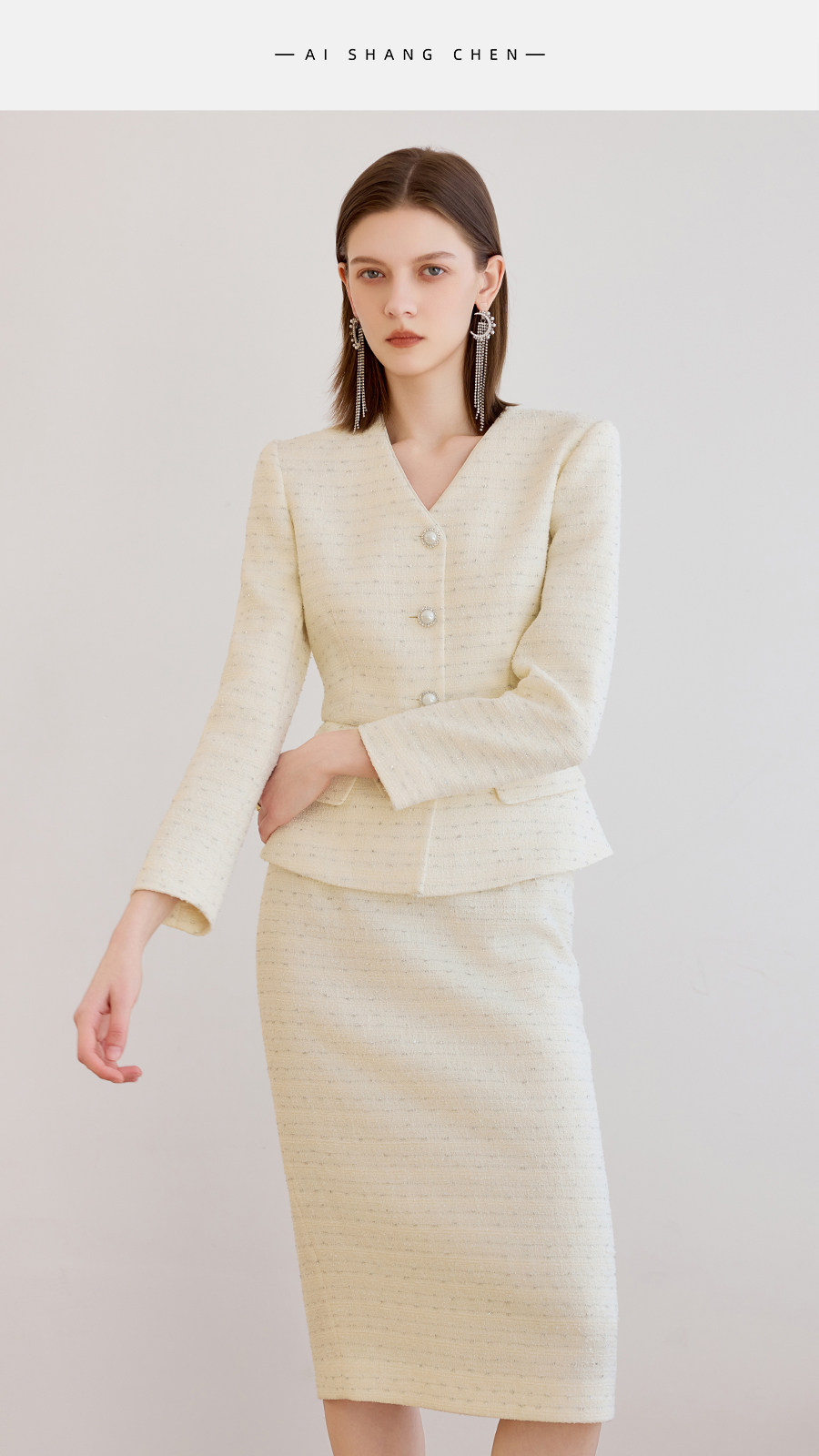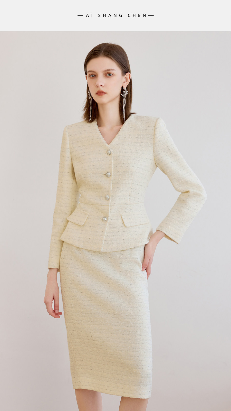 艾尚臣小香风两件套女春季轻熟优雅风V领西装半身裙气质名媛套装