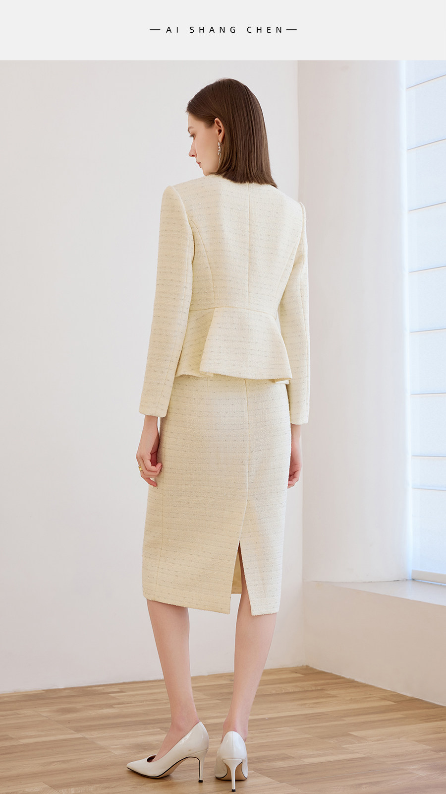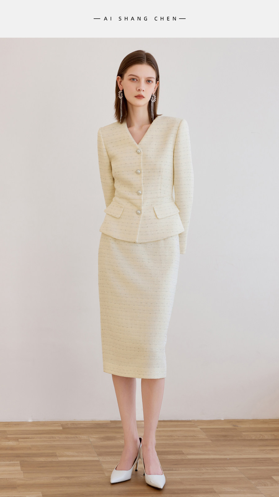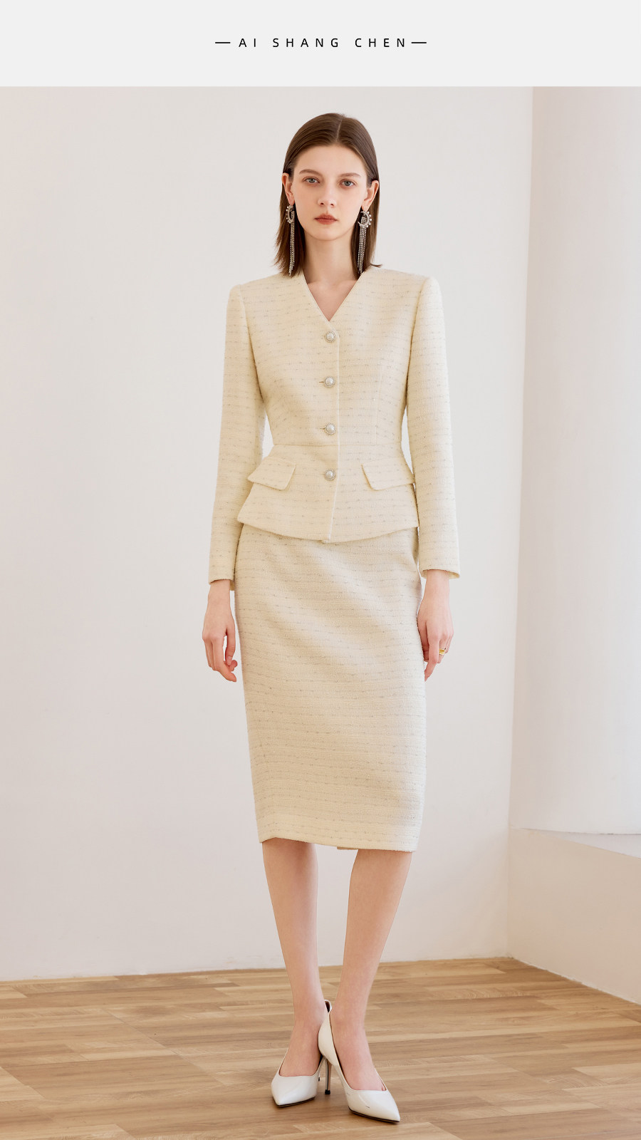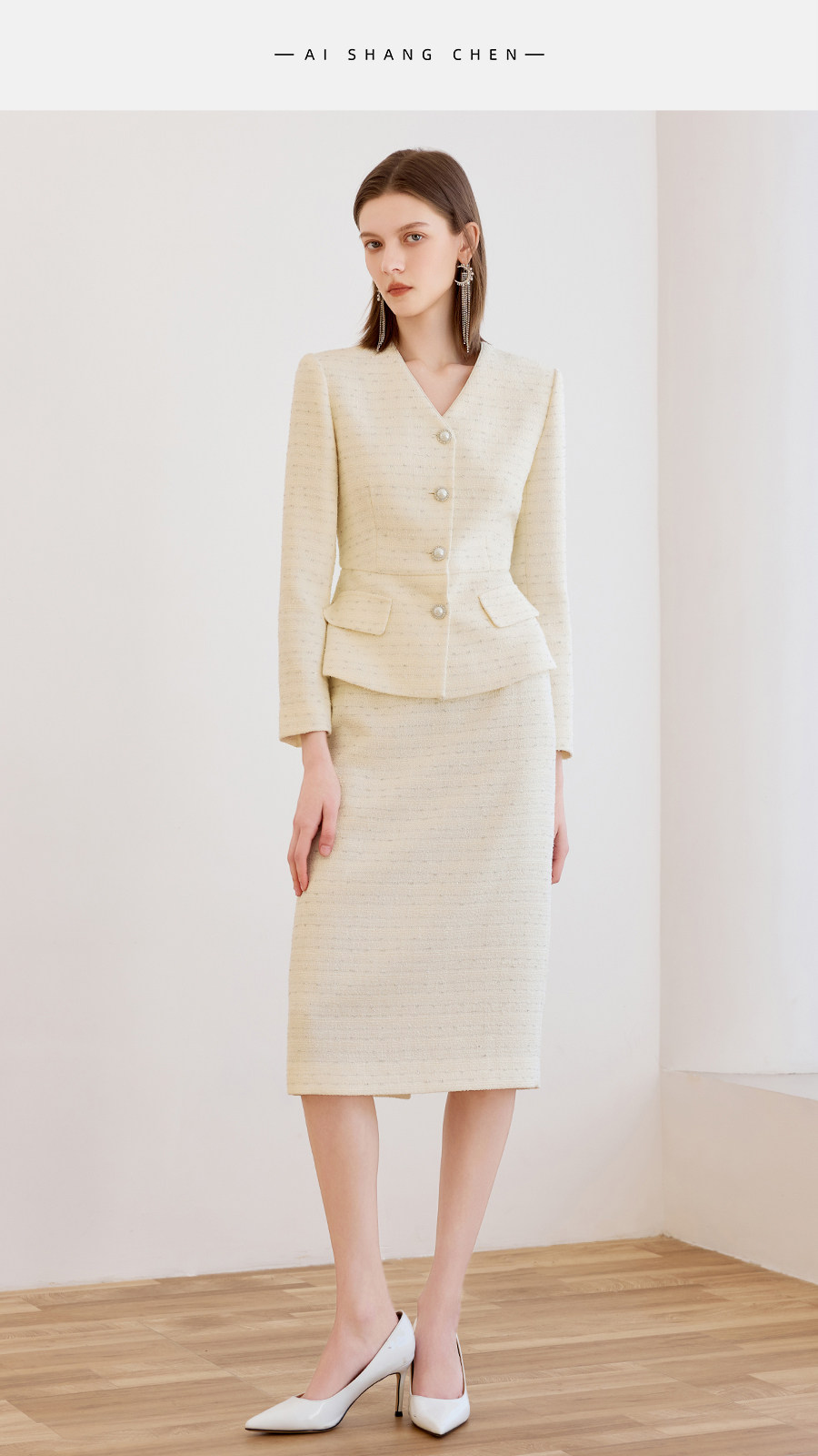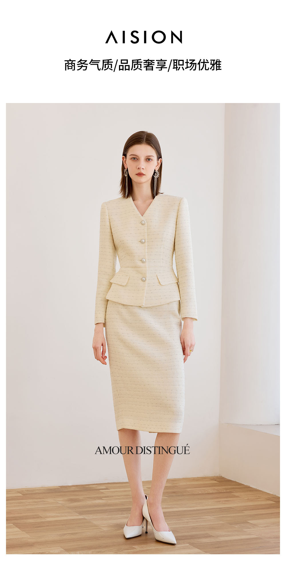 艾尚臣小香风两件套女春季轻熟优雅风V领西装半身裙气质名媛套装