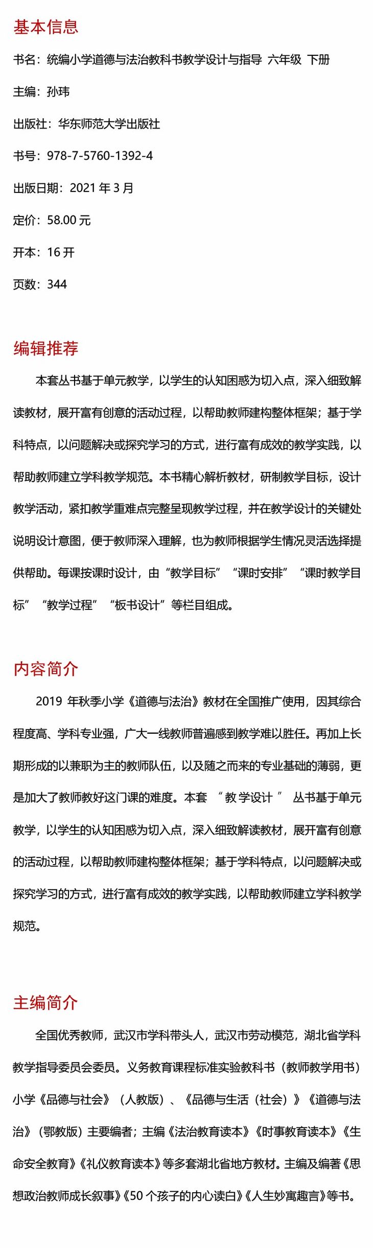 2025春统编小学道德与法治教科书教学设计与指导 1-6年级下册