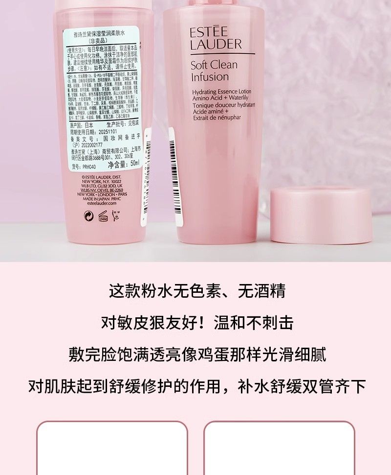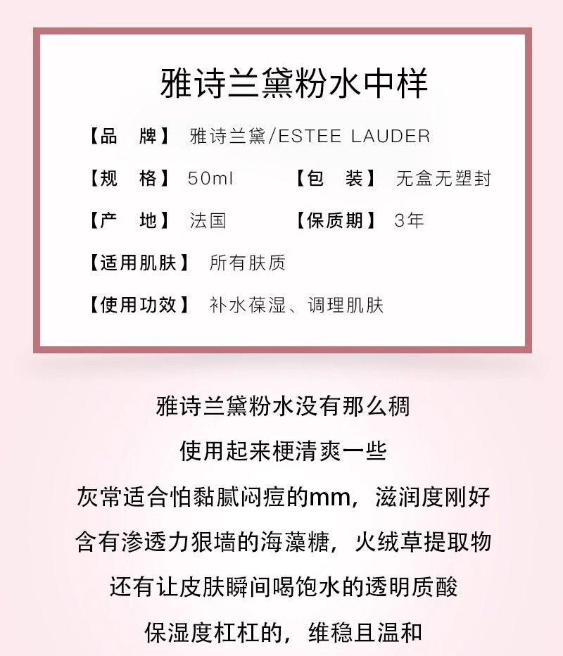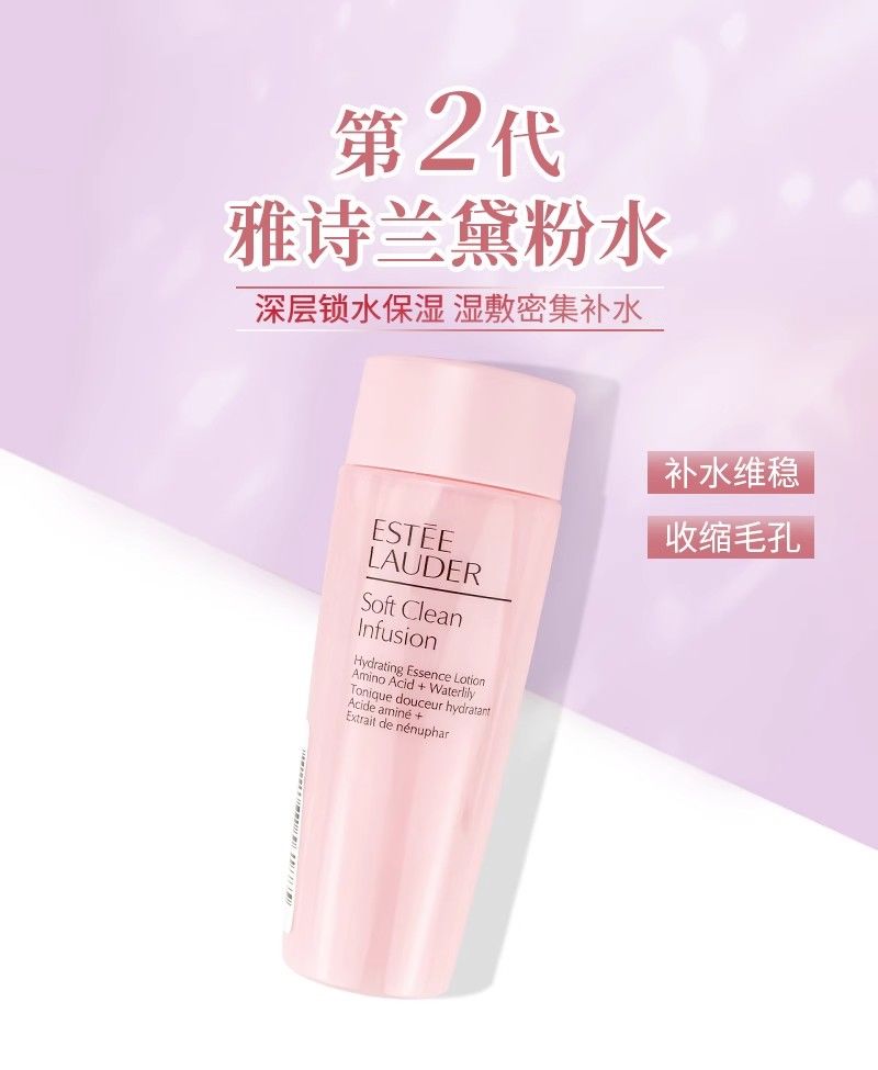 超值小样!雅诗兰黛保湿莹润柔肤水50ml第二代粉水补水滋润舒缓肌肤二次清洁