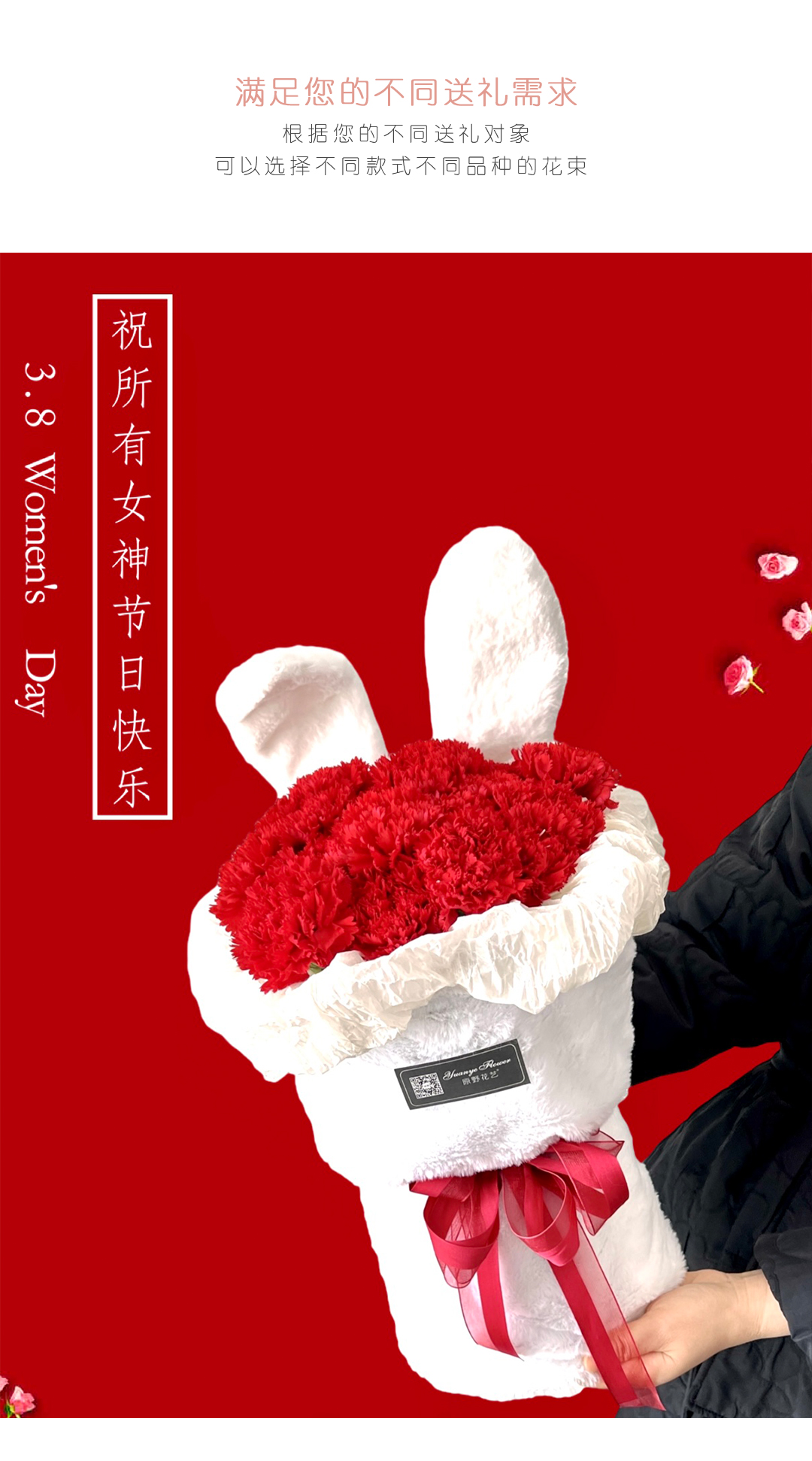 【“兔”你开心】兔耳朵红色康乃馨花束