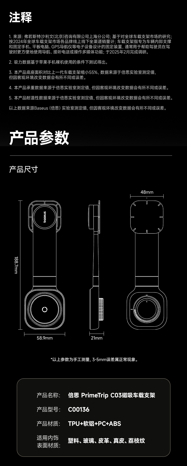 倍思 PrimeTrip C03 磁吸车载支架 粘贴式