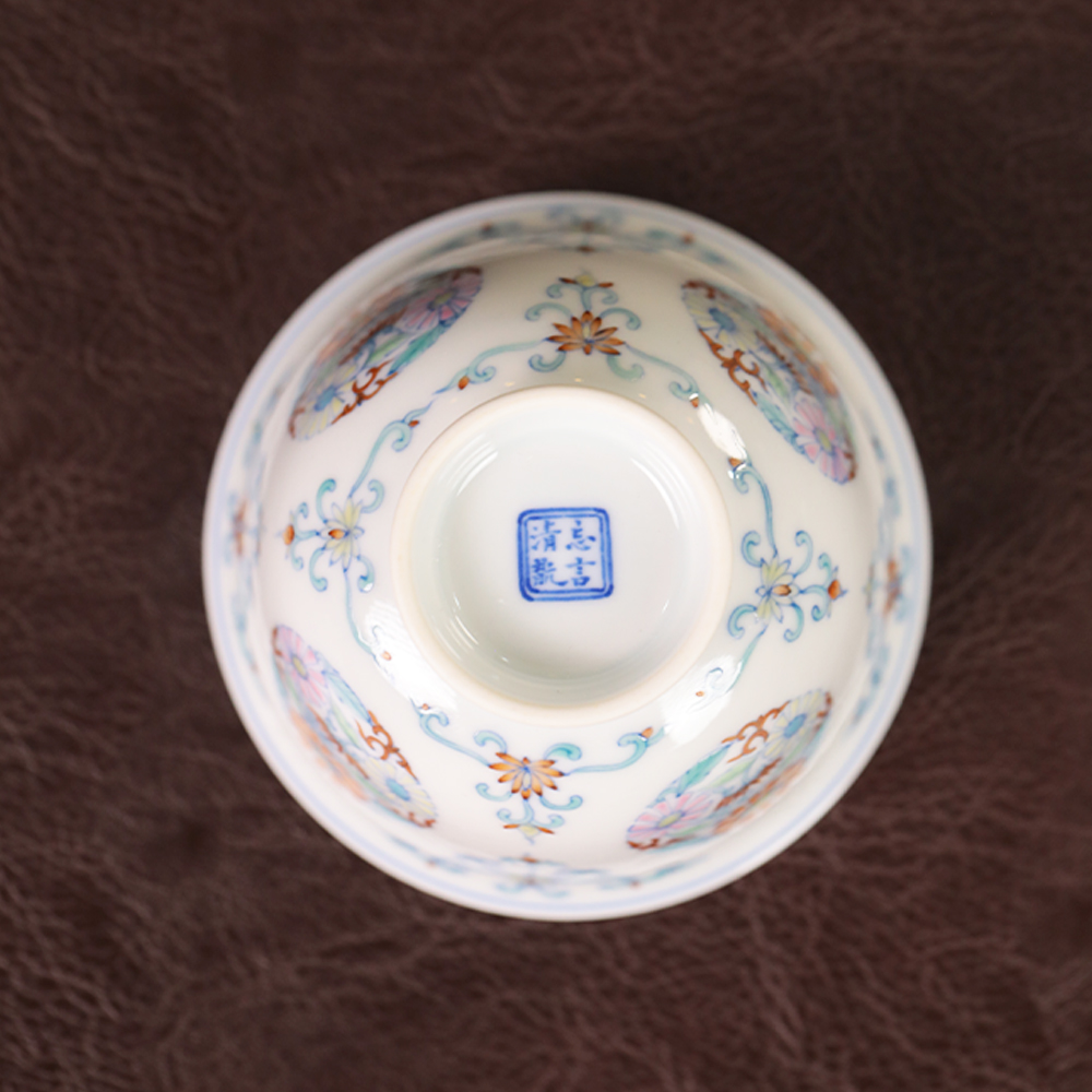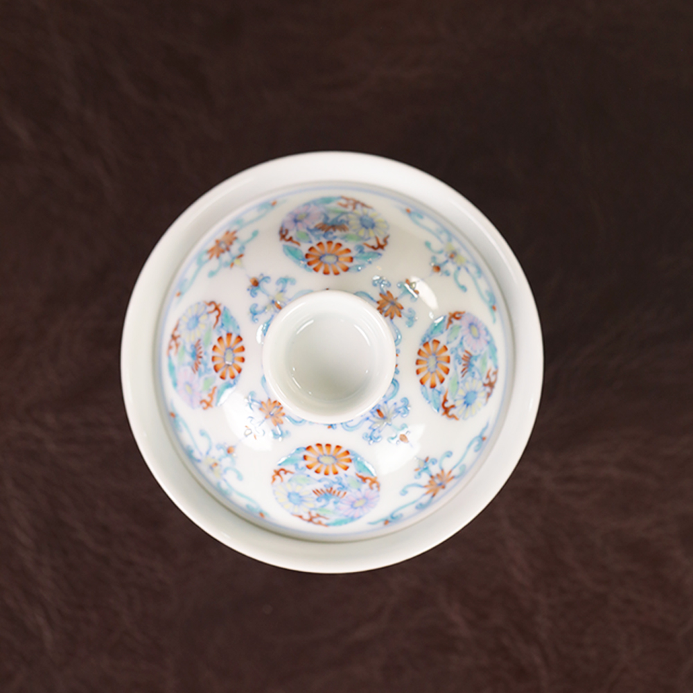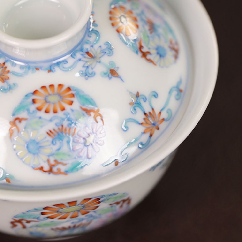 【忘言】斗彩团菊小茶碗 盖碗 曰何文人器