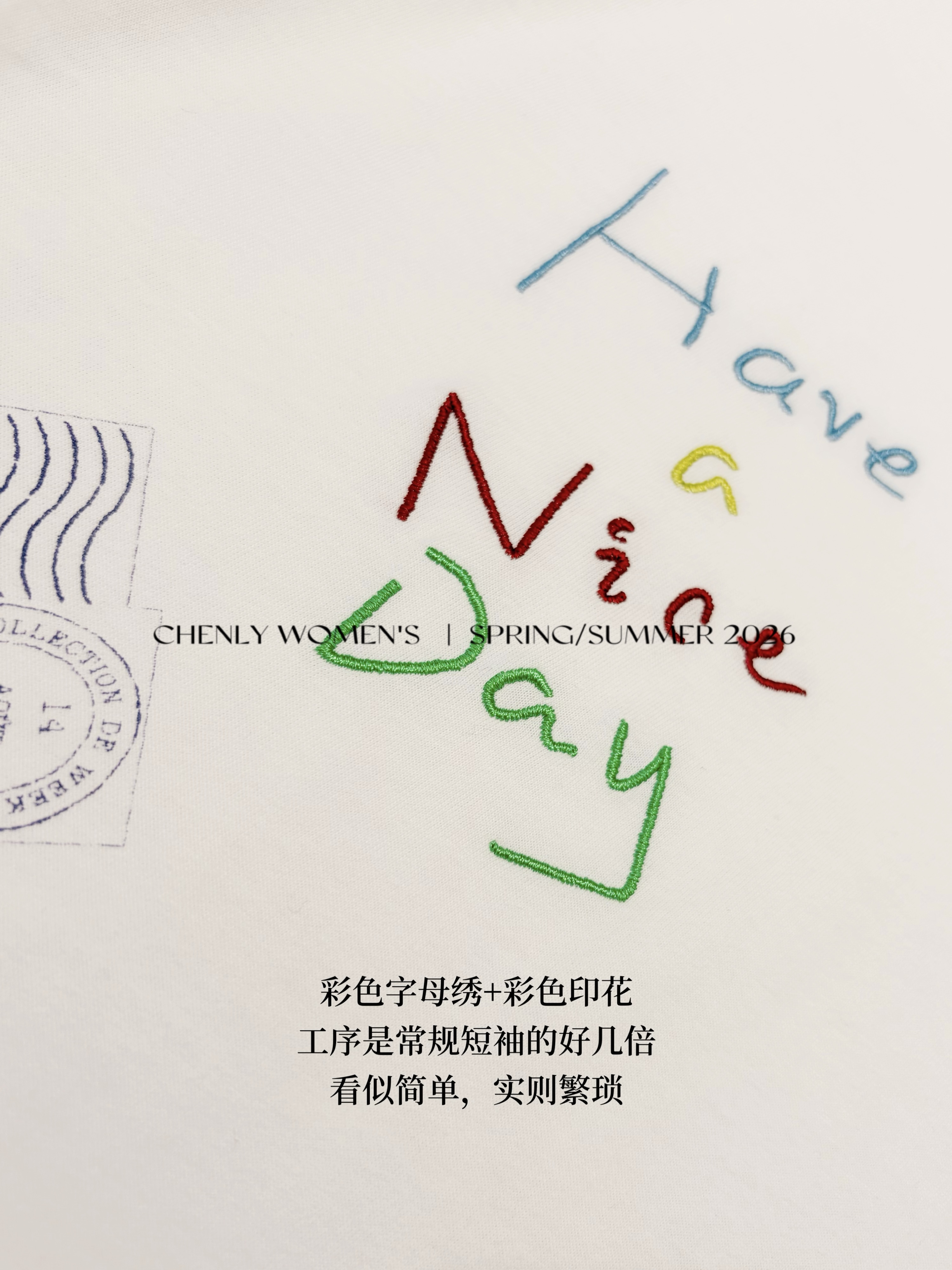 尘衣|26SS趣味彩色刺绣纯棉短袖