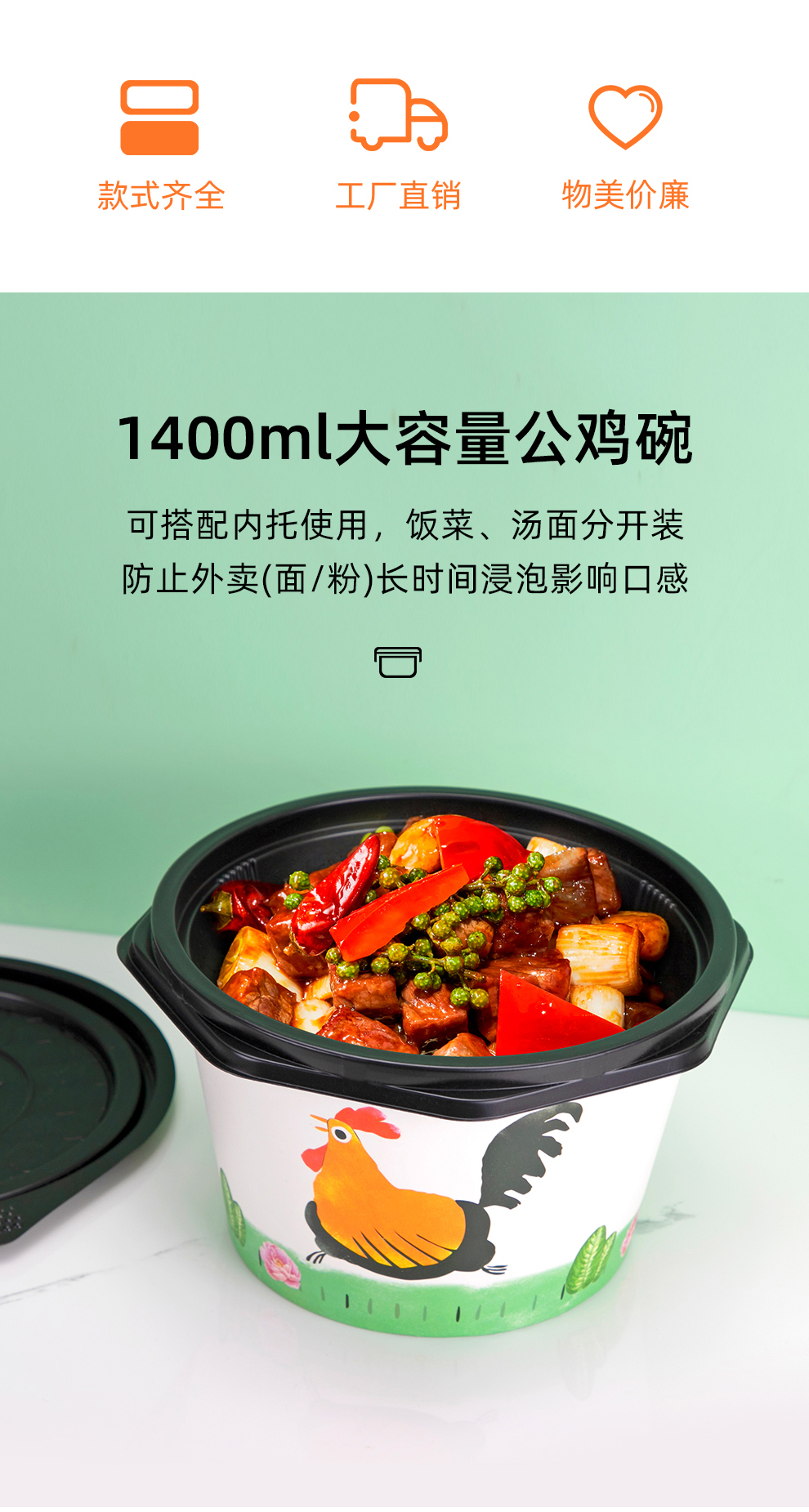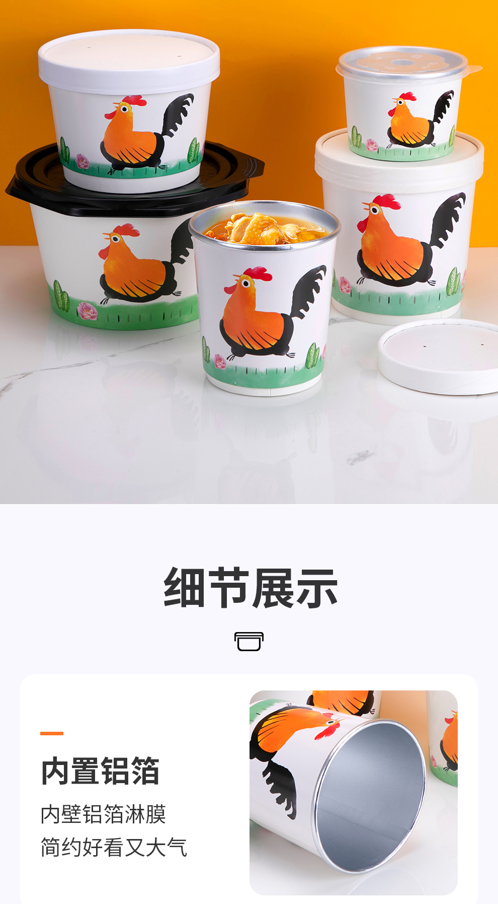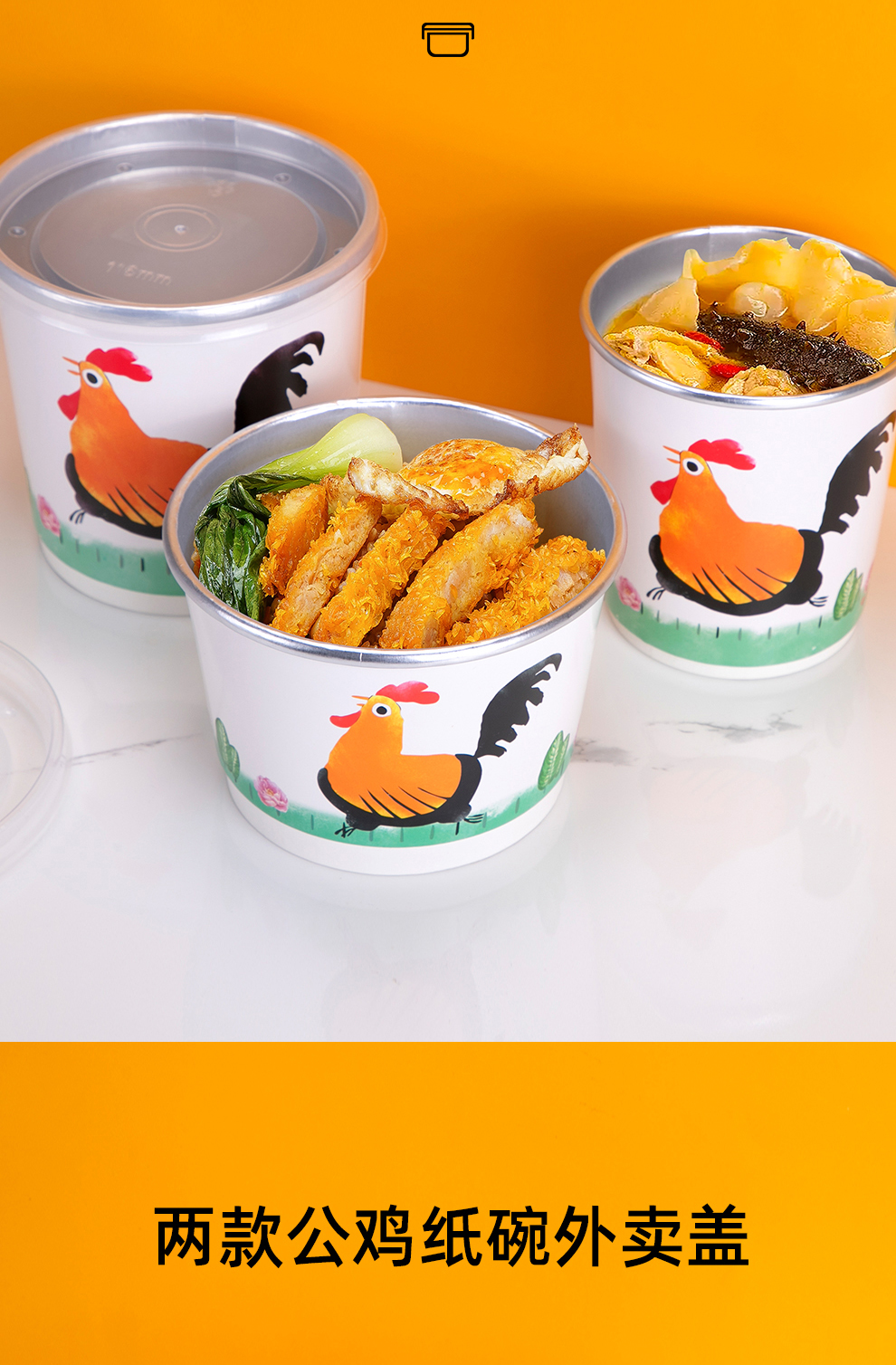 喇叭花一次性餐盒 加厚铝膜纸碗经典公鸡纸餐盒外卖打包圆盒汤碗