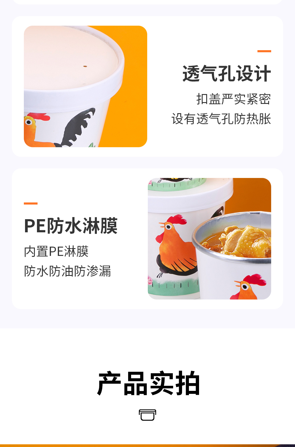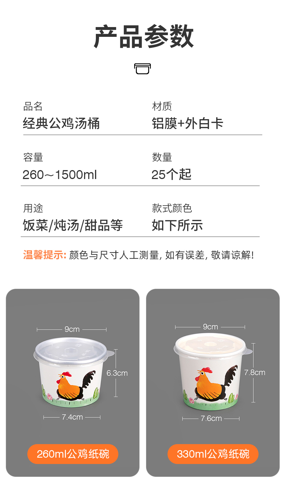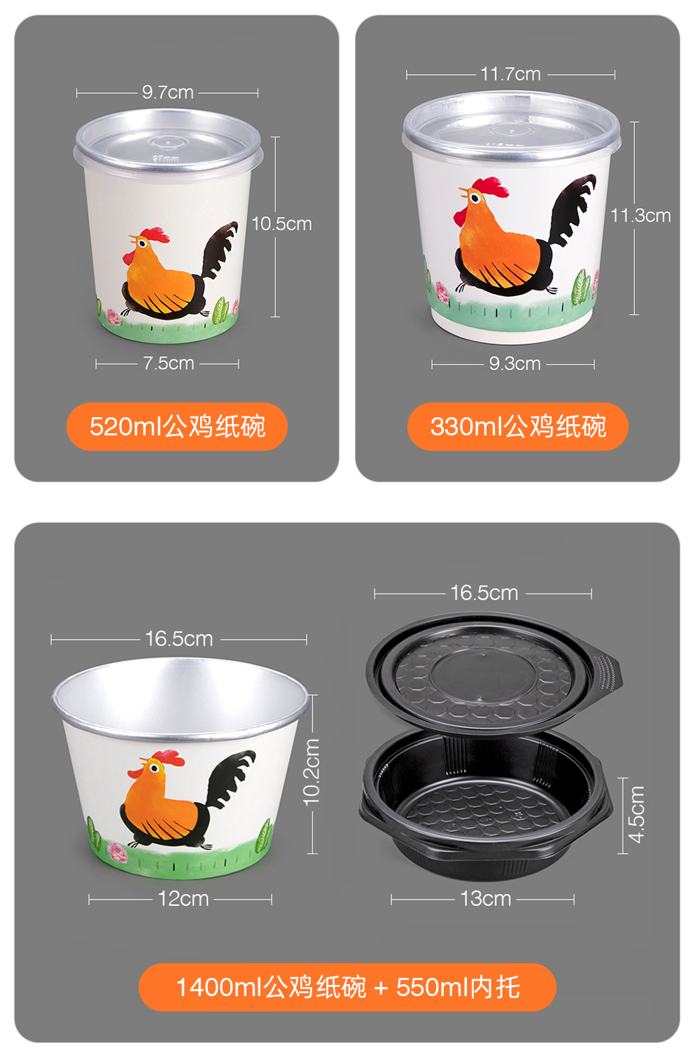 喇叭花一次性餐盒 加厚铝膜纸碗经典公鸡纸餐盒外卖打包圆盒汤碗