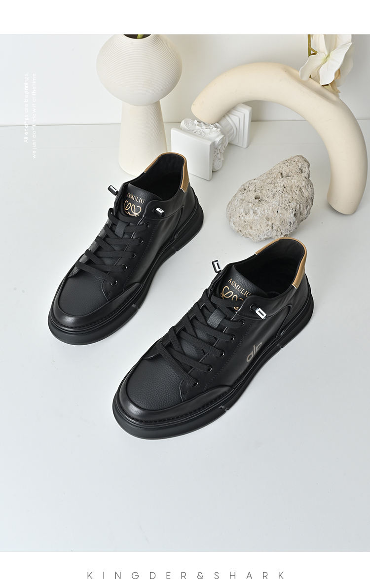 经典鲨2025年冬季专柜新品牛皮革男士品质加绒加厚休闲板鞋KW08-555591