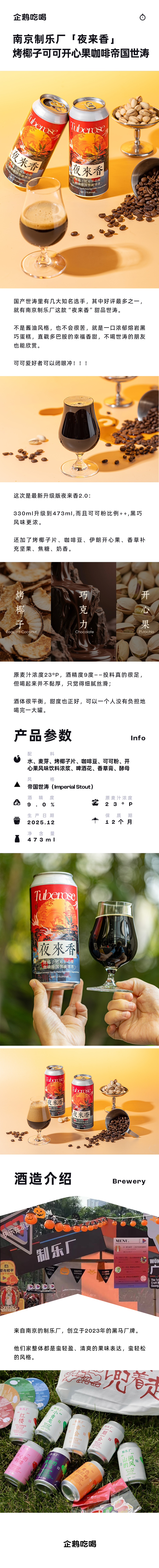 企鹅市集|南京制乐厂 夜来香 烤椰子可可开心果咖啡帝国世涛 精酿啤酒