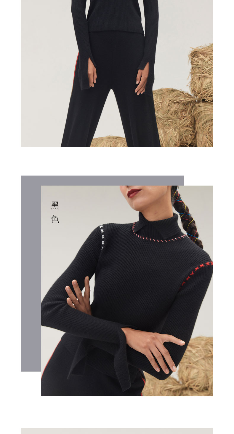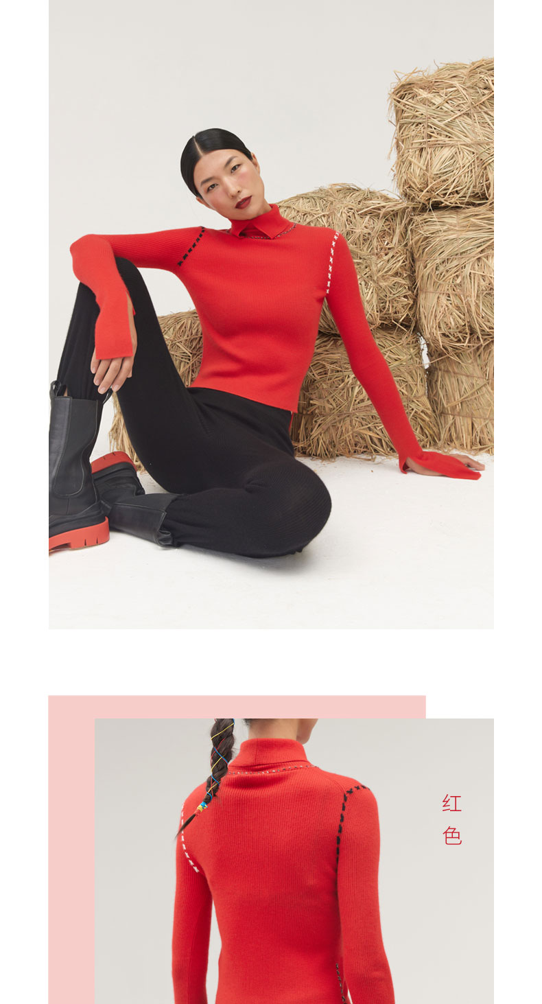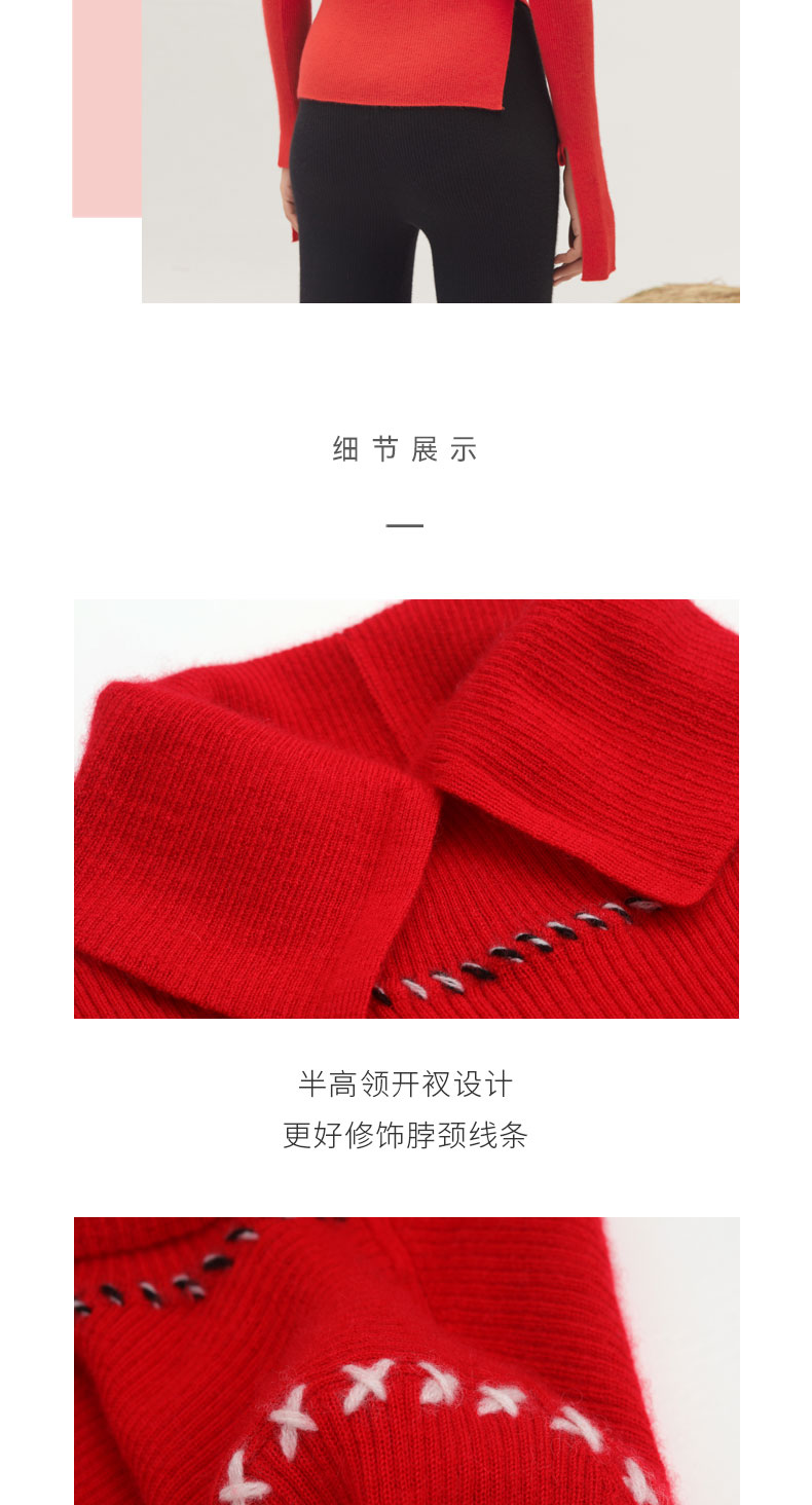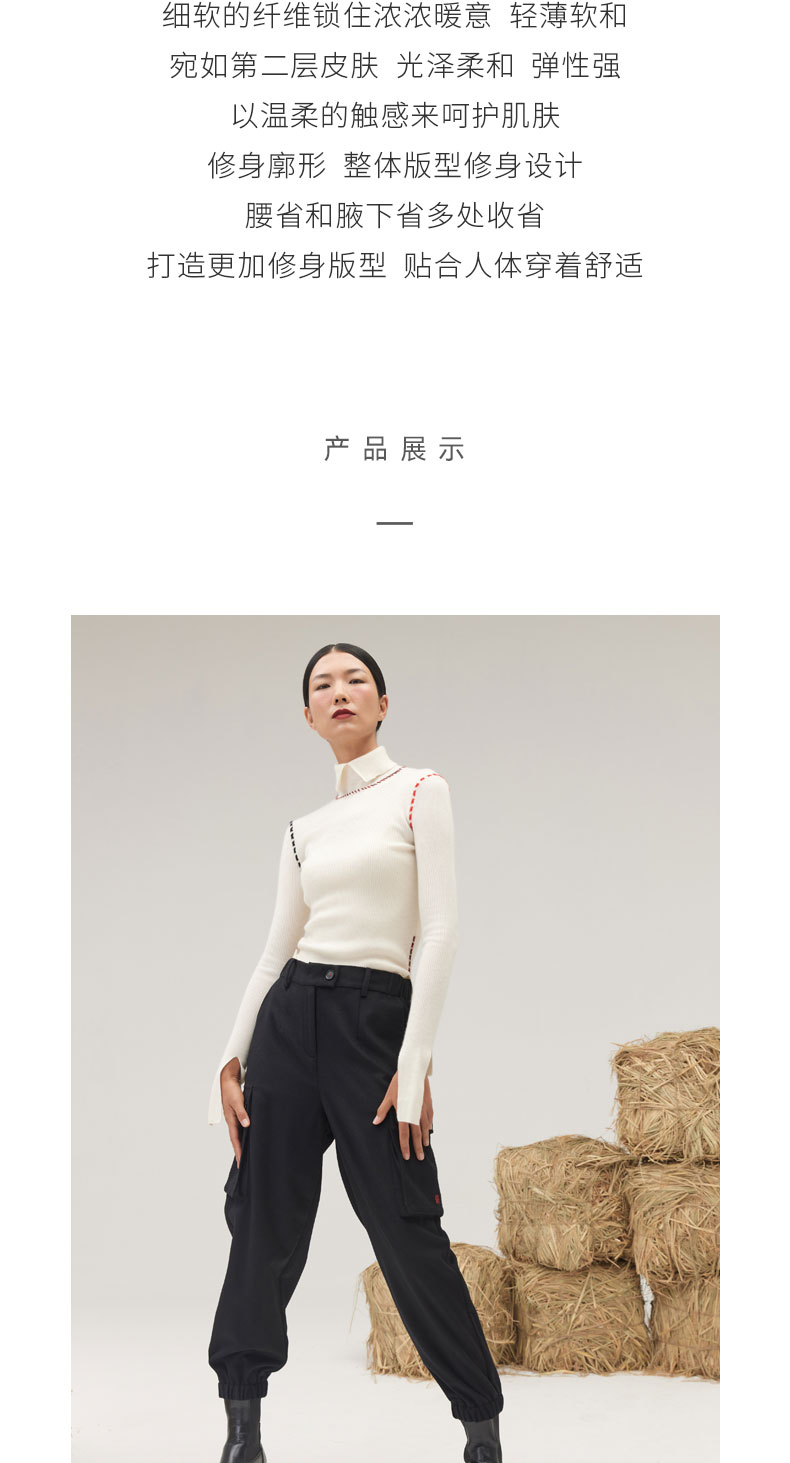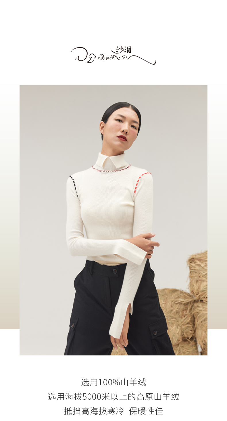 疗愈羊绒|羊绒抽条翻领打底衫SJF95W449K