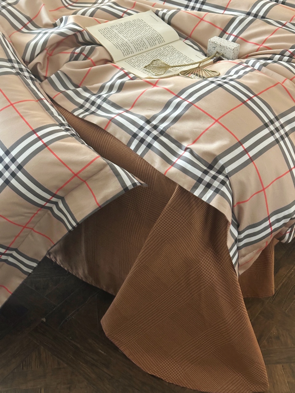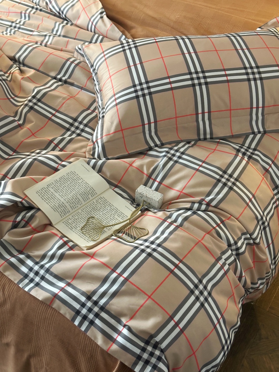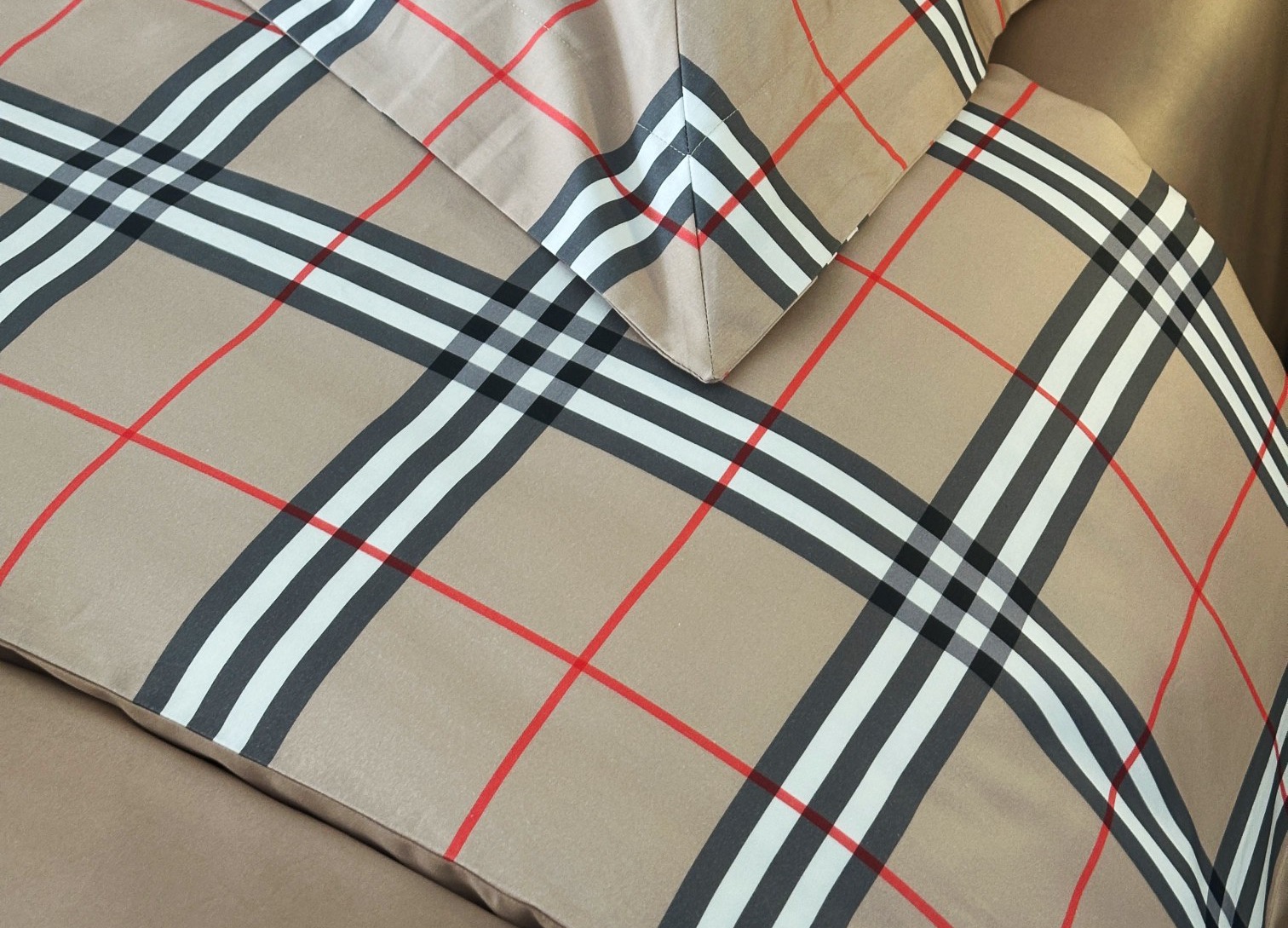 百年英伦格纹BURBERRY 家居品类终于上床品了!这款床品是与其重要供应商鲁泰纺织(供应了芭宝莉90%的衬衣面料和风衣面料)定制的,其核心面料埃及长绒棉(吉萨45特级长绒棉)源自埃及尼罗河流域核心产区,这些棉花以纤维长、细度高著称,是“棉中白金”。其纤维长度可达35mm以上(远超普通棉的25mm),细度仅1.2旦尼尔,织出的面料如肌肤般丝滑亲肤,更环保安全。埃及棉面料纤维中含有的天然中空结构,让床品兼具“夏季透气不粘腻,冬季锁温更蓬松”的双重奢享;