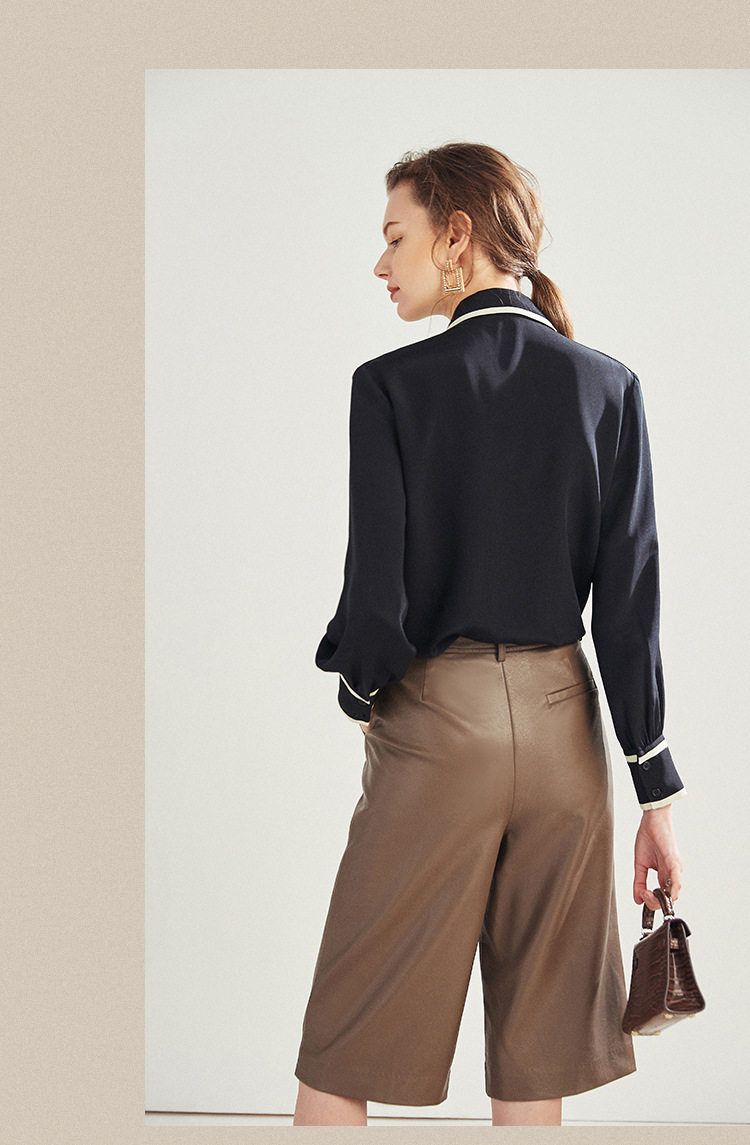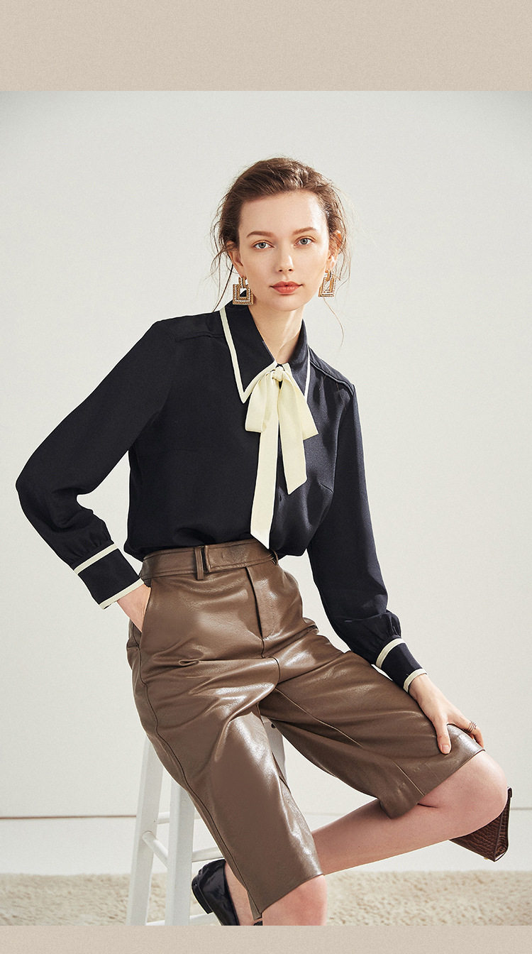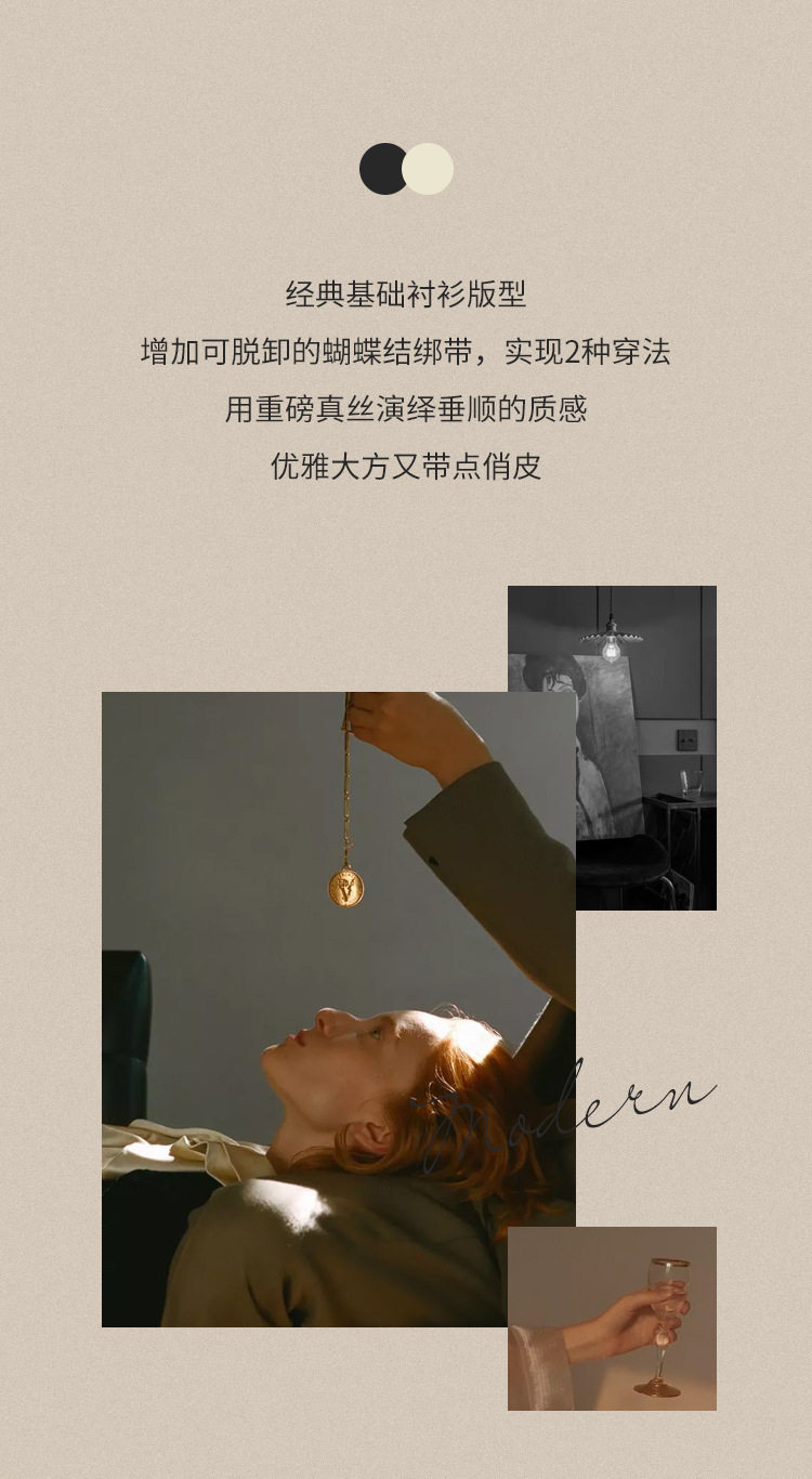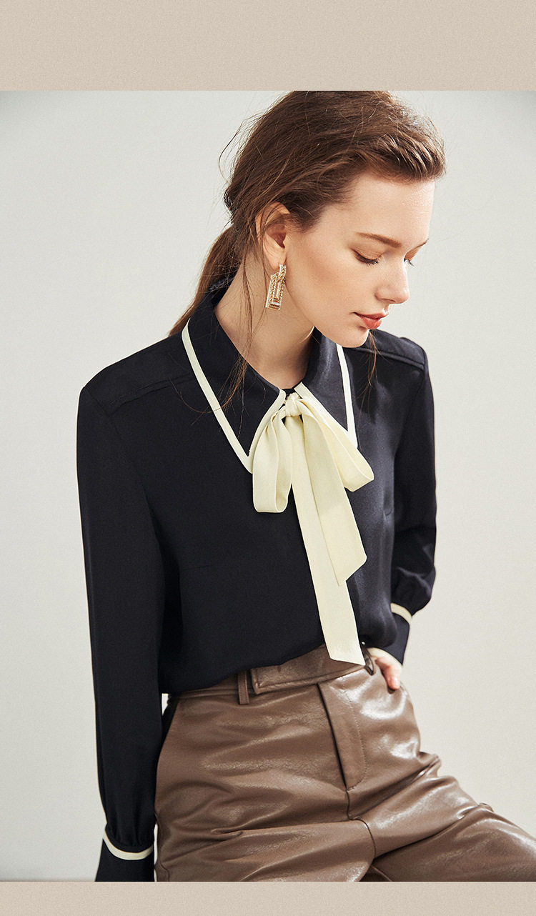 真丝衬衫女桑蚕丝衬衣2024春夏新款法式设计感小众系带长袖上衣