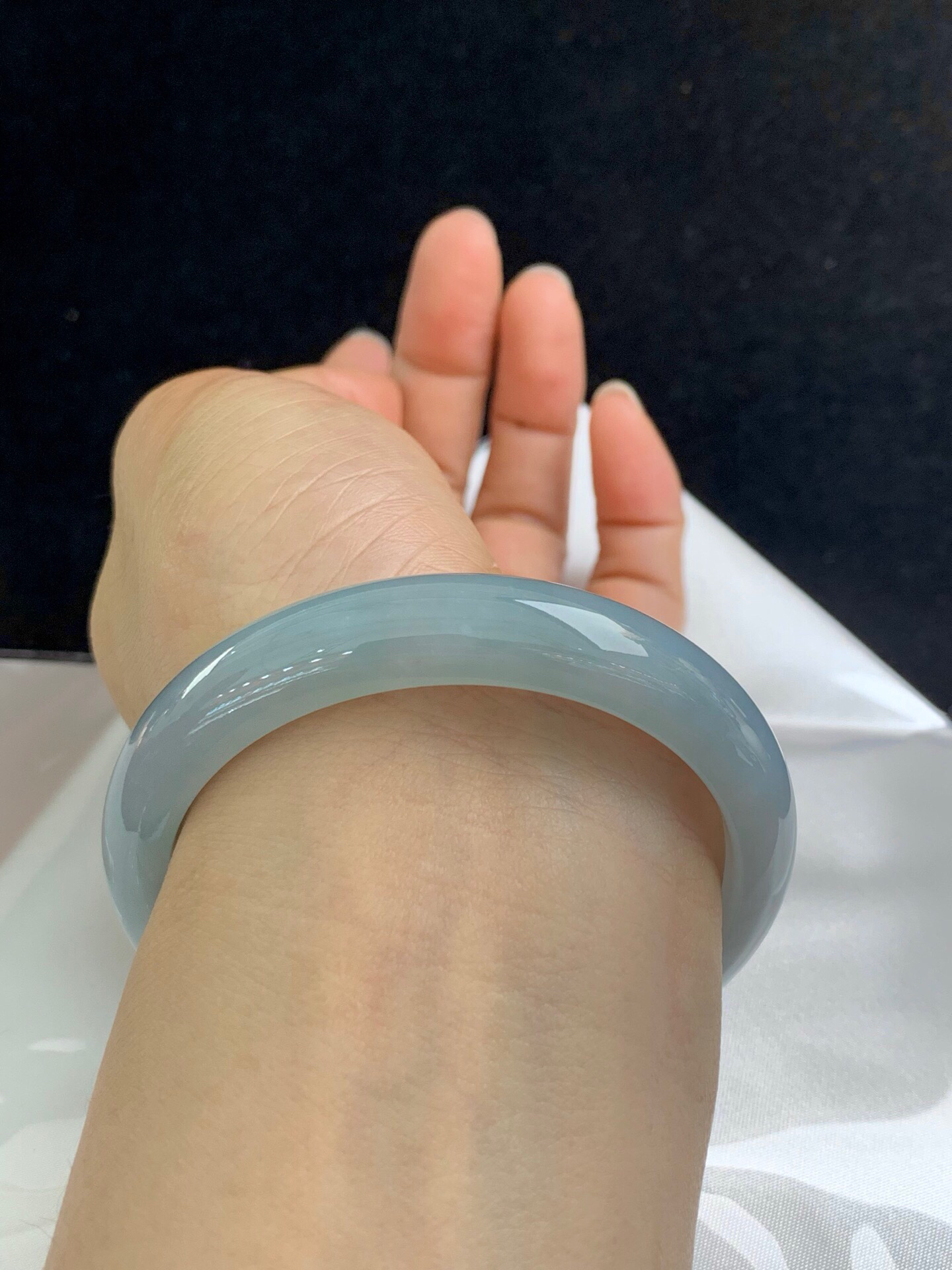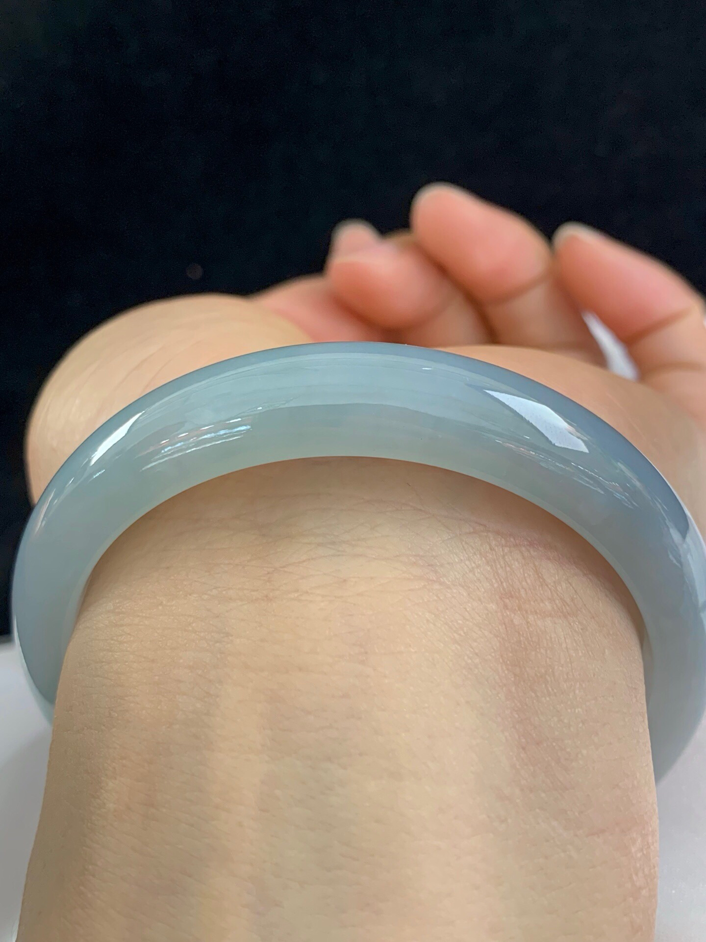 620585,57圈口,糯化蓝底正圈平安镯,底子胶润,窄条形,蓝底色,完美无裂,尺寸:57-11.8-7.3,超值价💰10500 #优石客珠宝#香玉荟萃