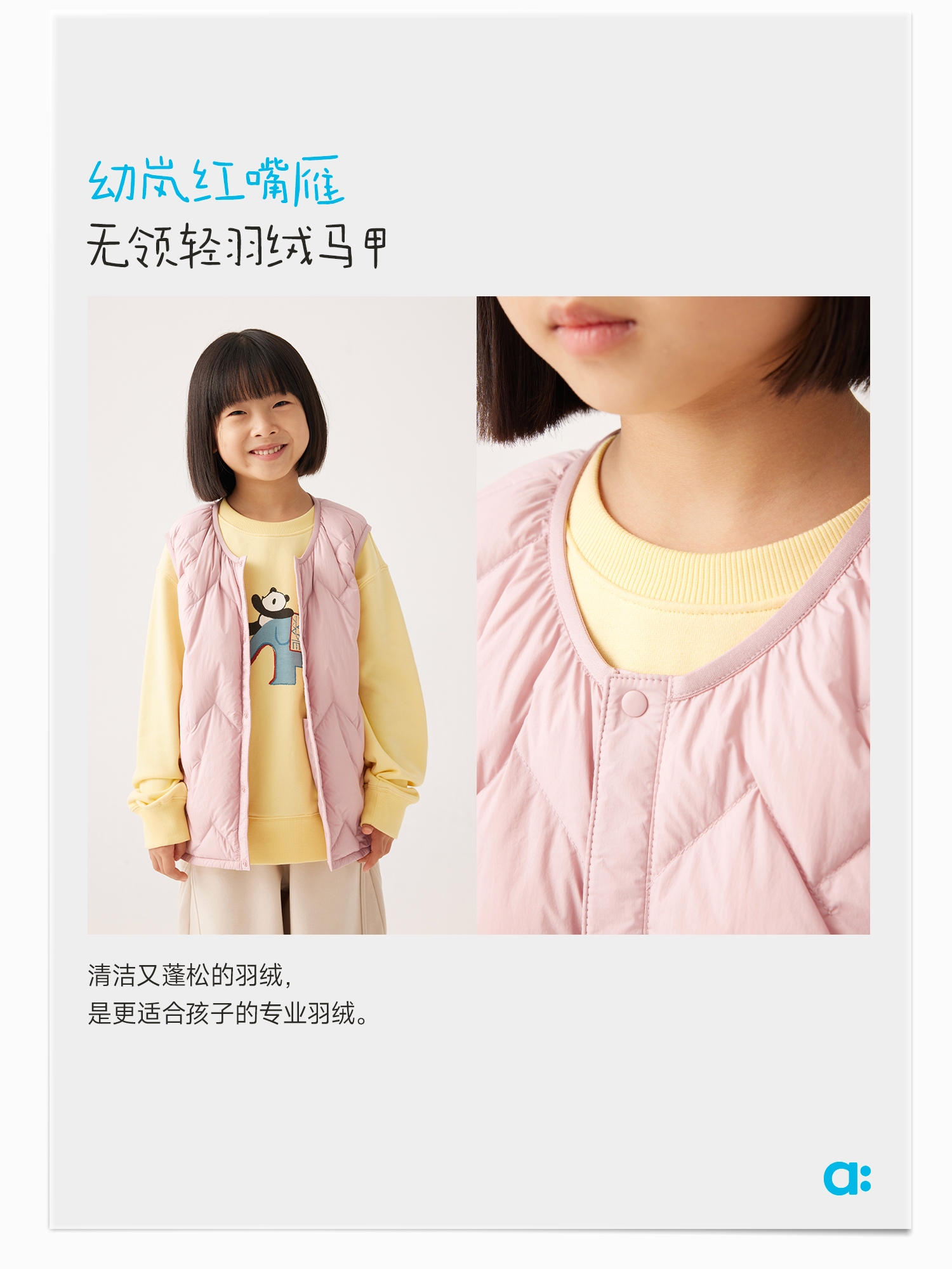 【单件直降】【秋Vol.4】幼岚童装「久洗仍蓬松」红嘴雁无领轻羽绒马甲24秋新款儿童男女童ZY