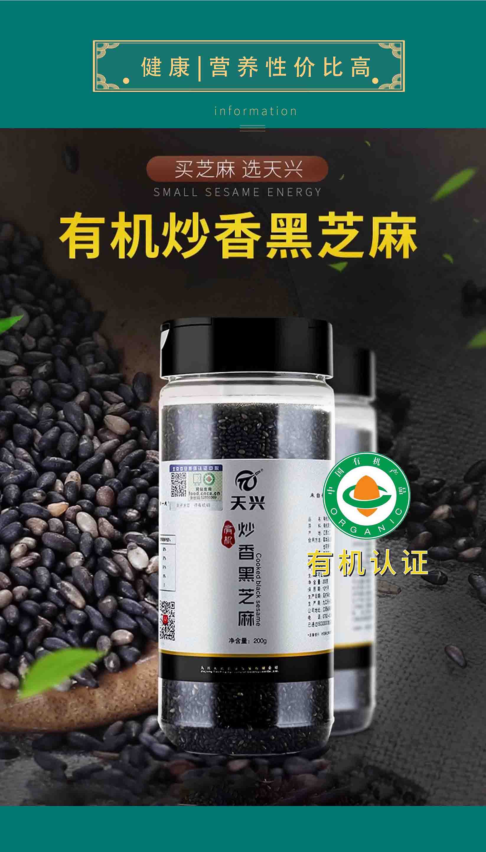 有机熟黑芝麻 有机炒香黑芝麻 干净免洗 200g/瓶