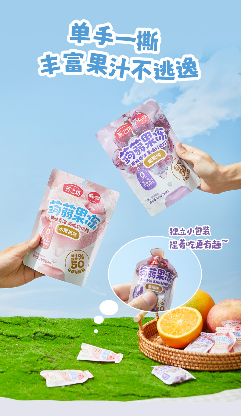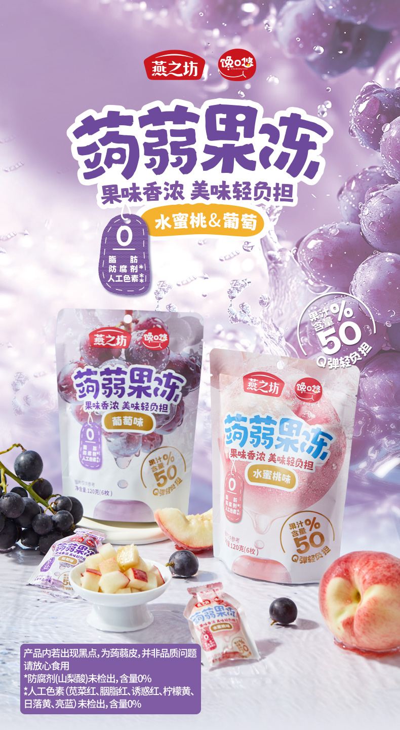 【商城专属】燕之坊 蒟蒻果冻(葡萄味/水蜜桃味)120g*5