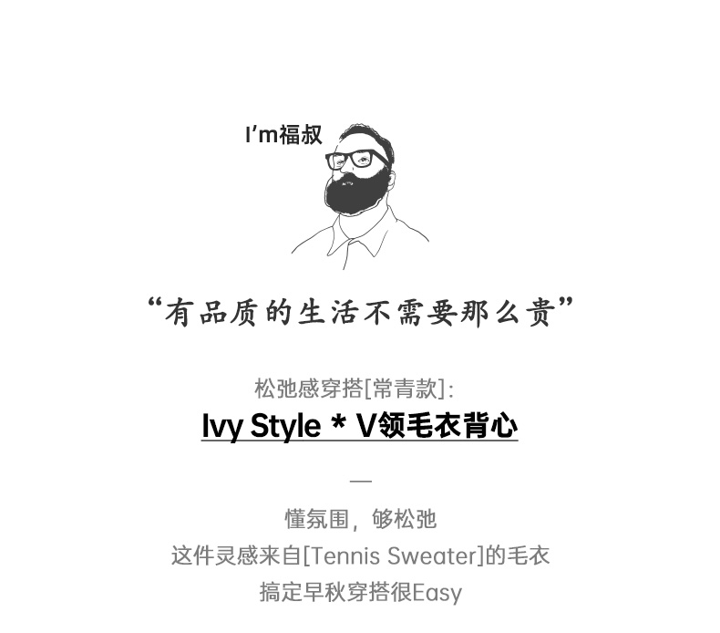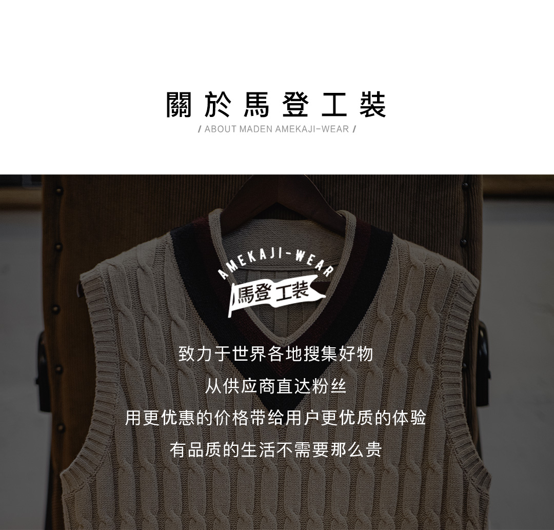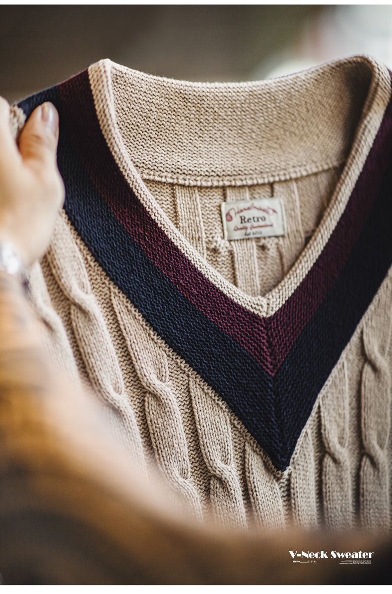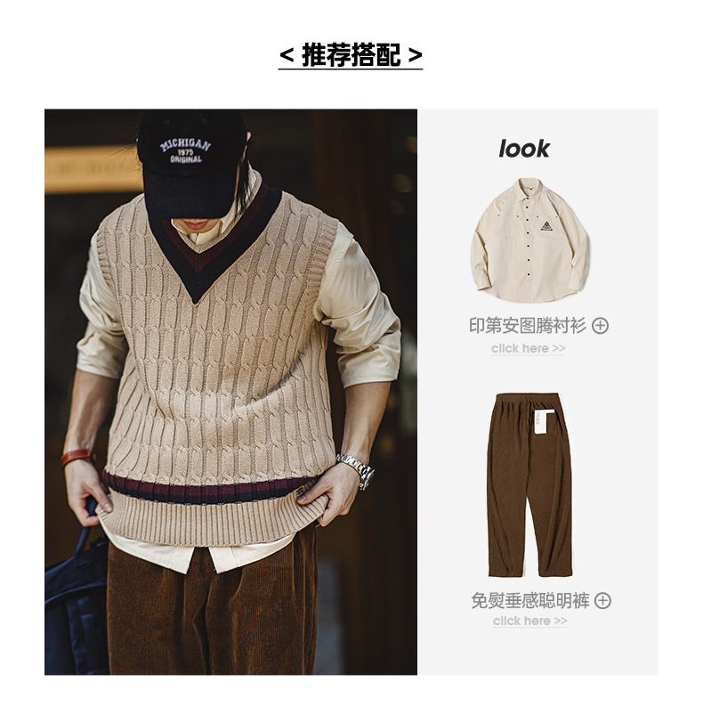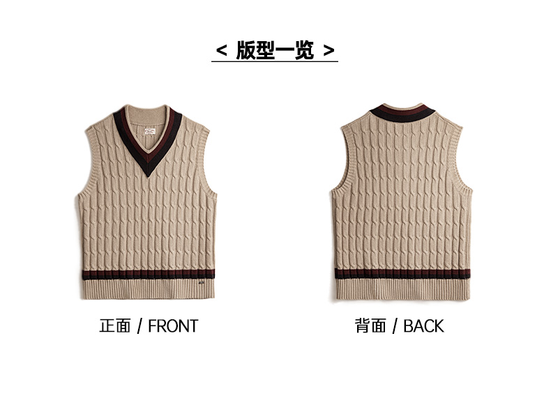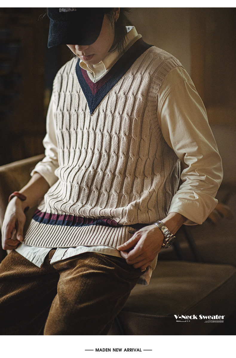 工装优选美式复古IVY针织V领毛衣背心学院风撞色绞花无袖马甲男秋
