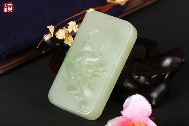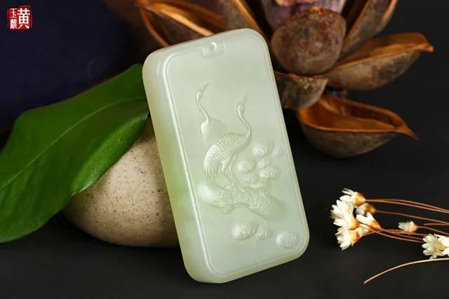 和田玉翠青【仙鹤】吊坠 配精美编织挂绳