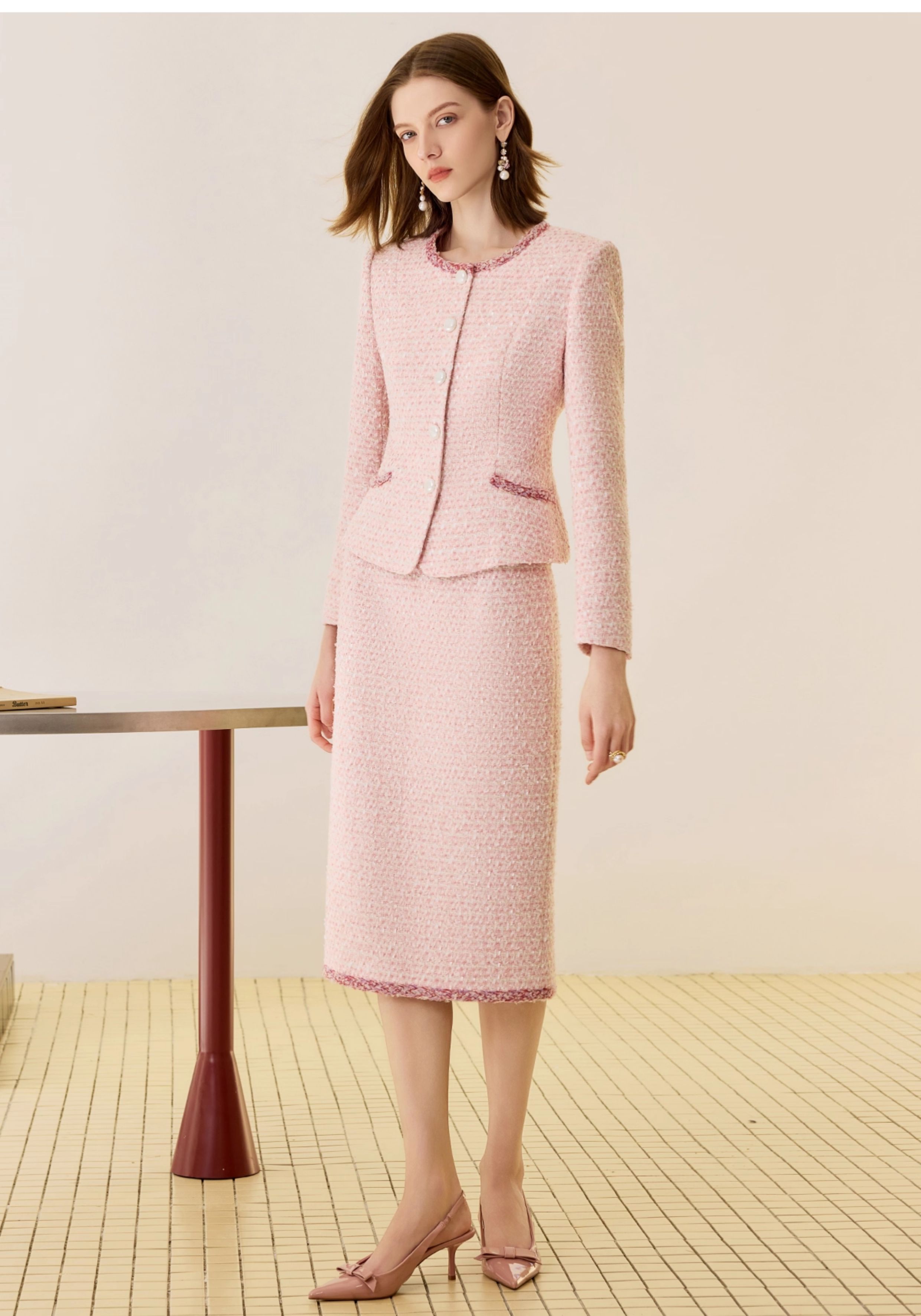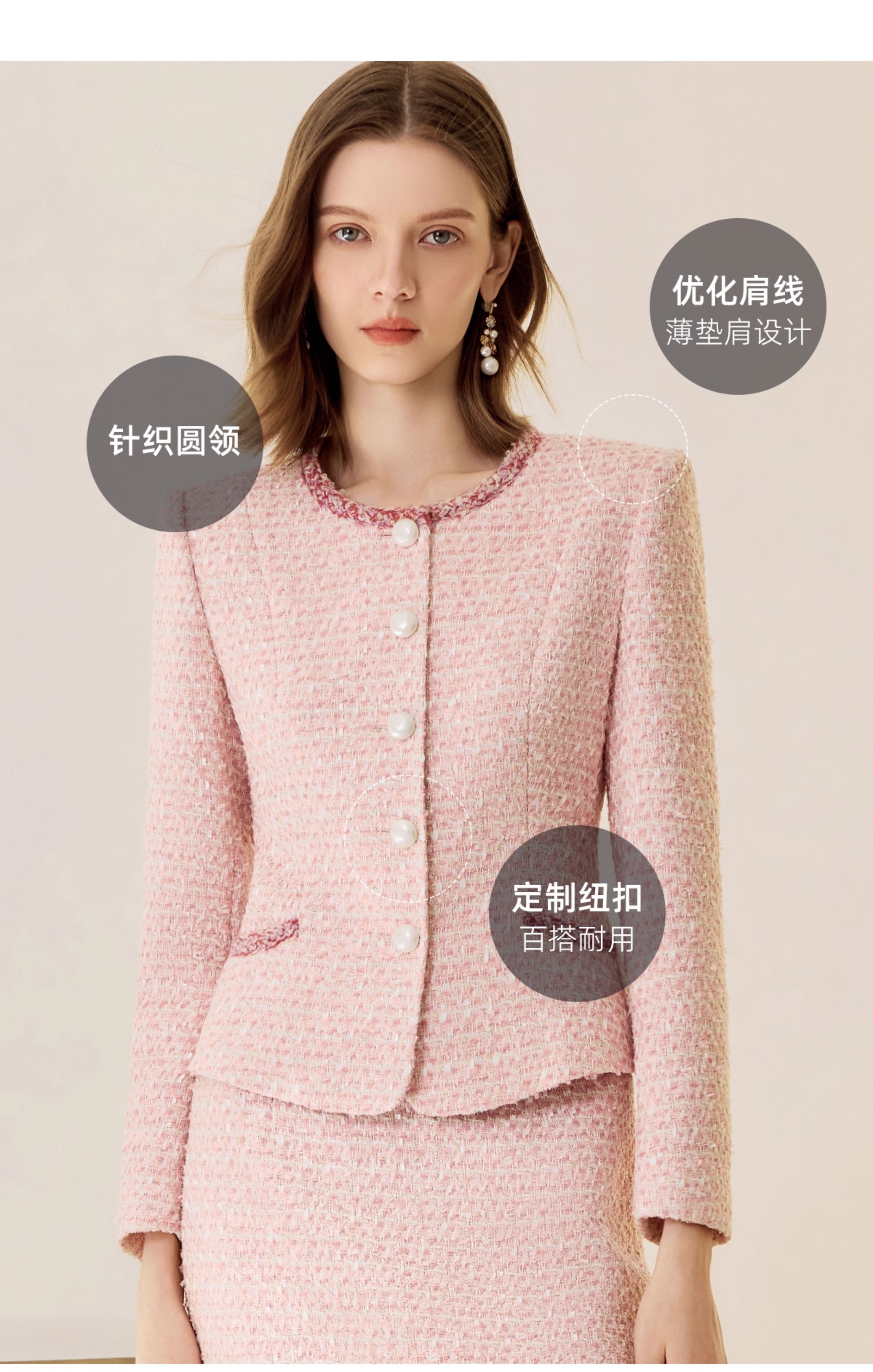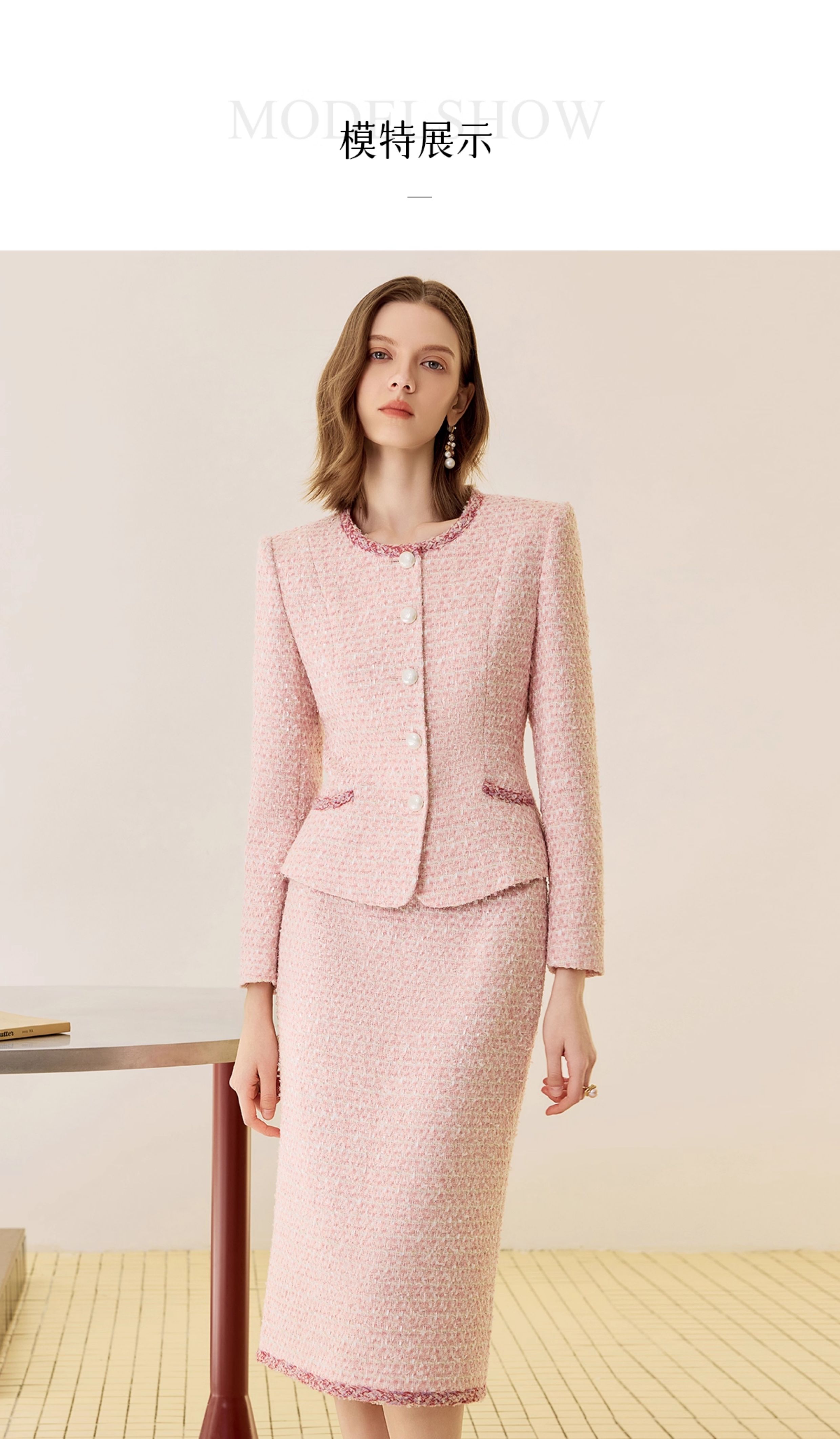 艾尚臣粉色小香风西装套装裙女秋冬高级感播音主持人正式场合正装