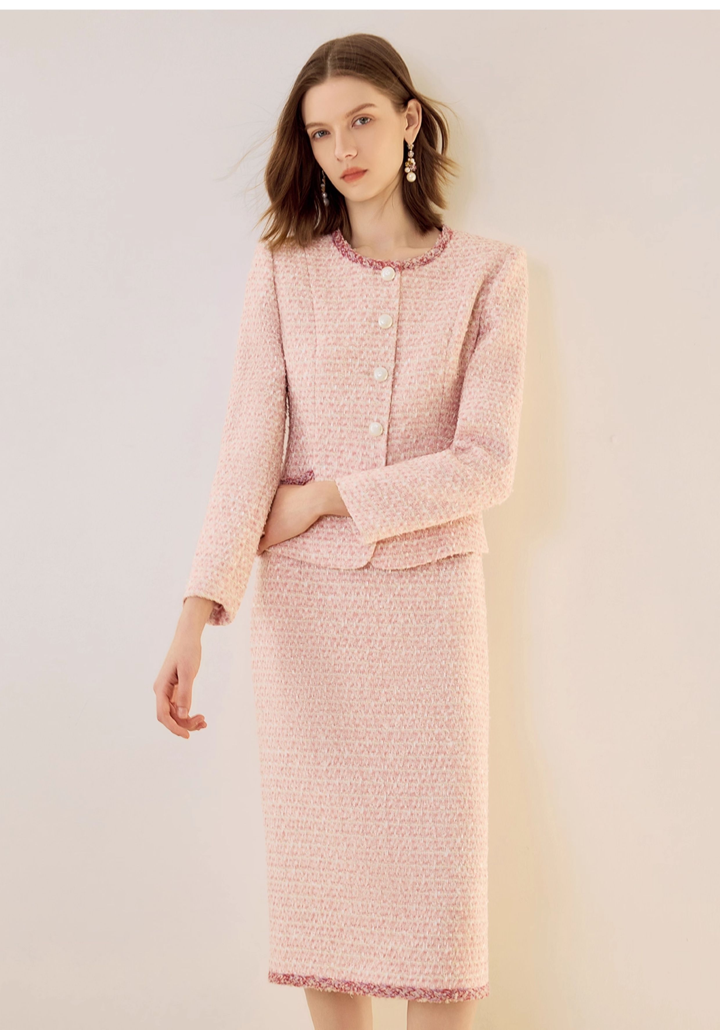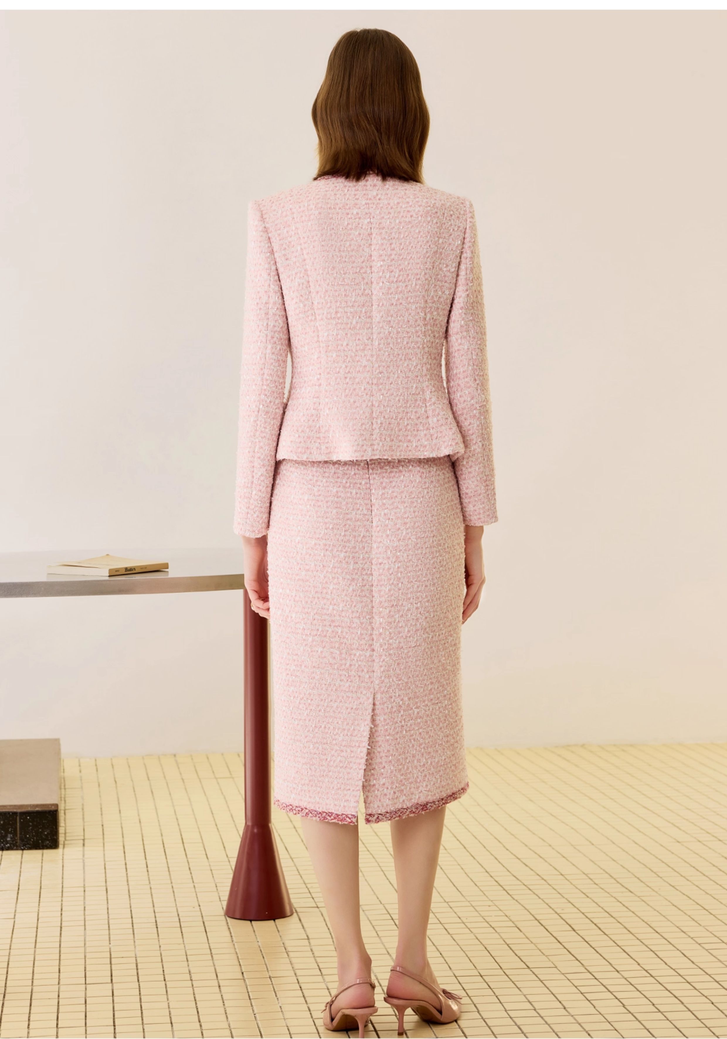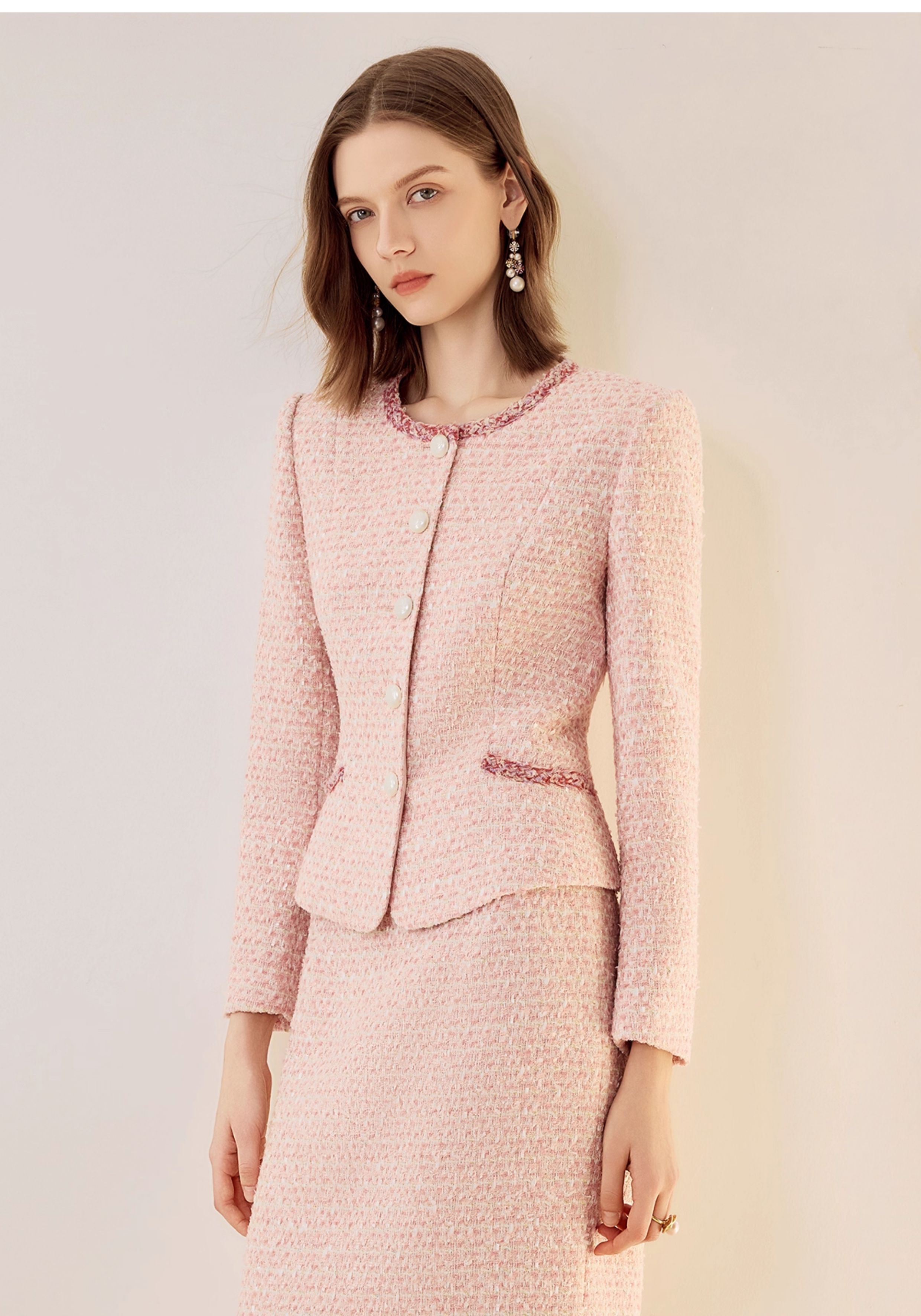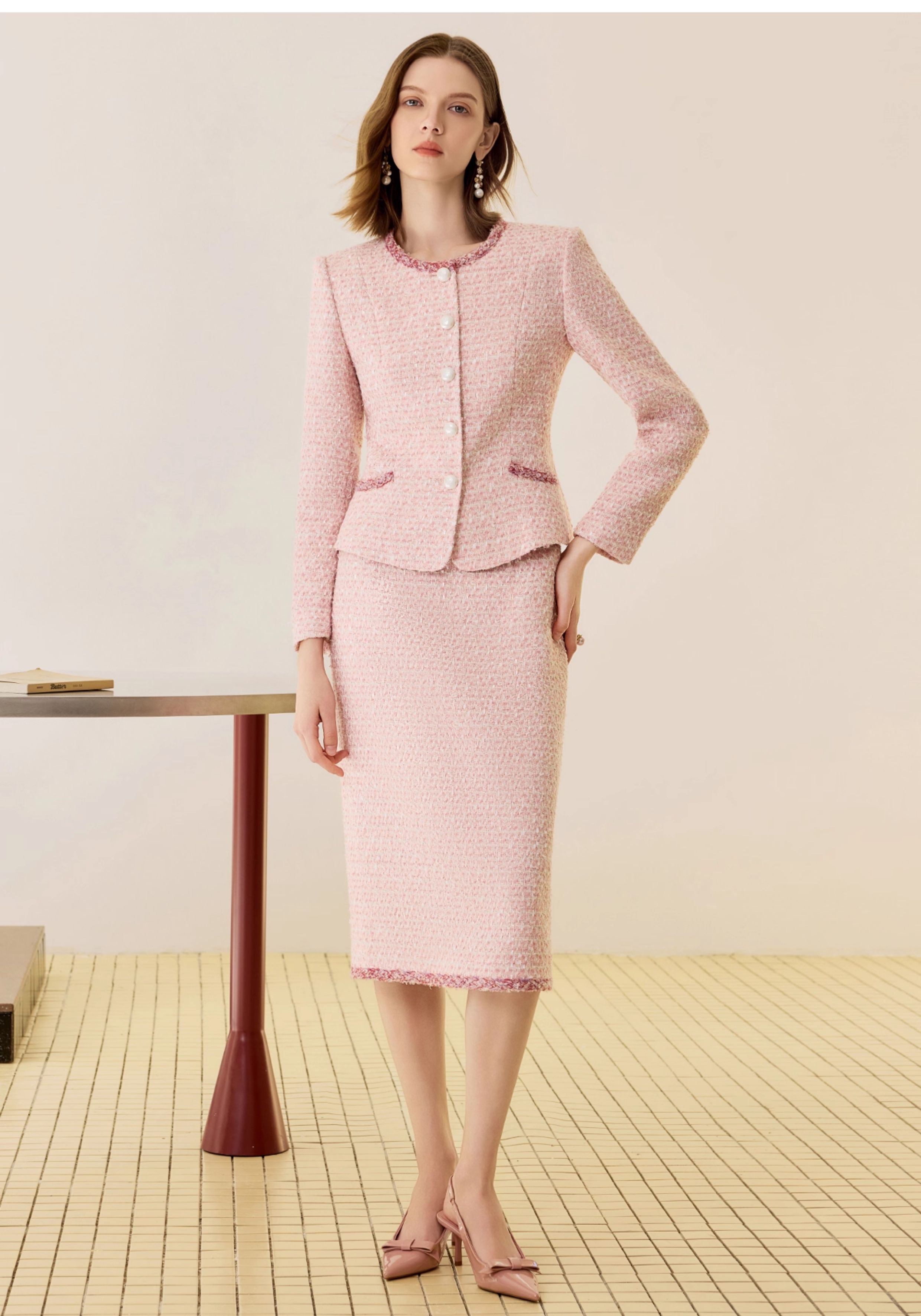 艾尚臣粉色小香风西装套装裙女秋冬高级感播音主持人正式场合正装