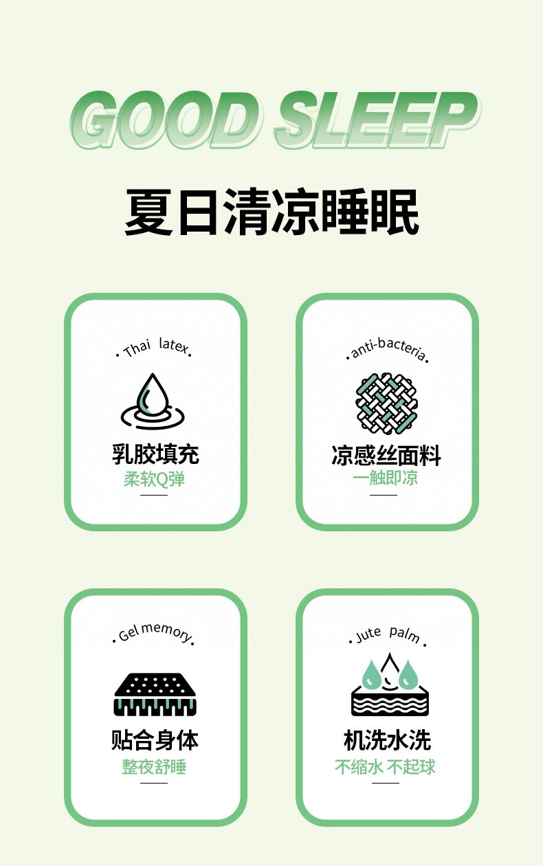 【奢享泰国三皇室同源睡眠美学纯色乳胶凉席三件套】100%乳胶凉席采用的是天然乳胶为原料 教亲肤透气、凉感适中,而且具有弹性,睡眠非常舒适。适合:老人,小孩儿孕妇8的最佳养生凉席~
