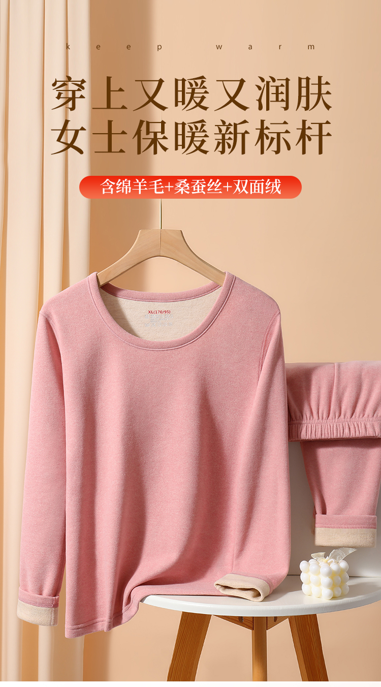 【加绒加厚】220g女士保暖内衣套装含羊毛蚕丝润肤锁温秋衣裤满天星保暖套装
