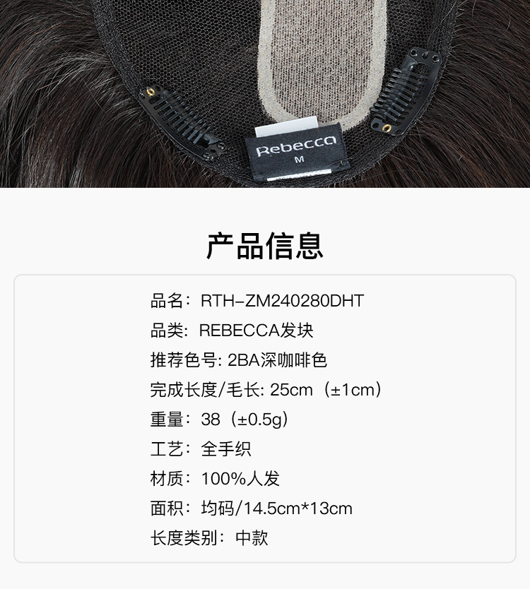 Rebecca瑞贝卡假发片一片式自然增发女偏分中款发片全真人发补发片全手织补发片