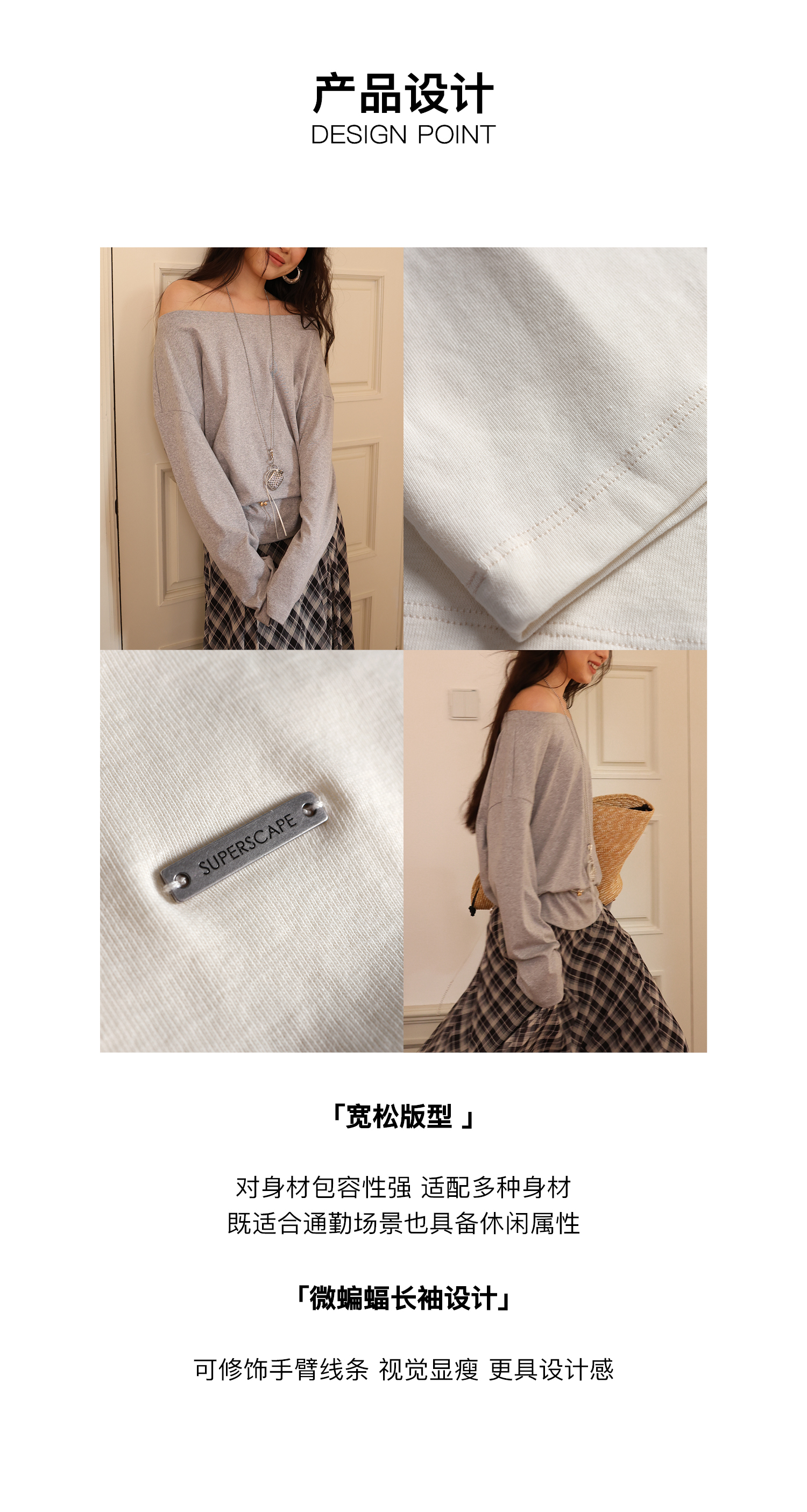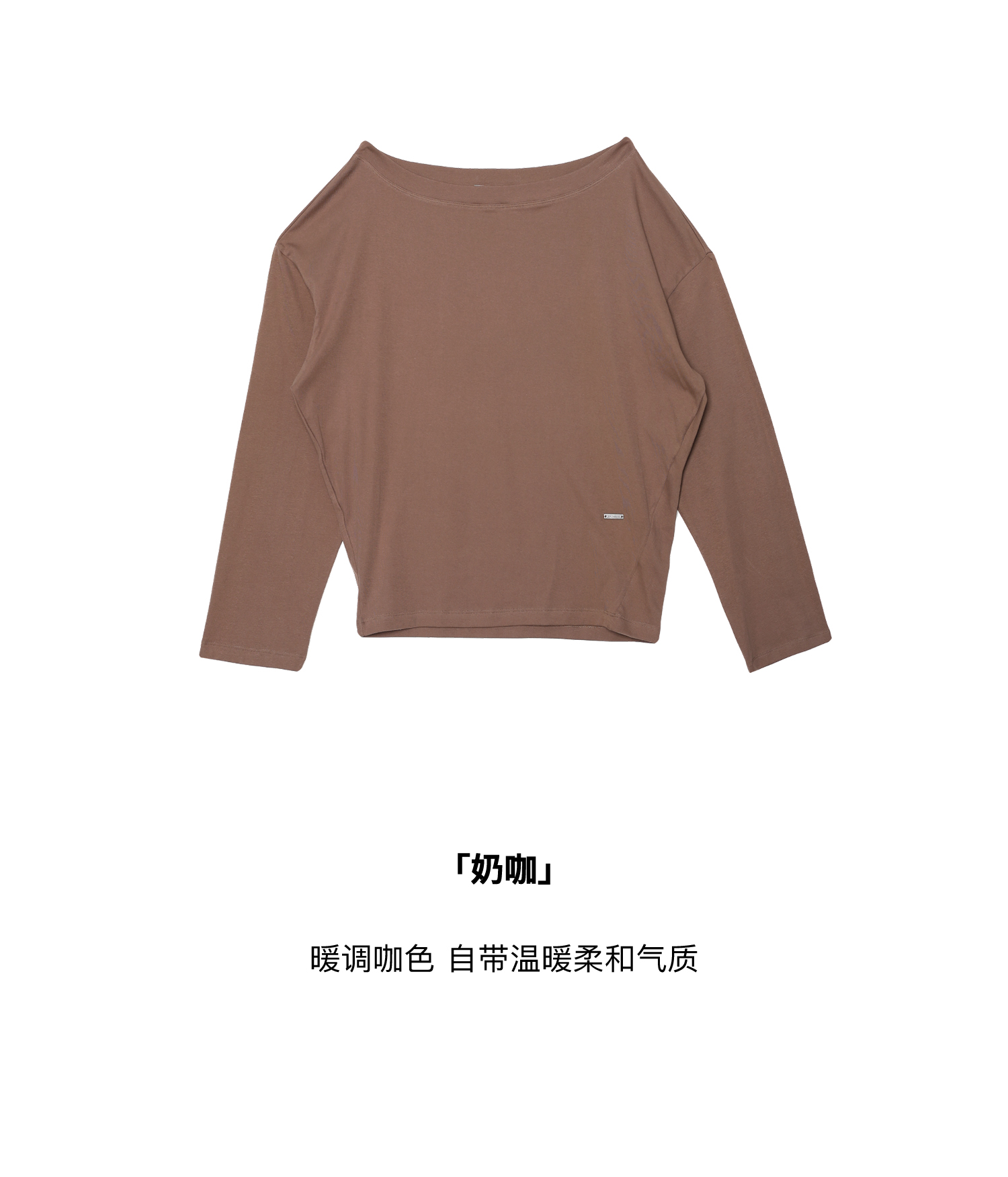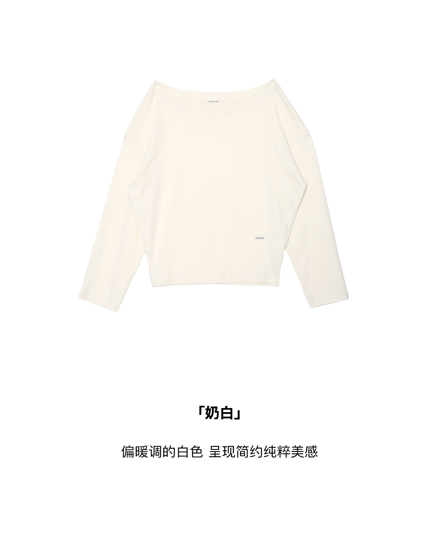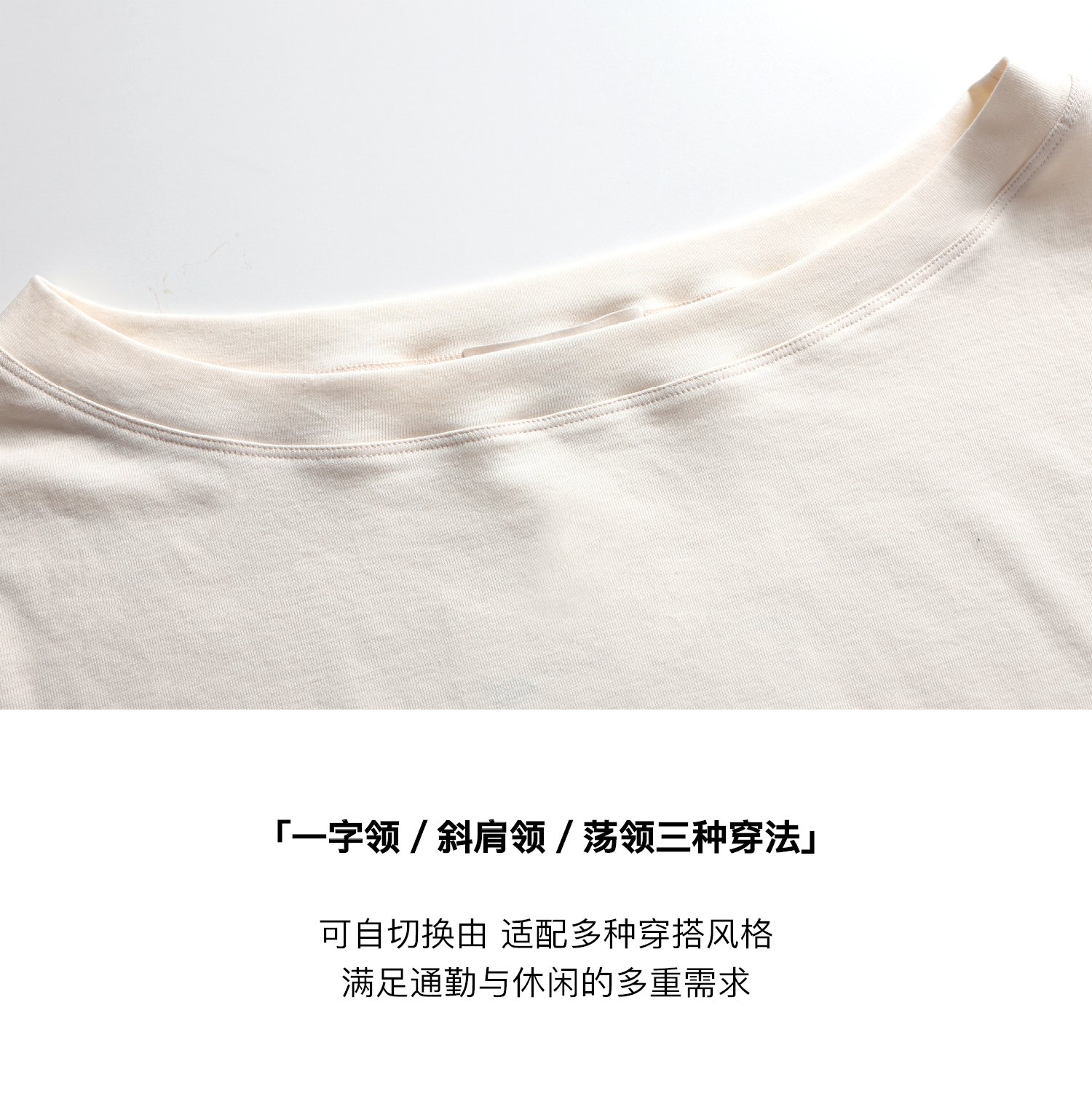 素舶 新疆棉7A抗菌柔软透气不变形一字领斜肩长袖T恤SUPERSCAPE