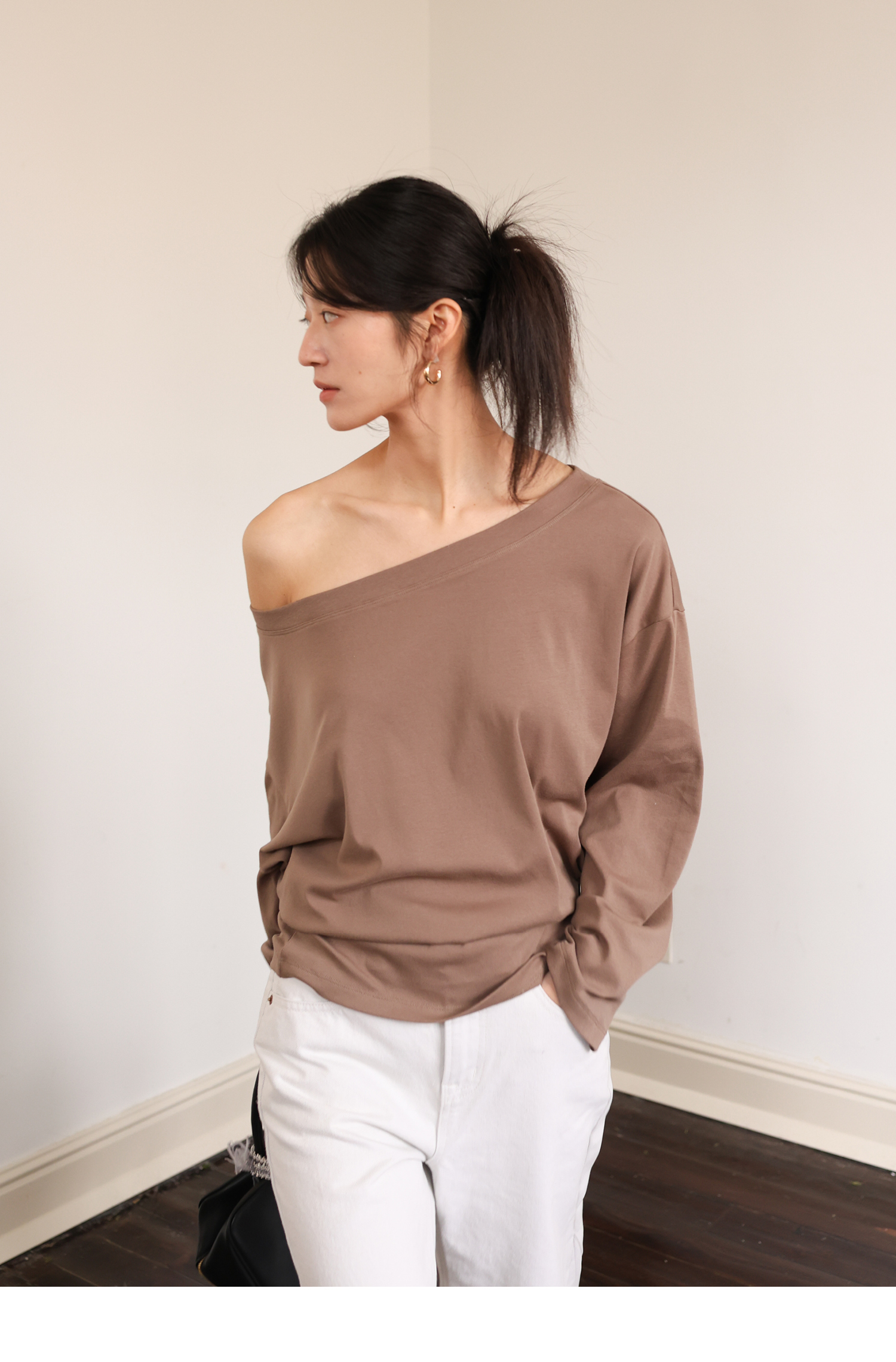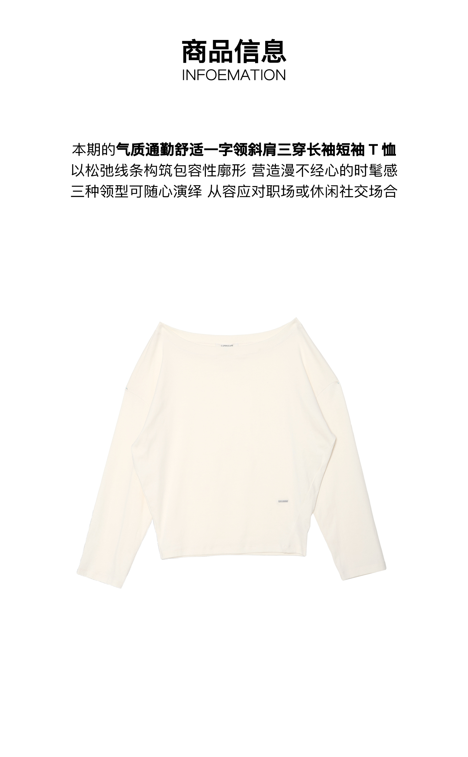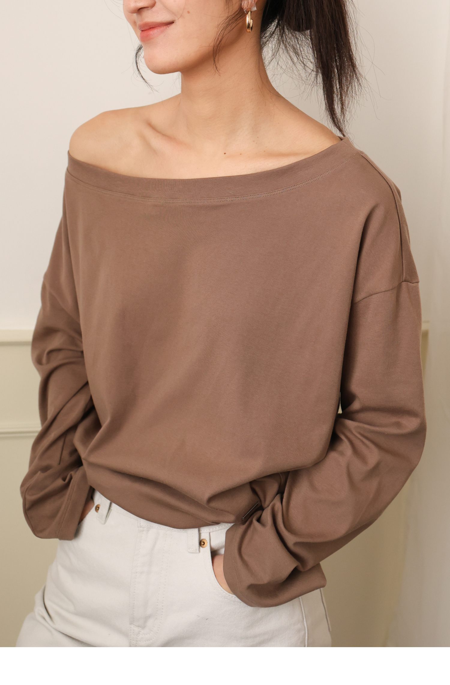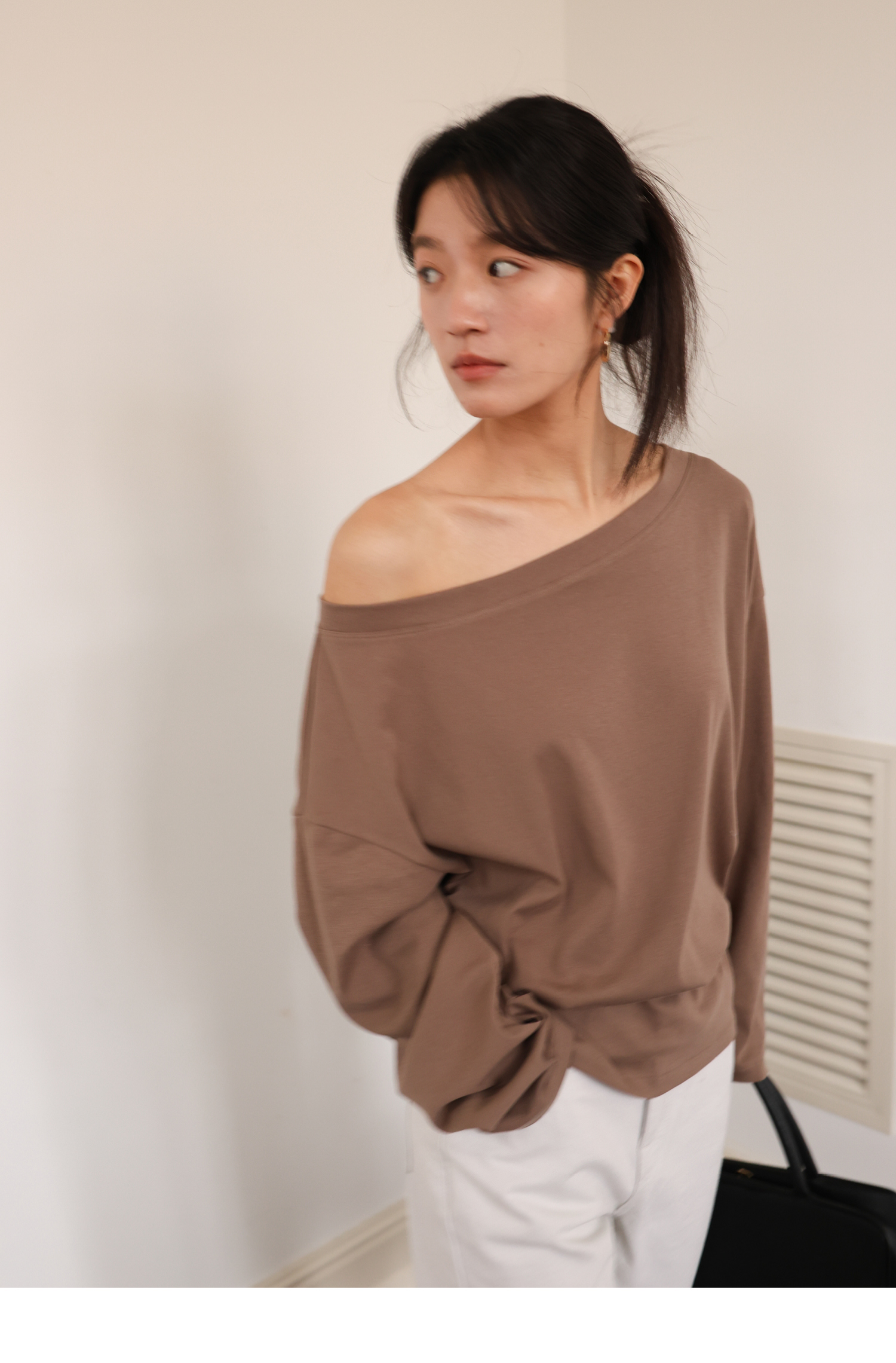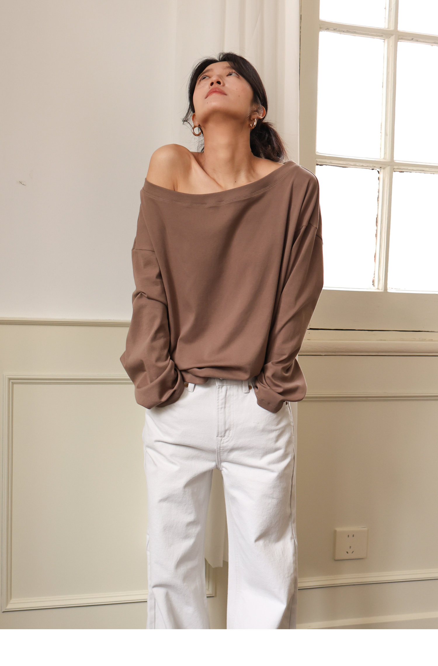 素舶 新疆棉7A抗菌柔软透气不变形一字领斜肩长袖T恤SUPERSCAPE