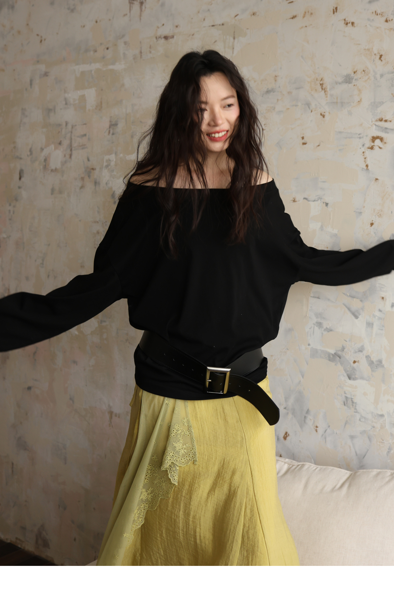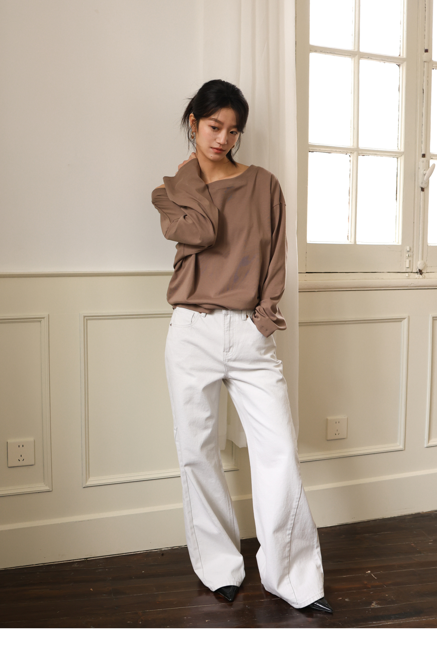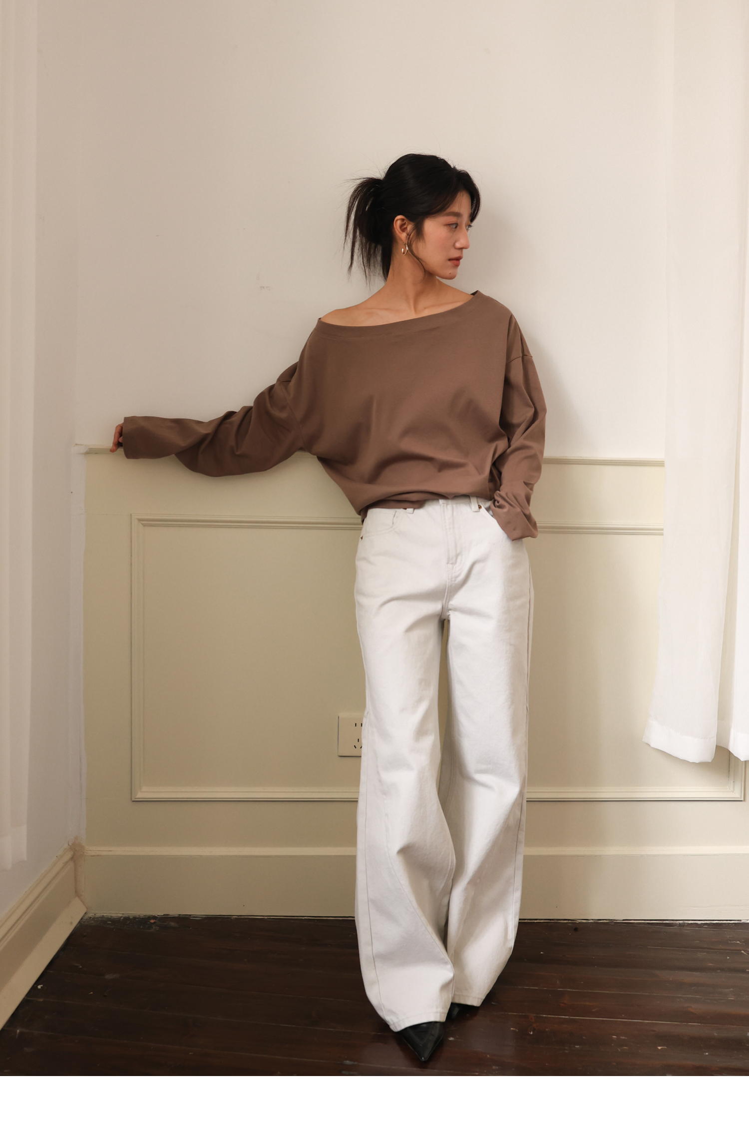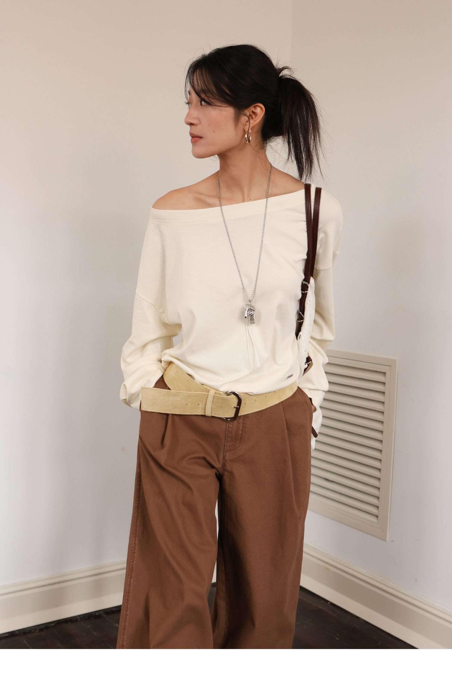 素舶 新疆棉7A抗菌柔软透气不变形一字领斜肩长袖T恤SUPERSCAPE