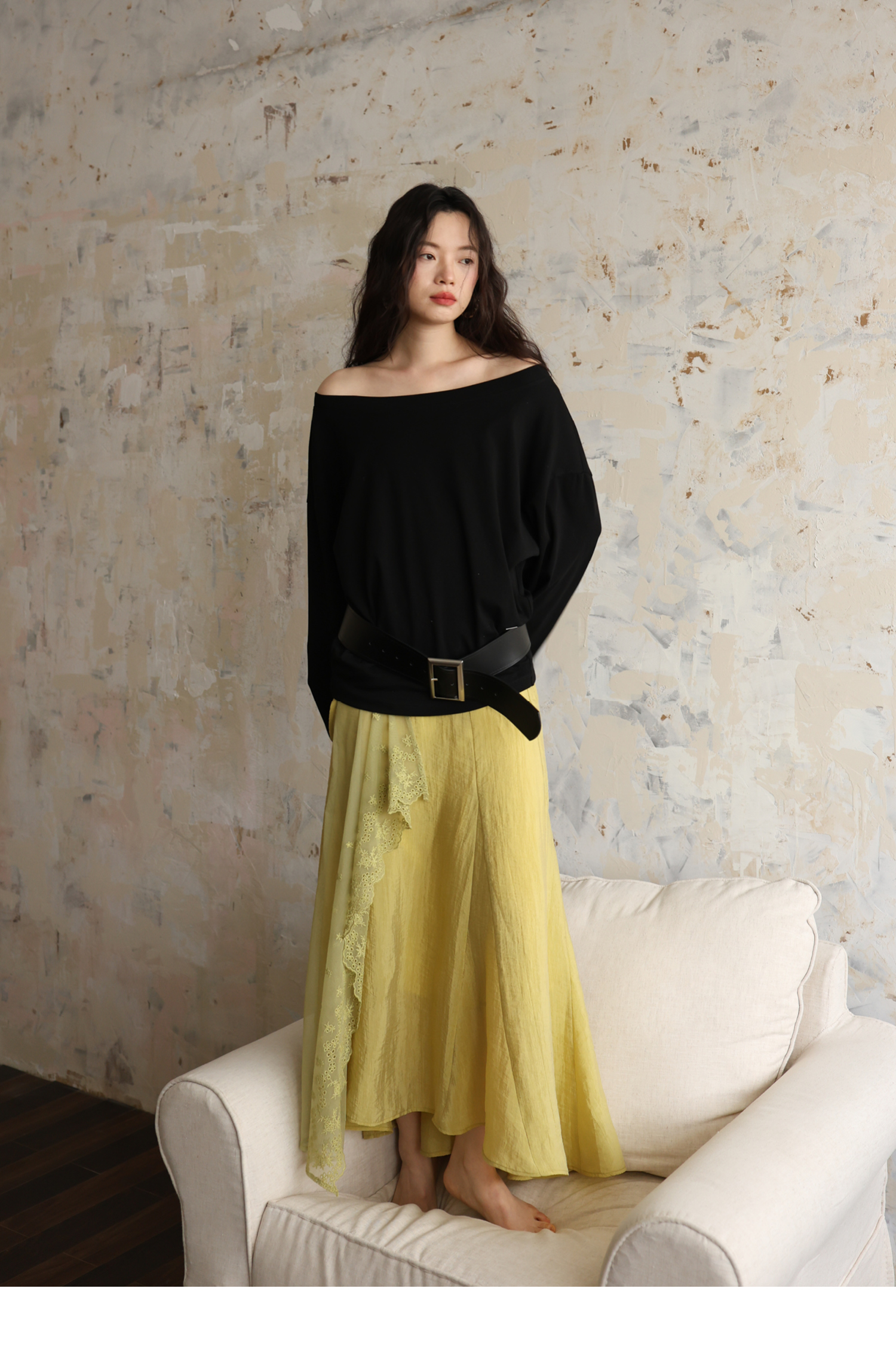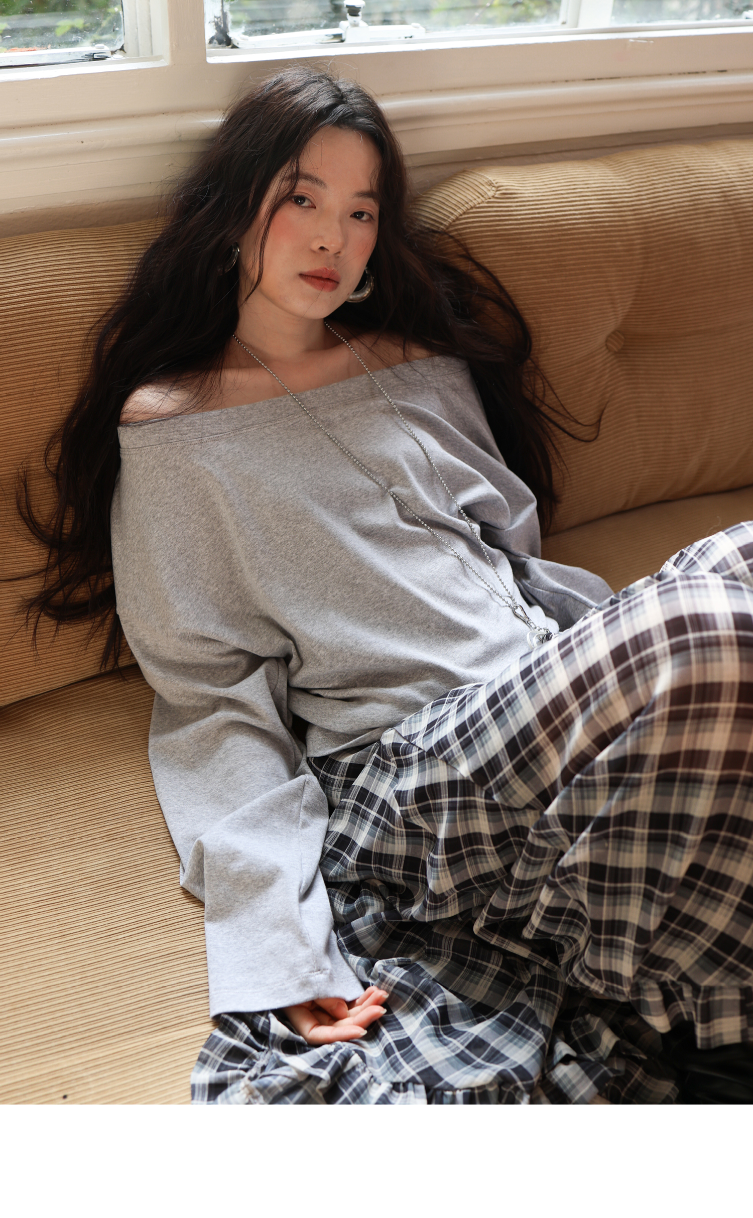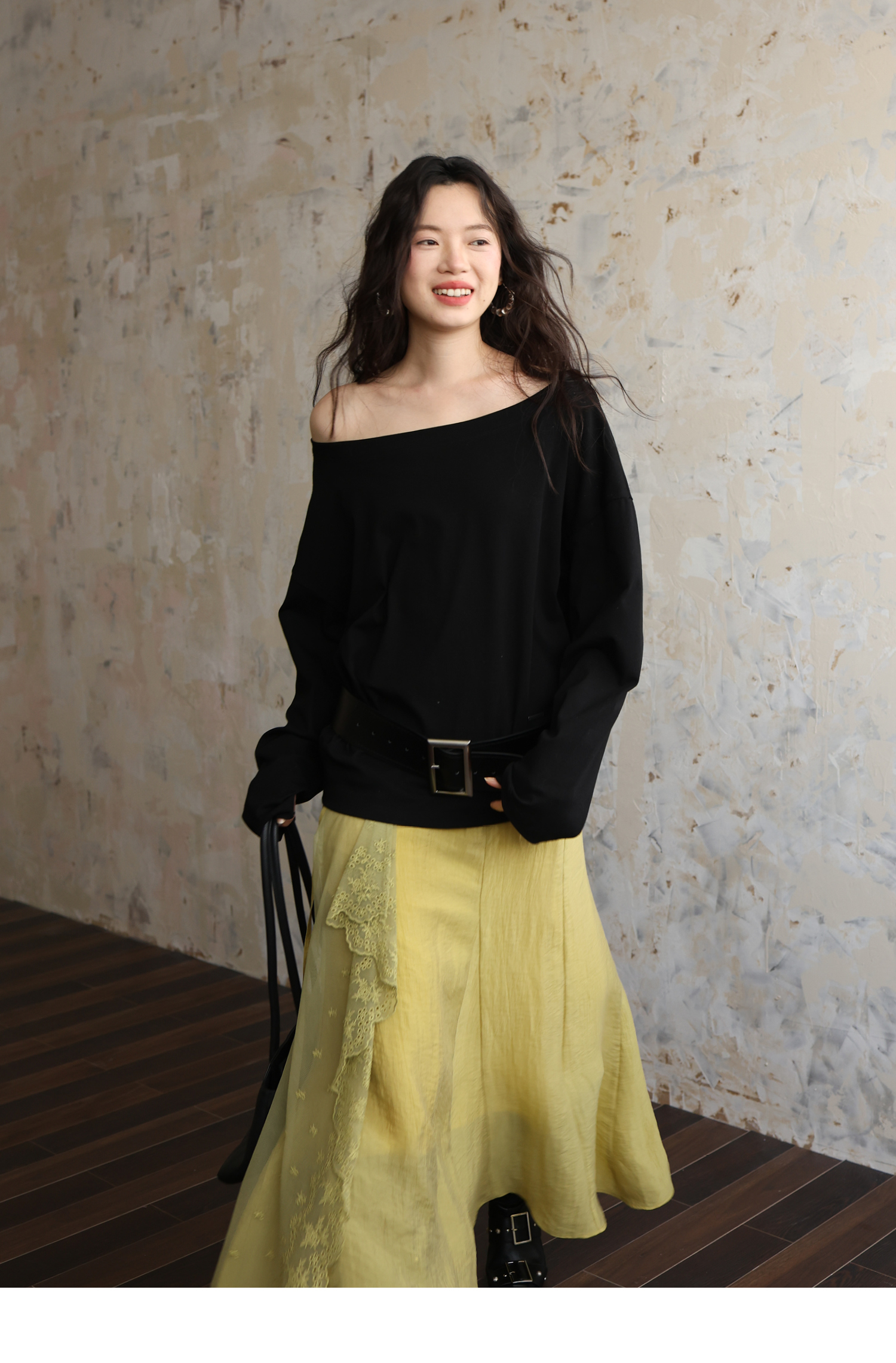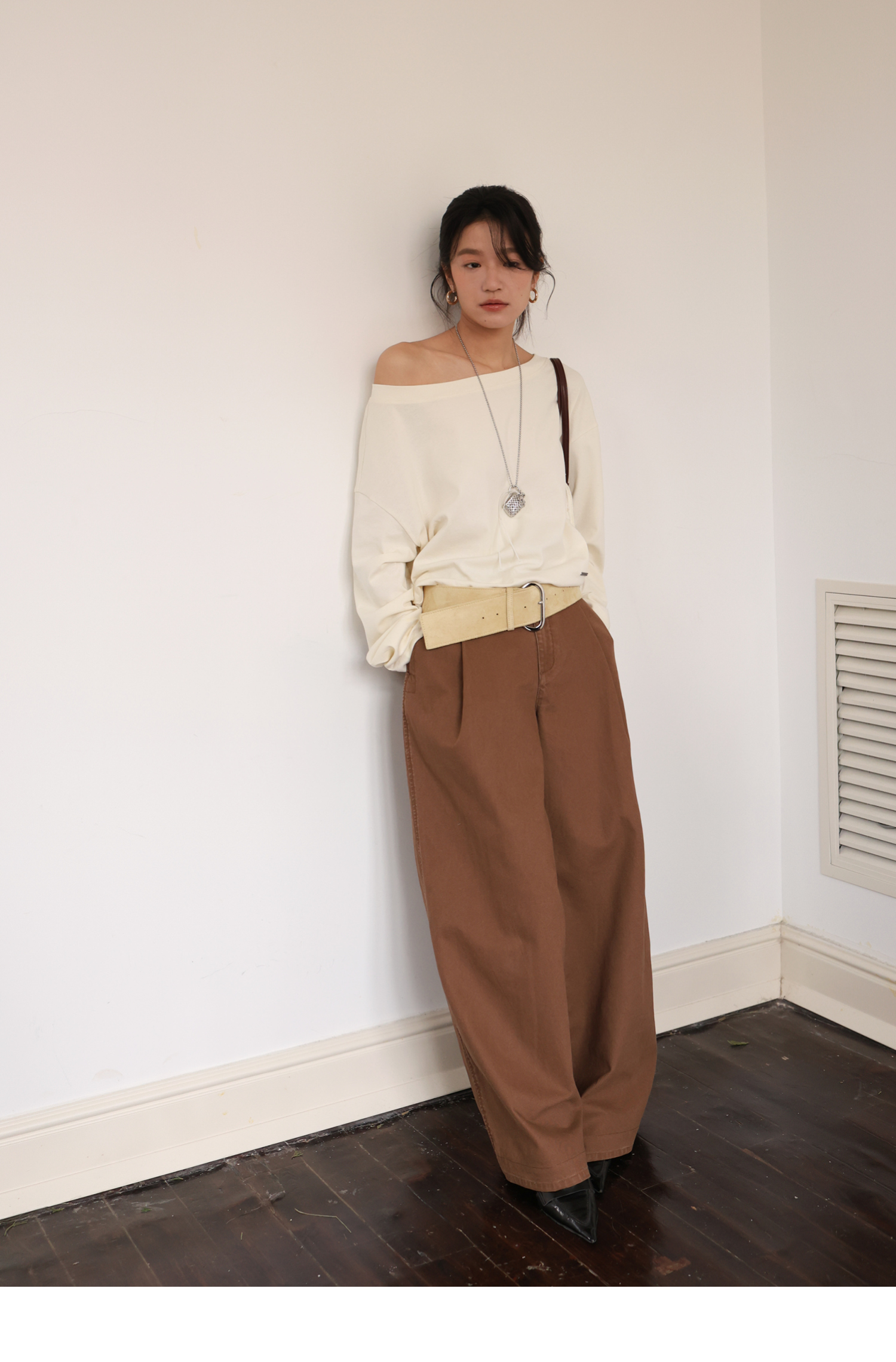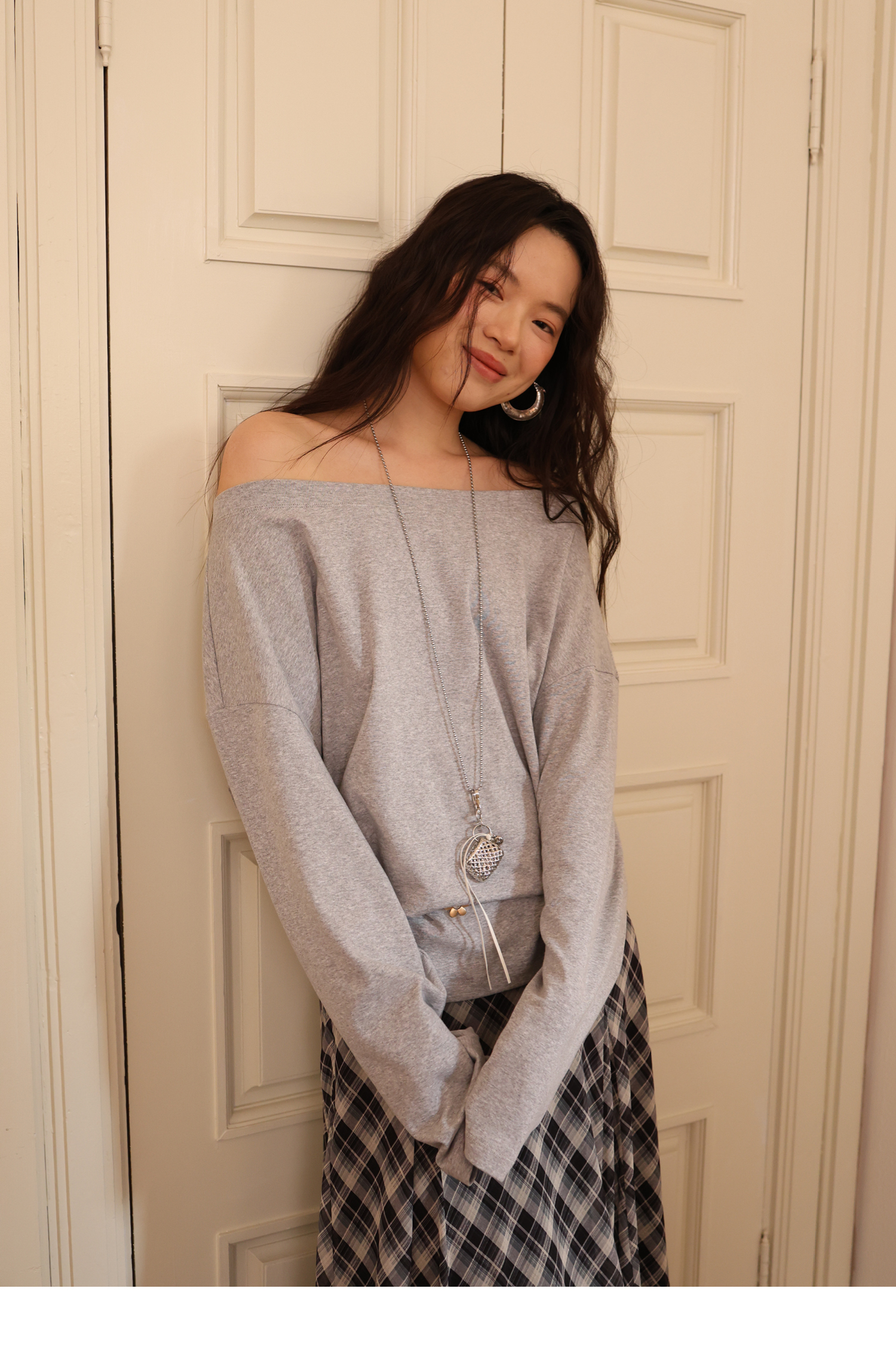 素舶 新疆棉7A抗菌柔软透气不变形一字领斜肩长袖T恤SUPERSCAPE