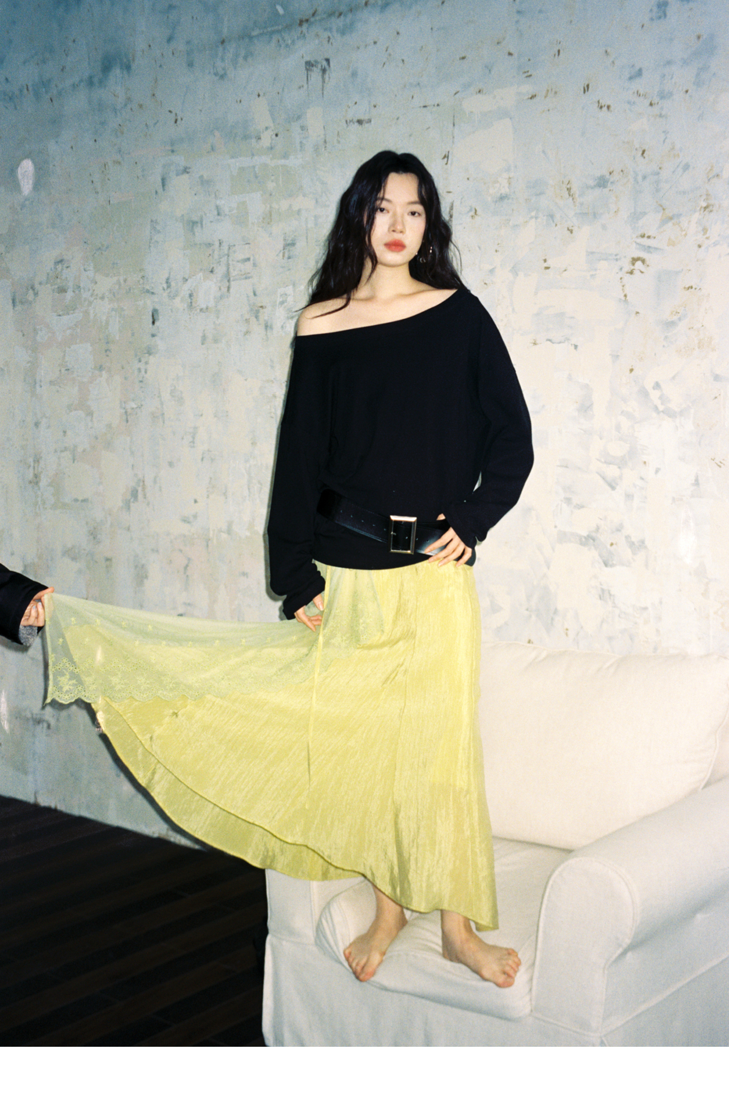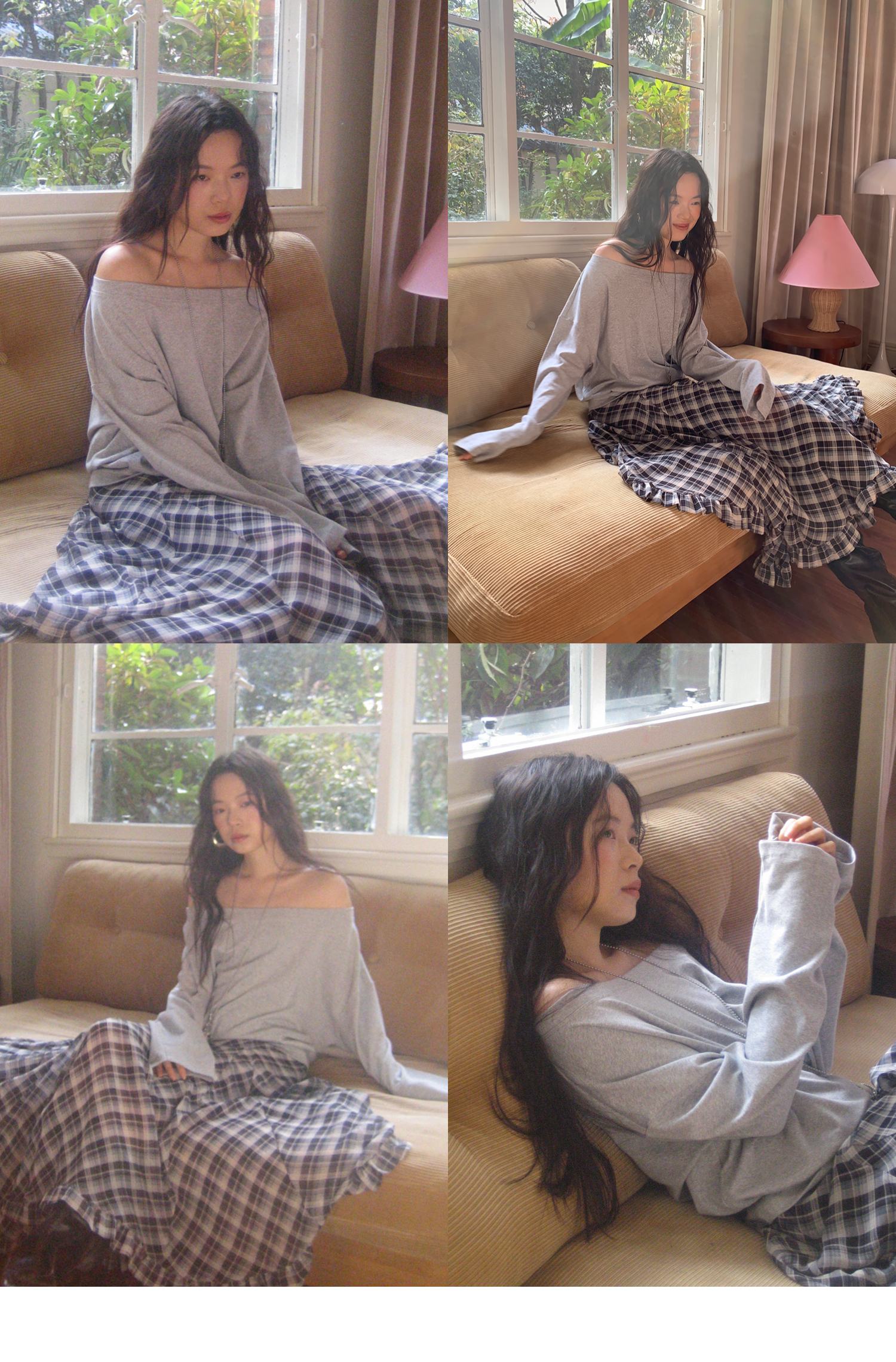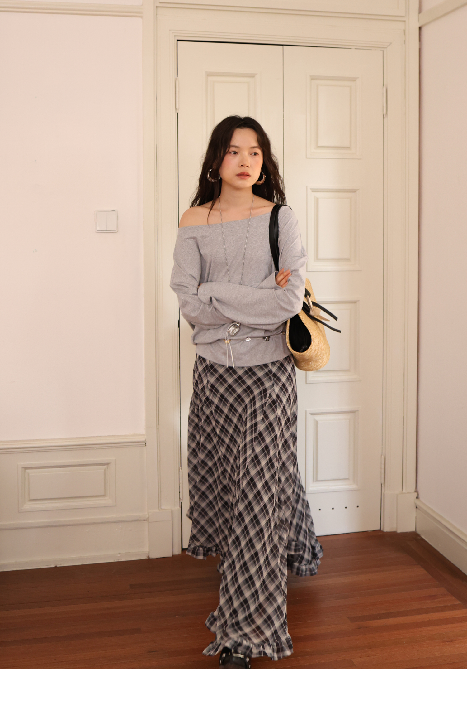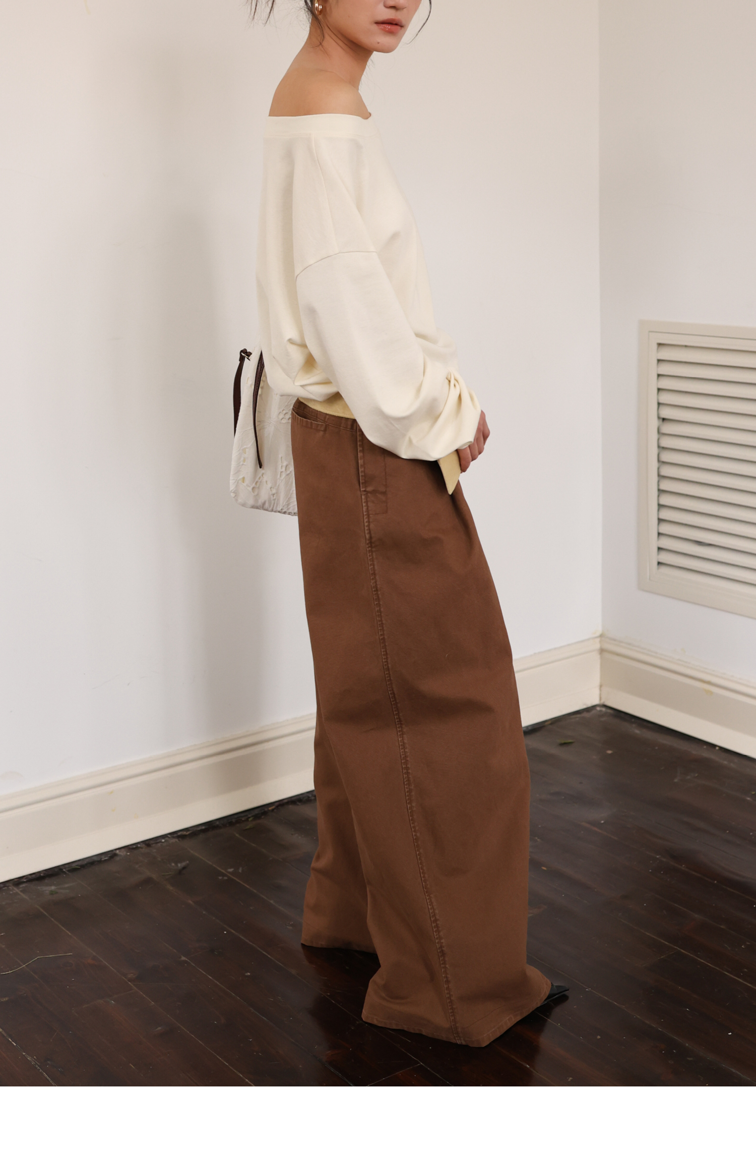 素舶 新疆棉7A抗菌柔软透气不变形一字领斜肩长袖T恤SUPERSCAPE