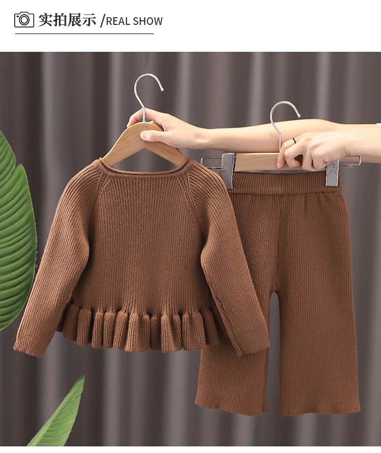 【美拉德风针织两件套】女童毛衣裤套装2023秋冬宝宝小熊洋气上衣+裤