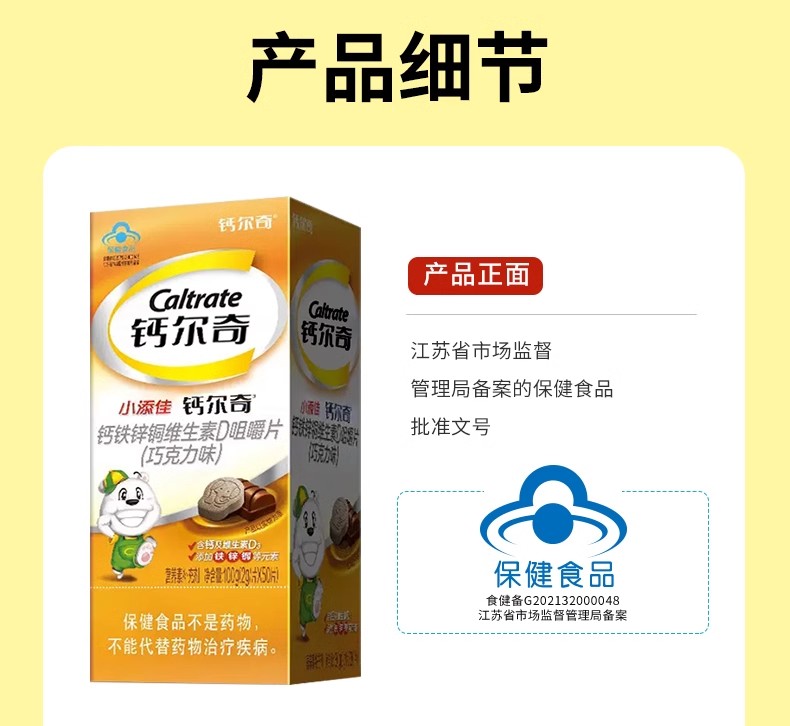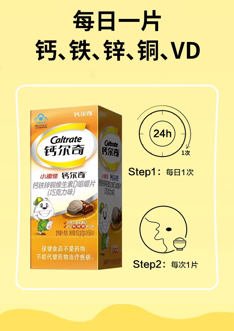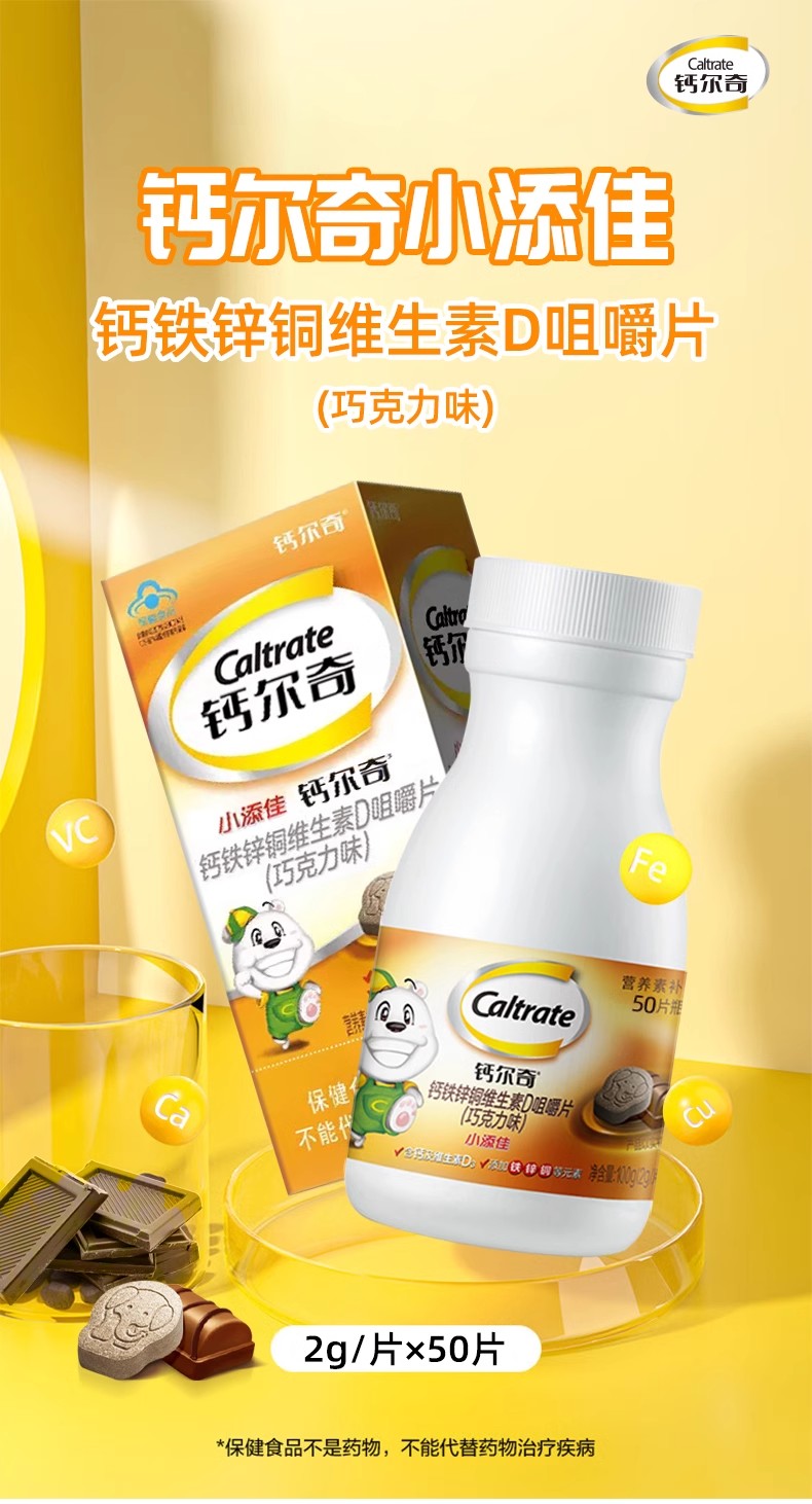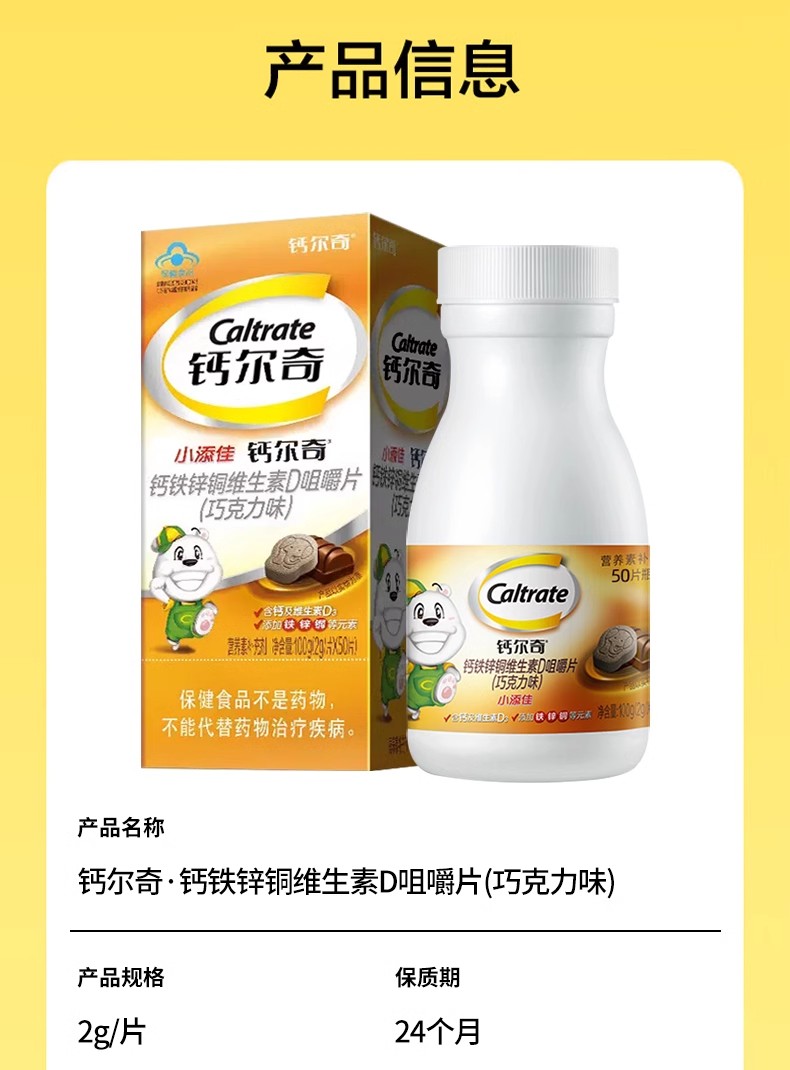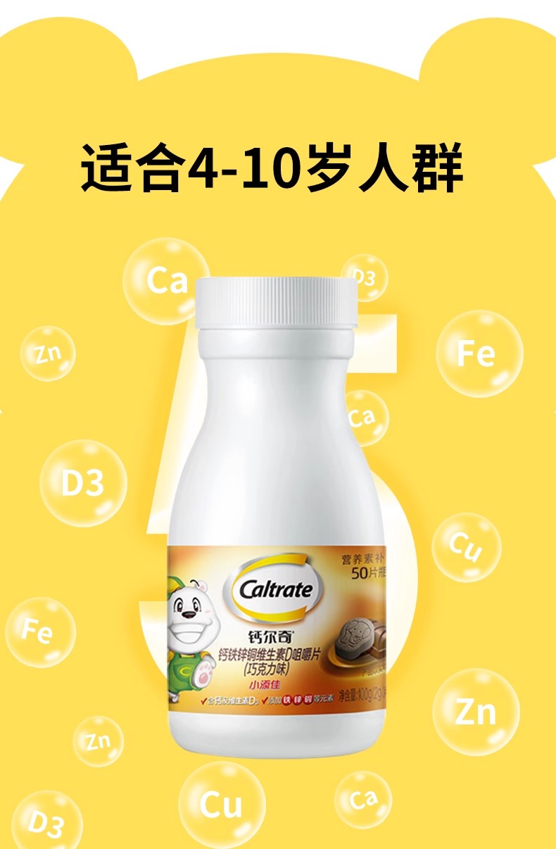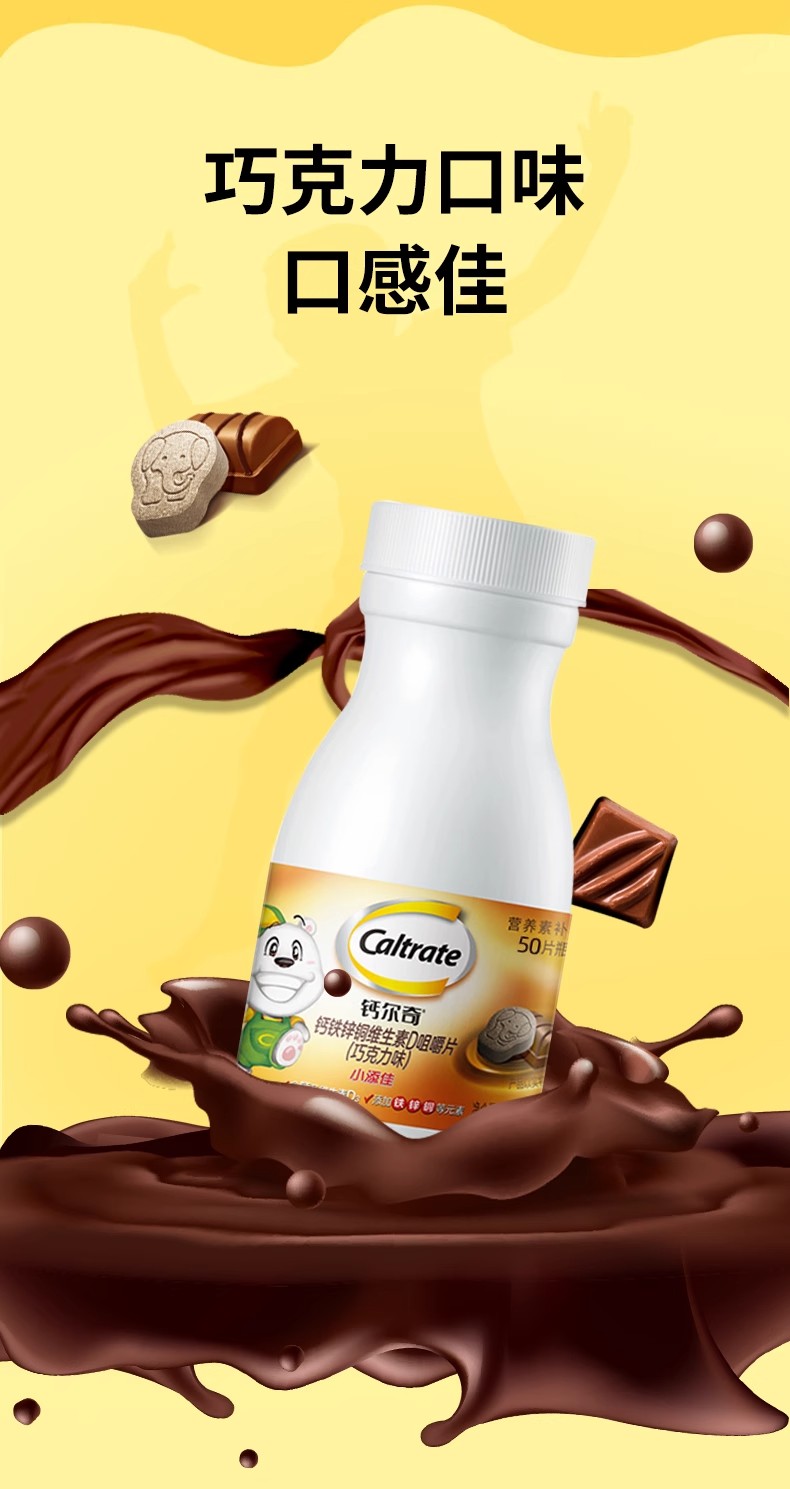 钙尔奇小添加咀嚼片(巧克力味)儿童补钙铁锌铜4-10岁2g*50片