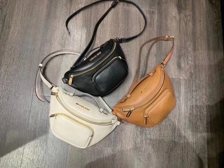 超级难买的黑金色!Michael Kors/ MK女士腰包胸包 全牛皮❗气质好看,个性圆润的椭圆包型,搭配柔韧的皮质,再加上精致的走线,触感柔软更是加分。放手机钥匙和小钱包完全没问题