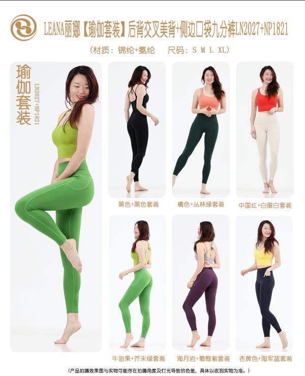 LEANA丽娜【瑜伽套装】后背交叉美背+侧边口袋九分裤LN2027+NP1821