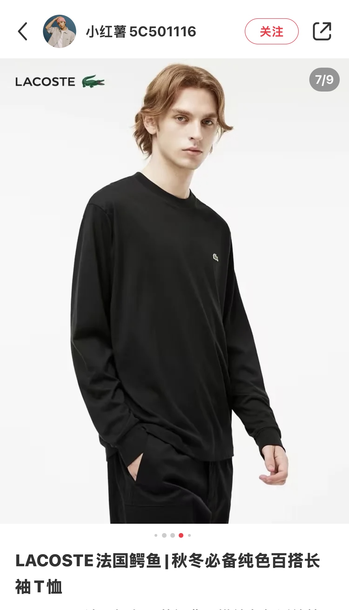 LACOSTE法国鳄鱼男装经典百搭纯色舒适纯棉圆领长袖T恤|TH7307