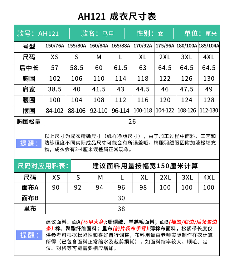 裁缝学苑AH121立领马甲纸样女装新款短款珊瑚绒上衣外套服装打板