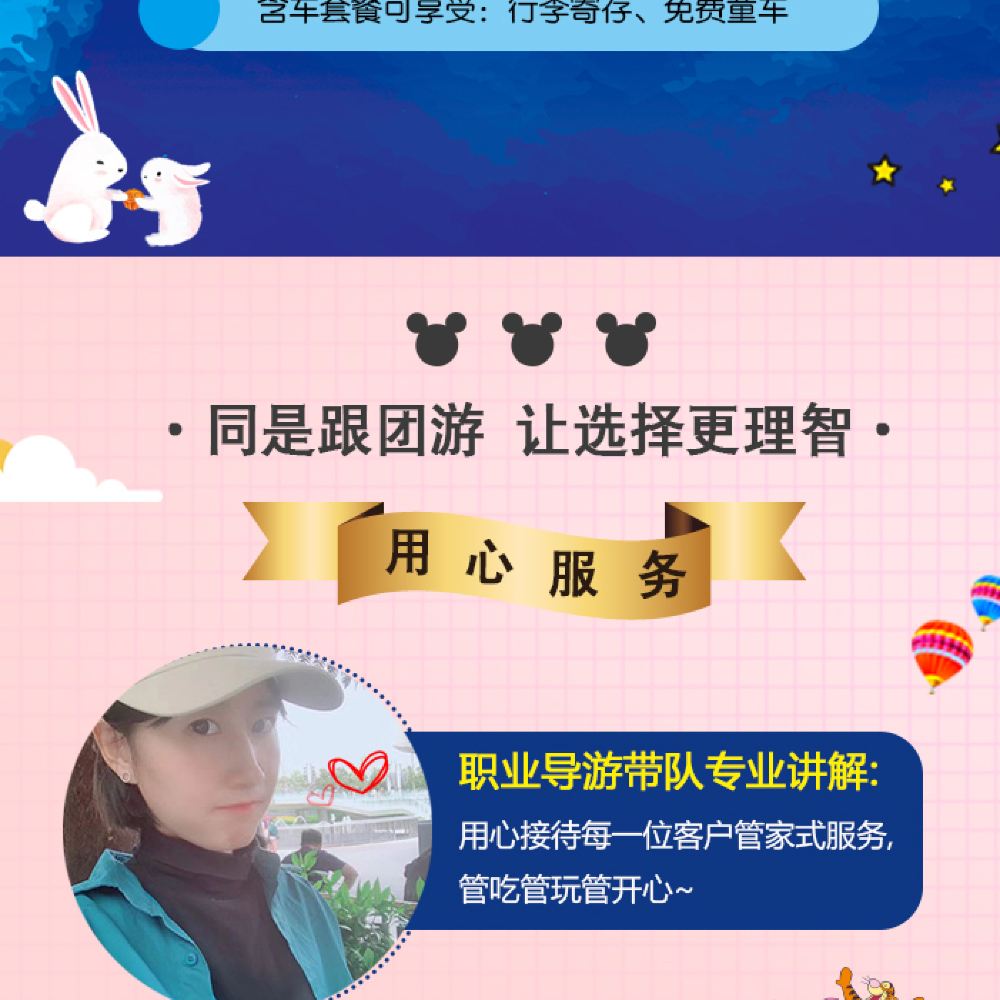 【市区接送专线】 含门票+85元餐券 专职导游陪同入园 导游指导如何领取FP快速卡 导游园内陪同游玩项目至下午3点 抢2张项目快速卡 行程可享受:往返车+行李寄存+童车