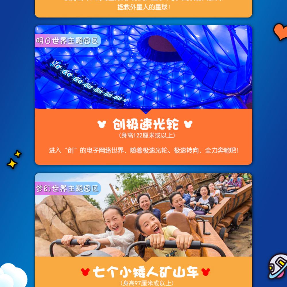 【减少排队专线】 含门票+返程大巴车(该线路不含餐券,1米以上大小同价) 15点集合 专职导游陪同入园 导游陪同游玩至18点 带领观赏花车巡游 2-3场精彩演出