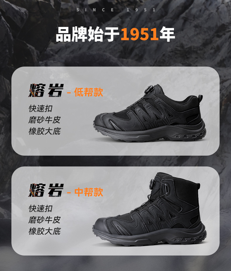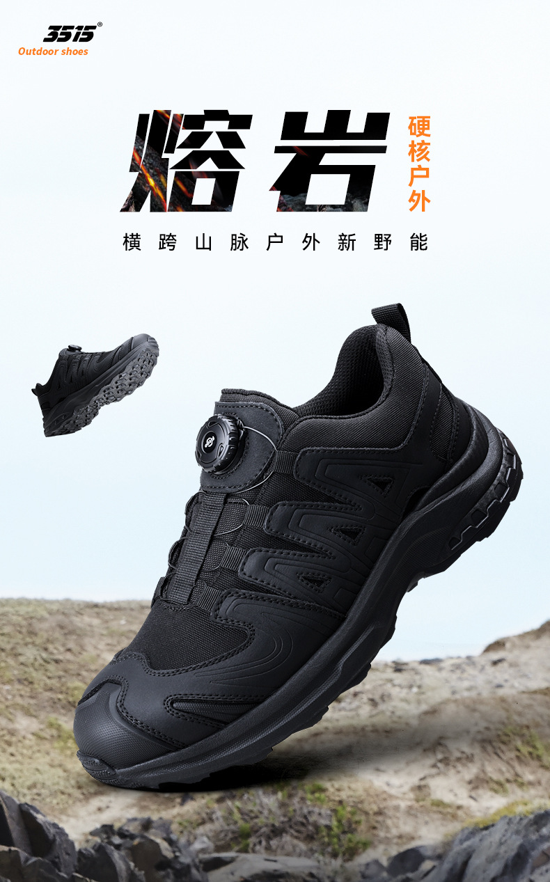 【3515强人黑色熔岩系列户外训练鞋】中帮/低帮款快速扣防刺穿磨砂牛皮橡胶大底运动鞋3515