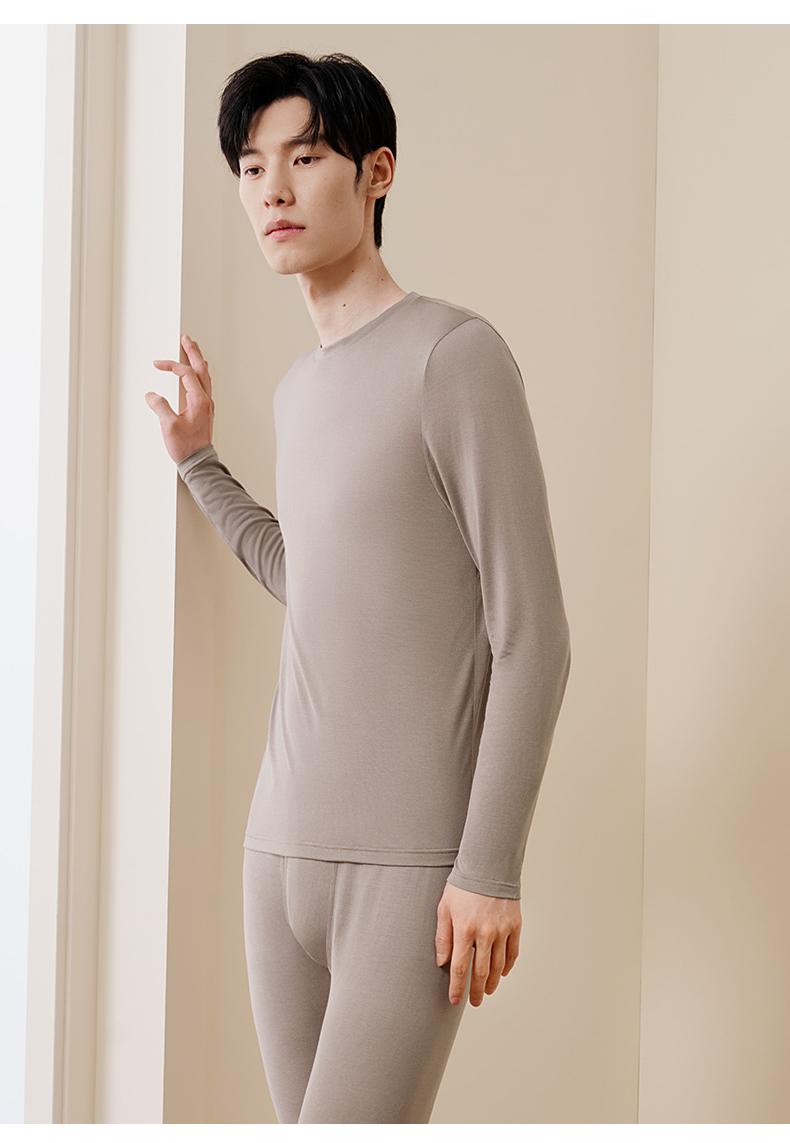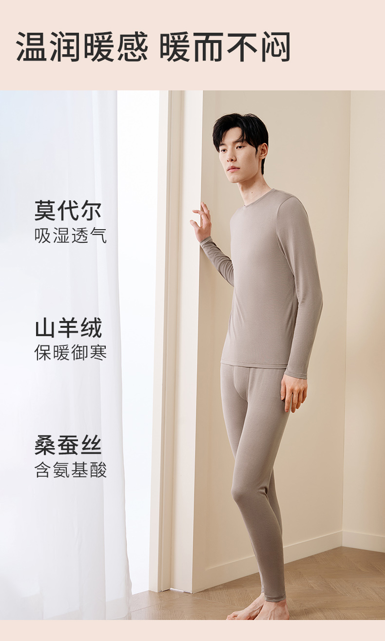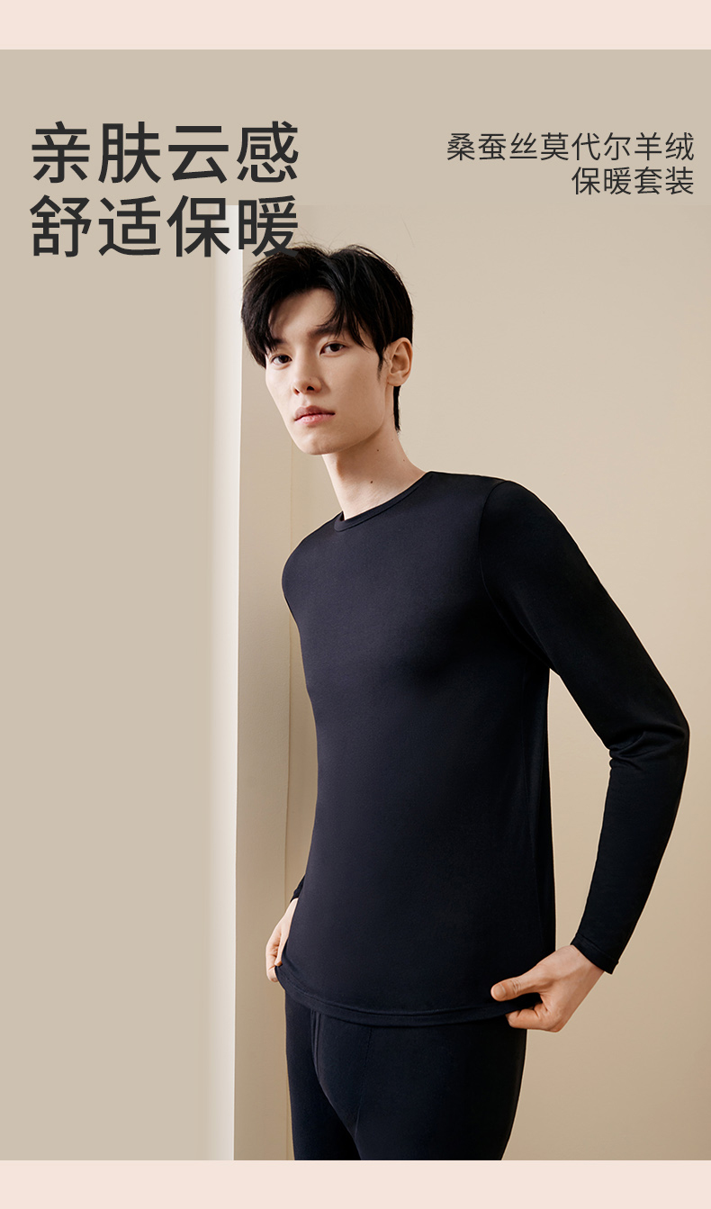 亲肤云感】金三塔桑蚕丝莫代尔羊绒打底衫男宽松秋衣秋裤保暖内衣 NZMFC720+NZMFC901