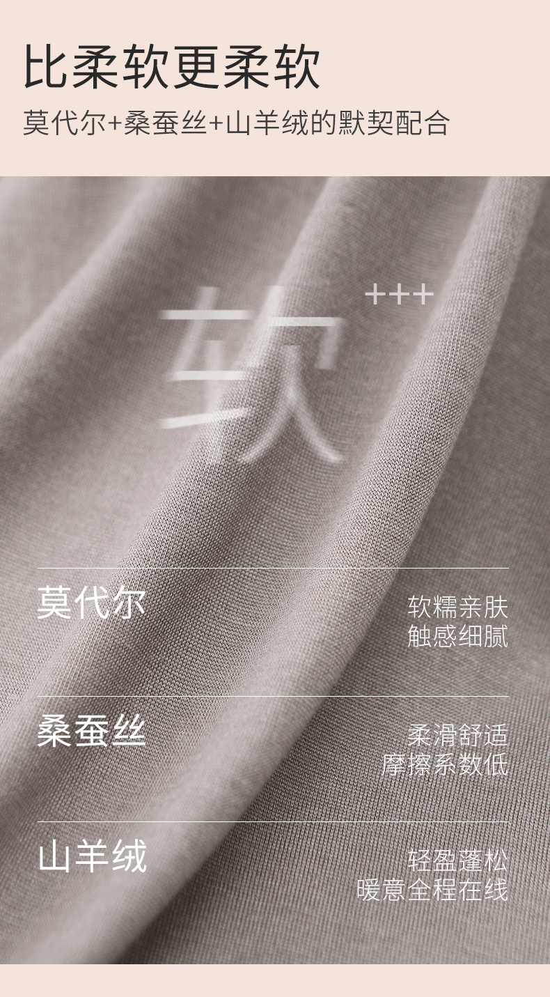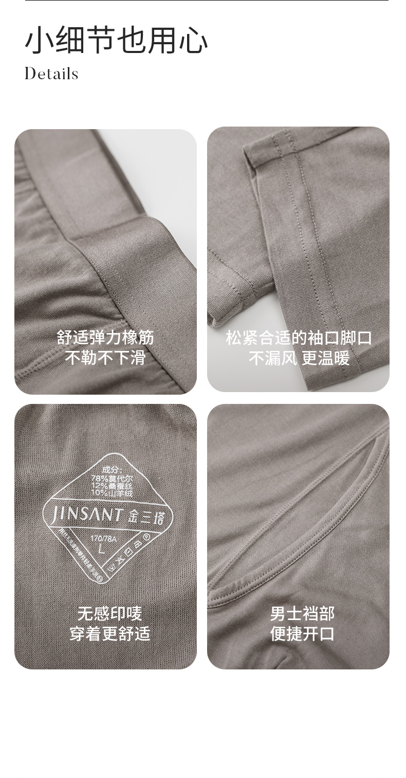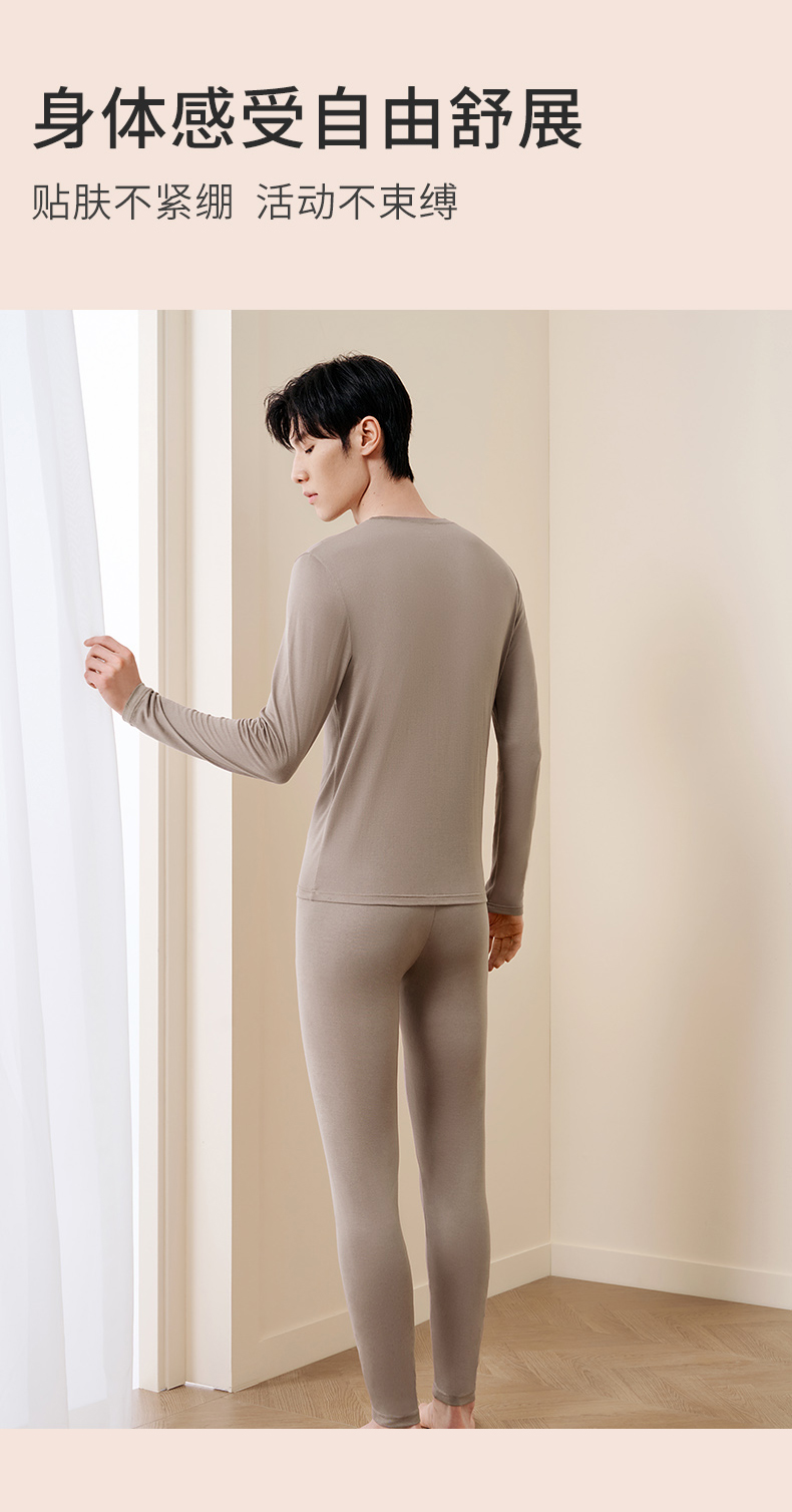 亲肤云感】金三塔桑蚕丝莫代尔羊绒打底衫男宽松秋衣秋裤保暖内衣 NZMFC720+NZMFC901