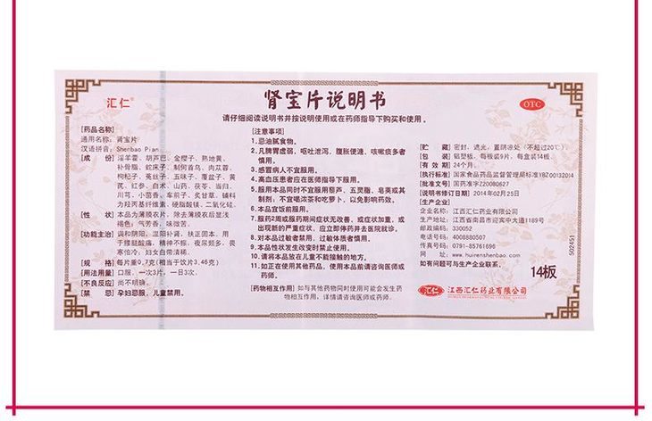 汇仁 肾宝片126片/盒 调和阴阳 温阳补肾 扶正固本 男女性补肾中成药品 【遗精早泄】
