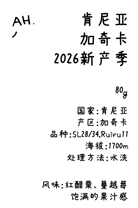 这支水洗处理的肯尼亚拥有极高的干净度。将 SL28、SL34 与 Ruiru11 混合的经典豆种优势发挥得淋漓尽致。品饮时,红醋栗与蔓越莓的明亮酸调在口腔中生动交织,带来如同鲜榨果汁般饱满充沛的触感,酸甜明媚,清透生津。