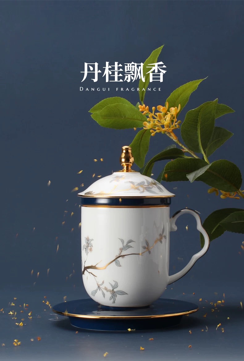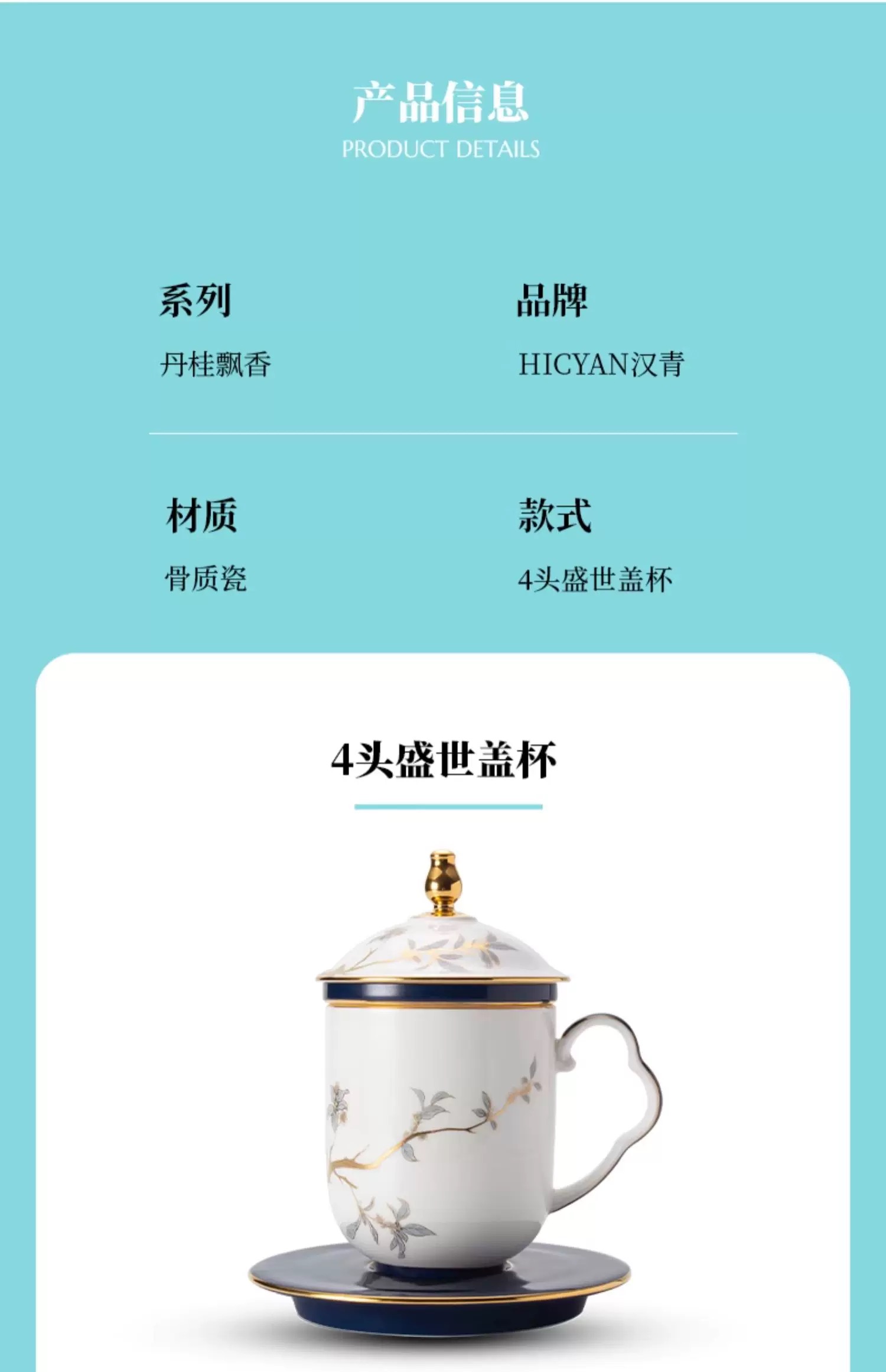 【6F】多样屋HICYAN国瓷「丹桂飘香」4头盛世盖杯礼盒套装 中式 会议杯 带茶漏