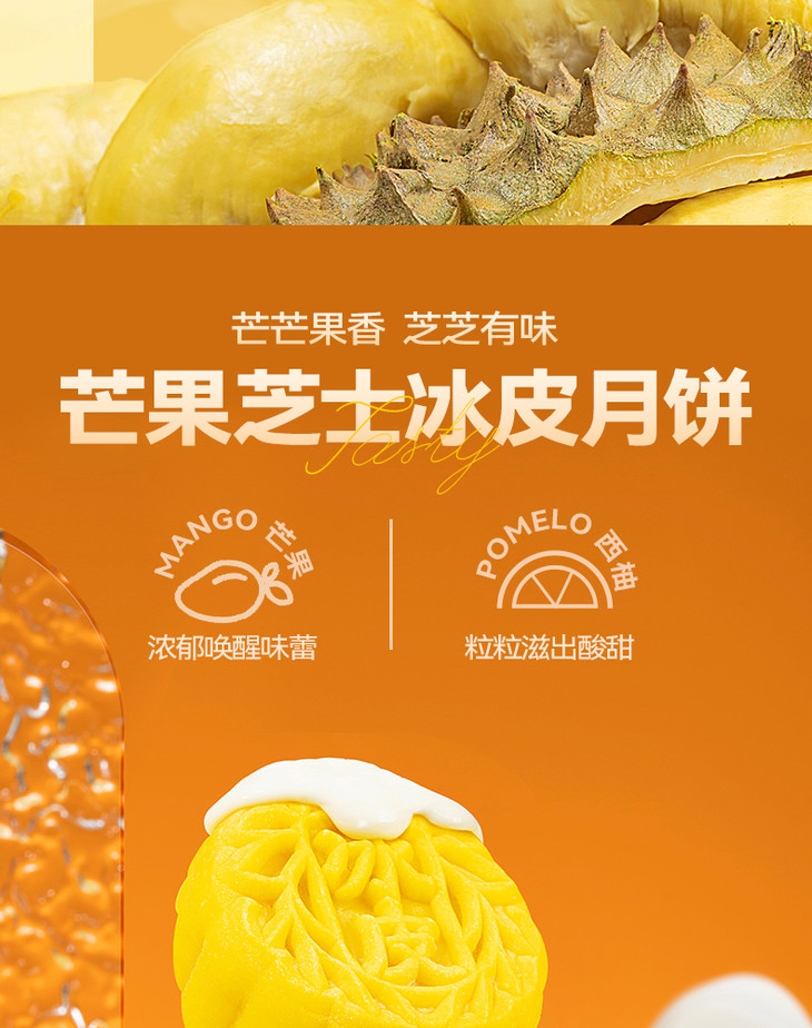 顺丰包邮「1年1次」榴芒一刻 金枕榴莲冰皮月饼600克(100克*6)