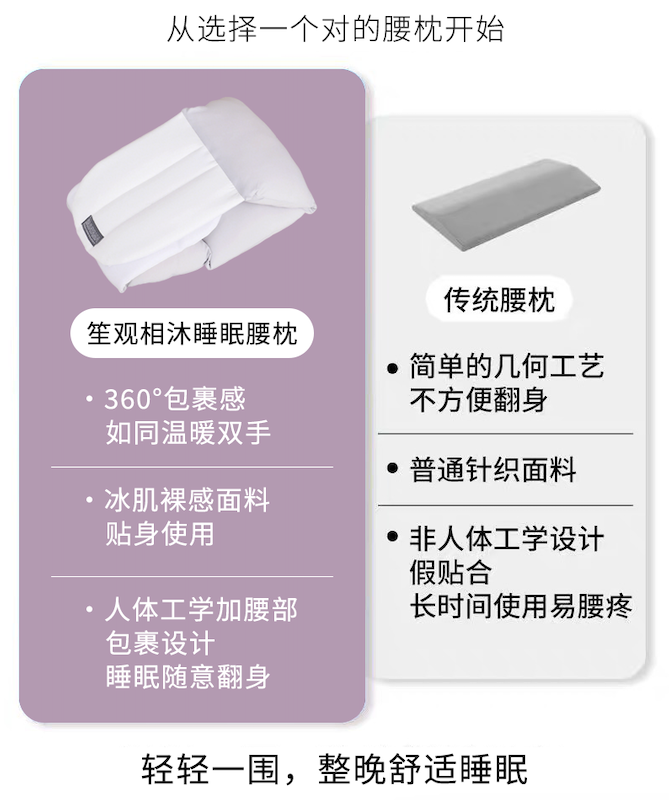 笙观相沐睡眠腰枕 360°贴合腰椎 舒缓疲劳 舒适透气 蓬松裸感