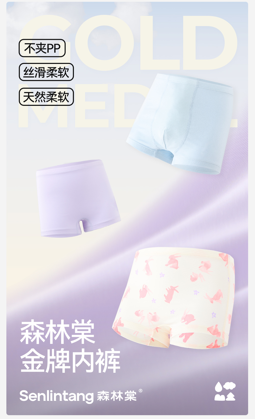 【儿童内裤】森林棠新款男童女童吸湿透气5A抑菌莫代尔内裤三条装43762021